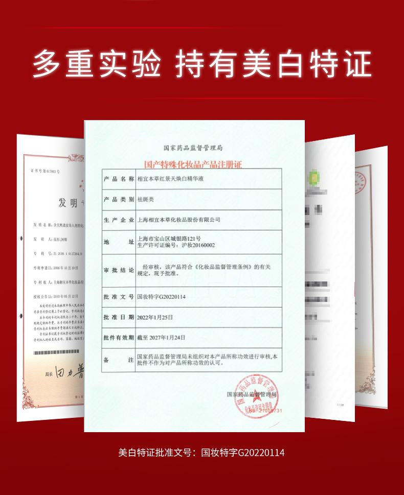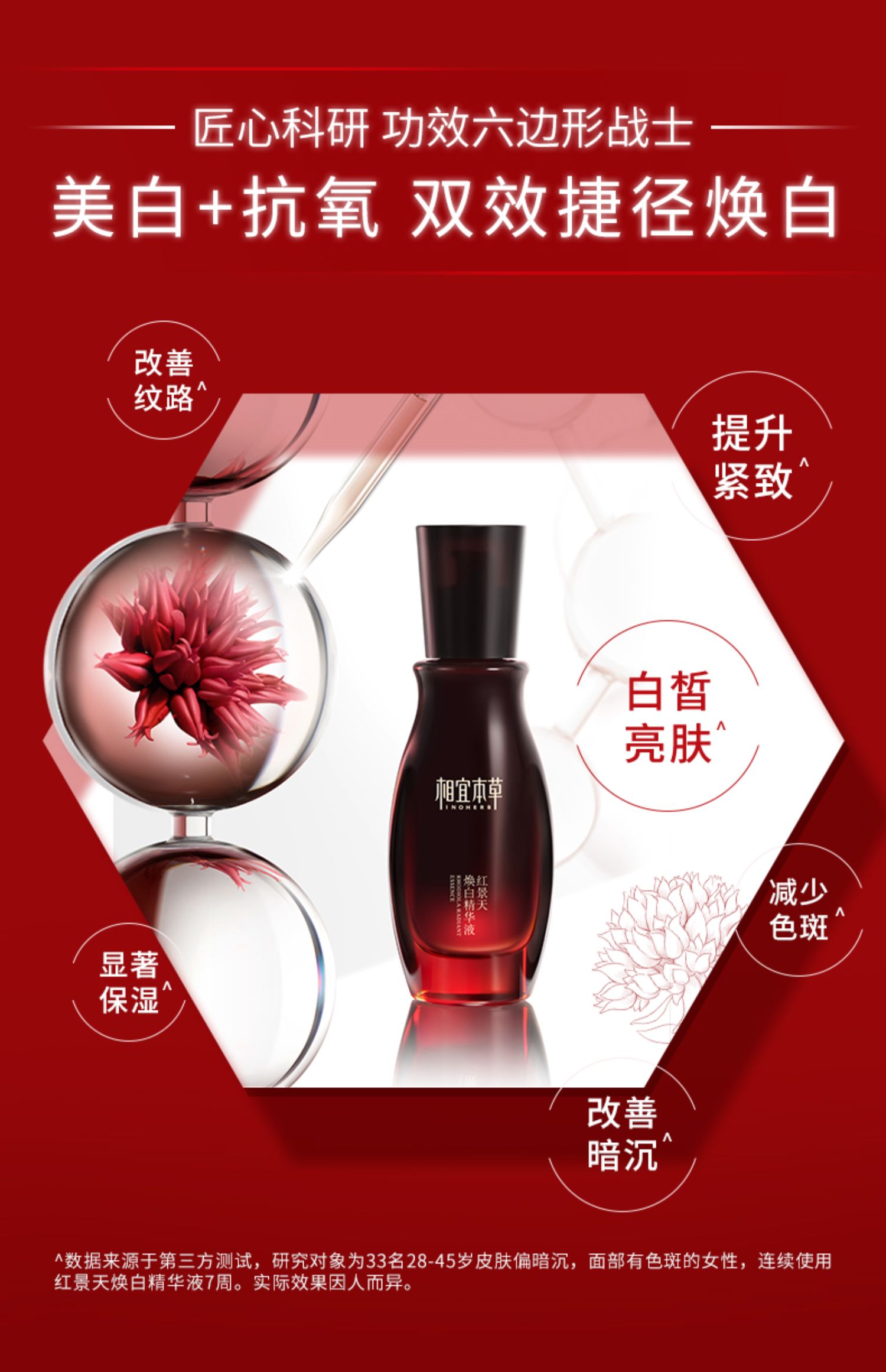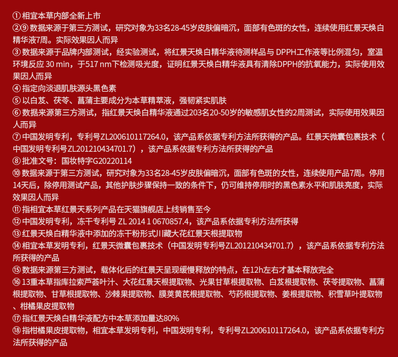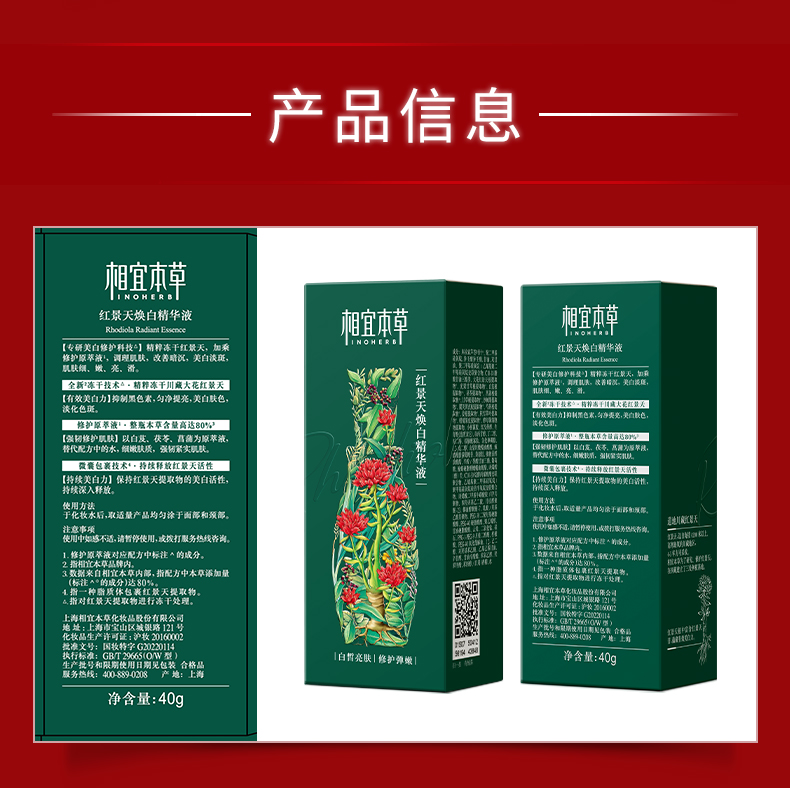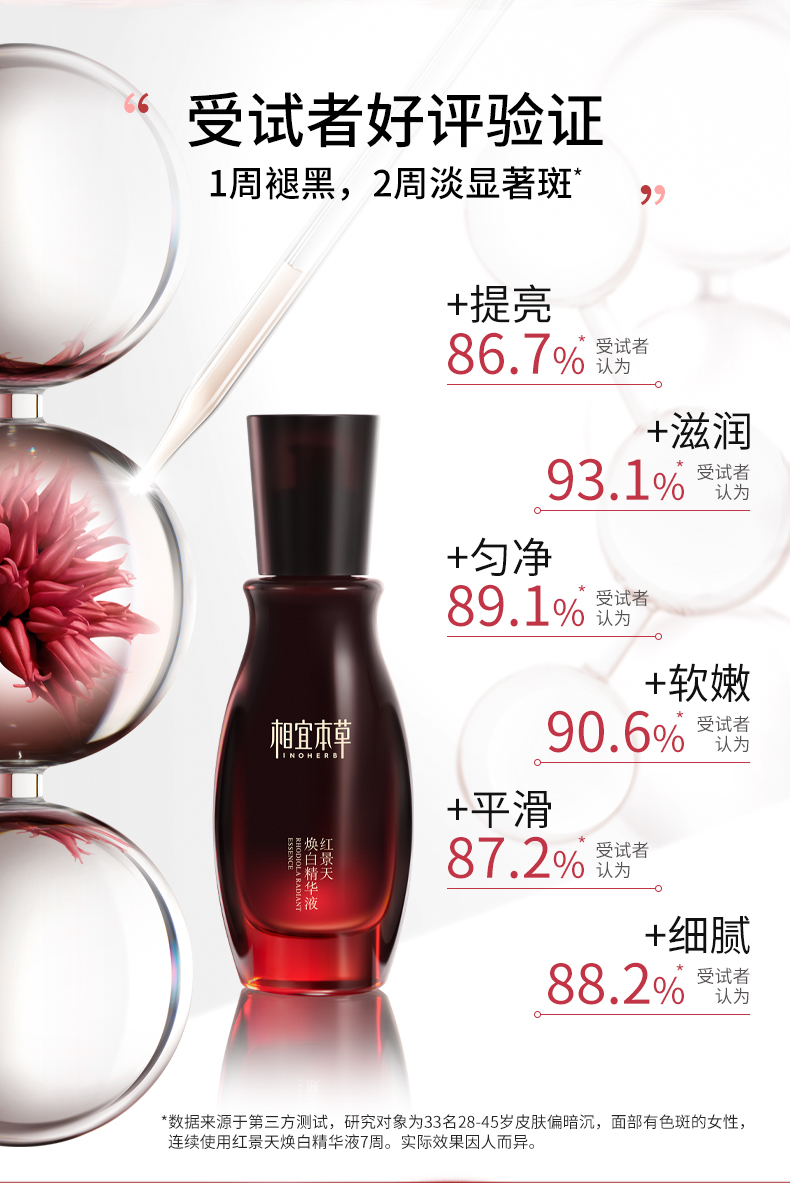 相宜本草红景天抗氧美白精华液淡斑痘印淡纹保湿提亮40g