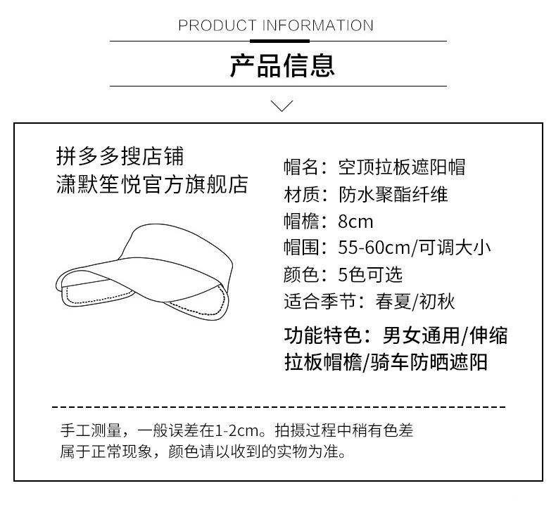 【男女通用 可调节】户外防晒遮阳帽空顶防户外紫外线太阳帽