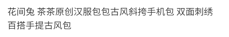 花间兔 茶茶原创汉服包包古风斜挎手机包 双面刺绣百搭手提古风包