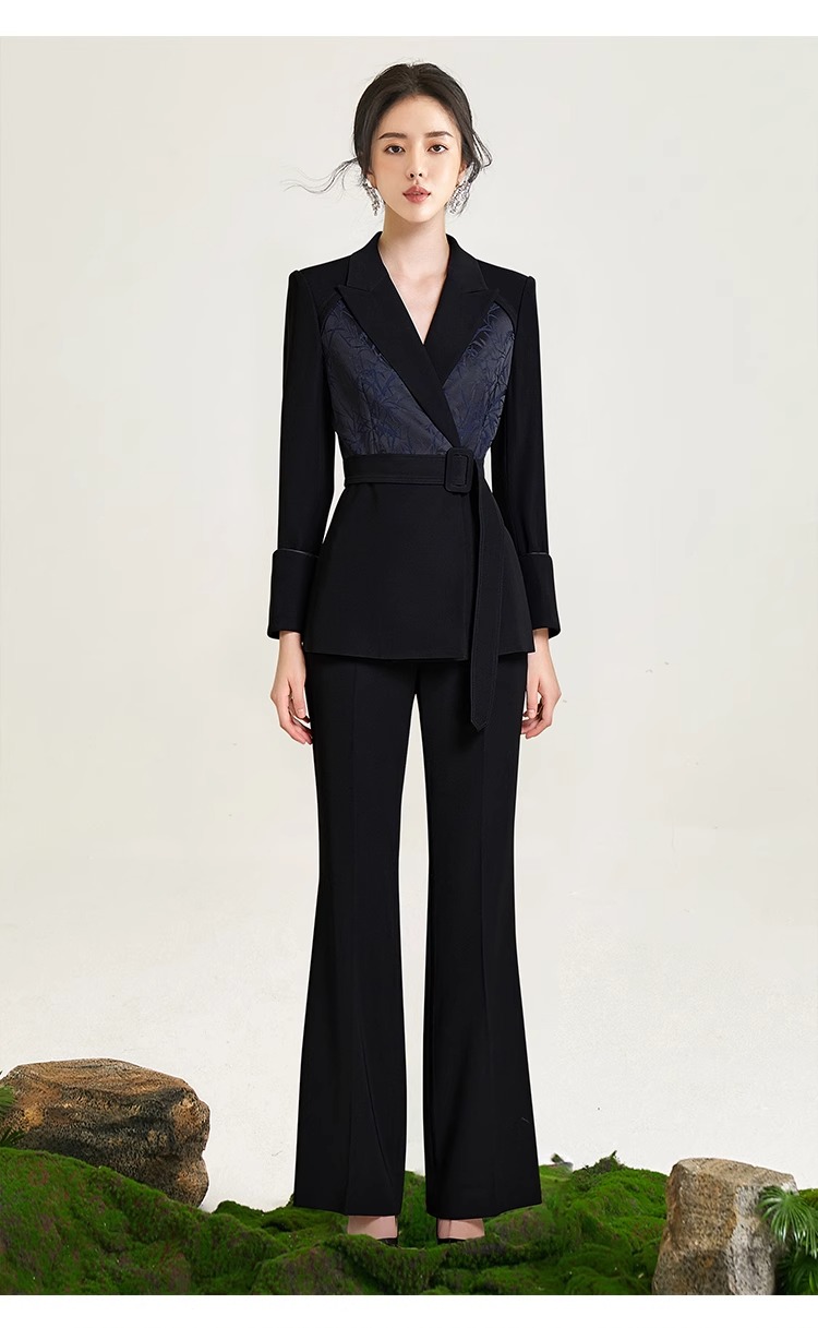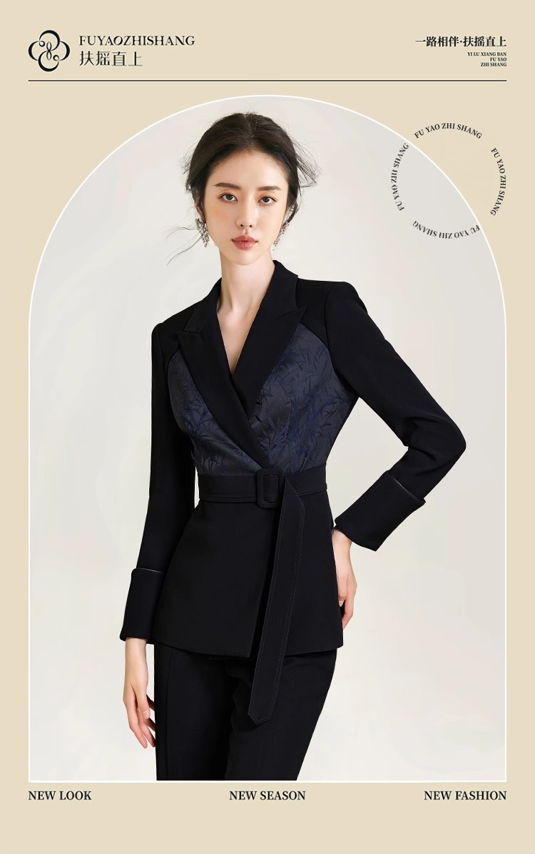 扶摇 清冷感高级提花新中式西装套装女职业装主持人演讲正装