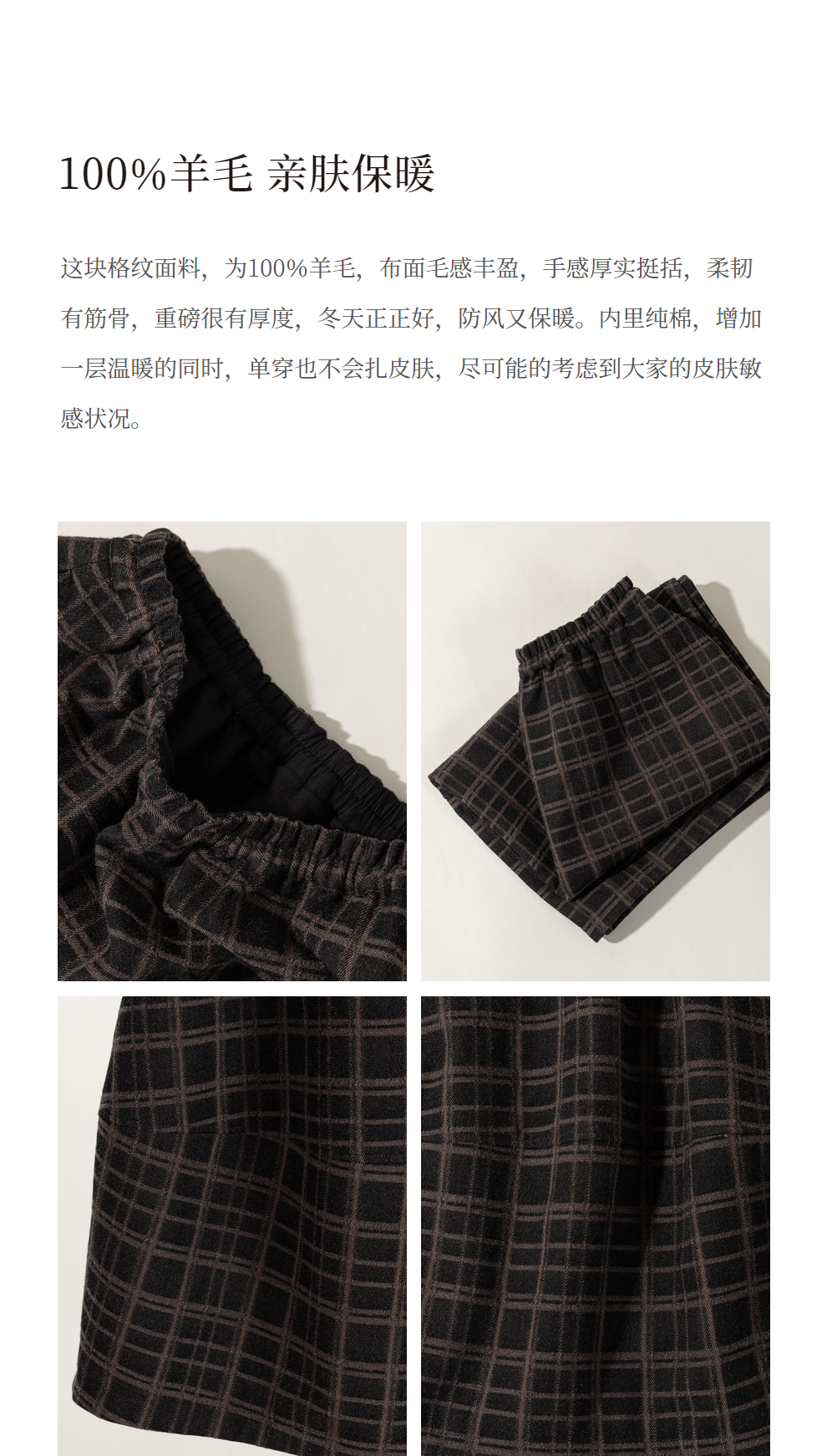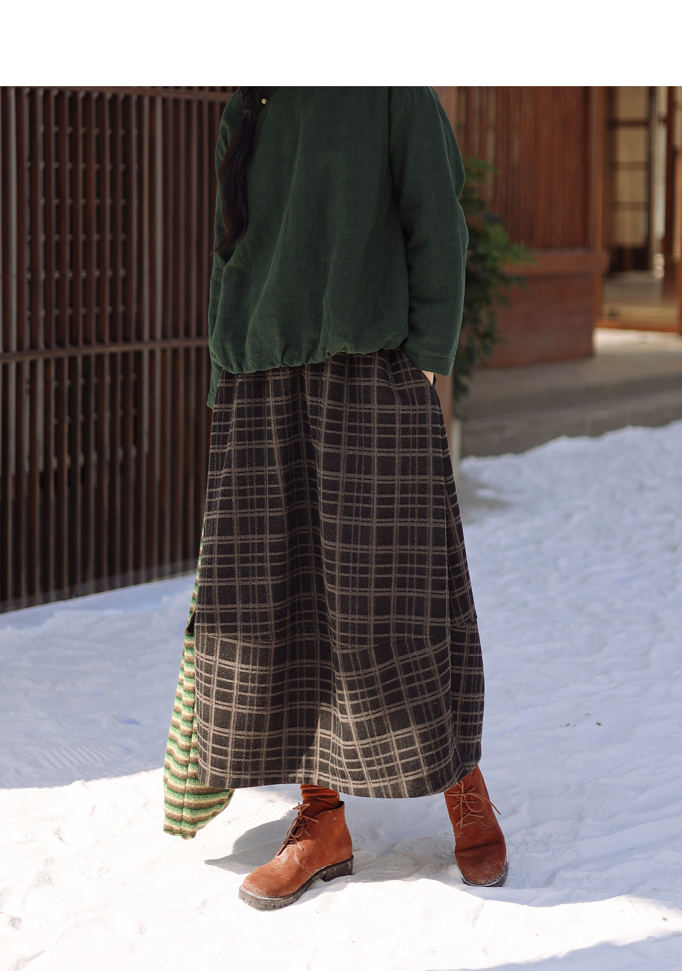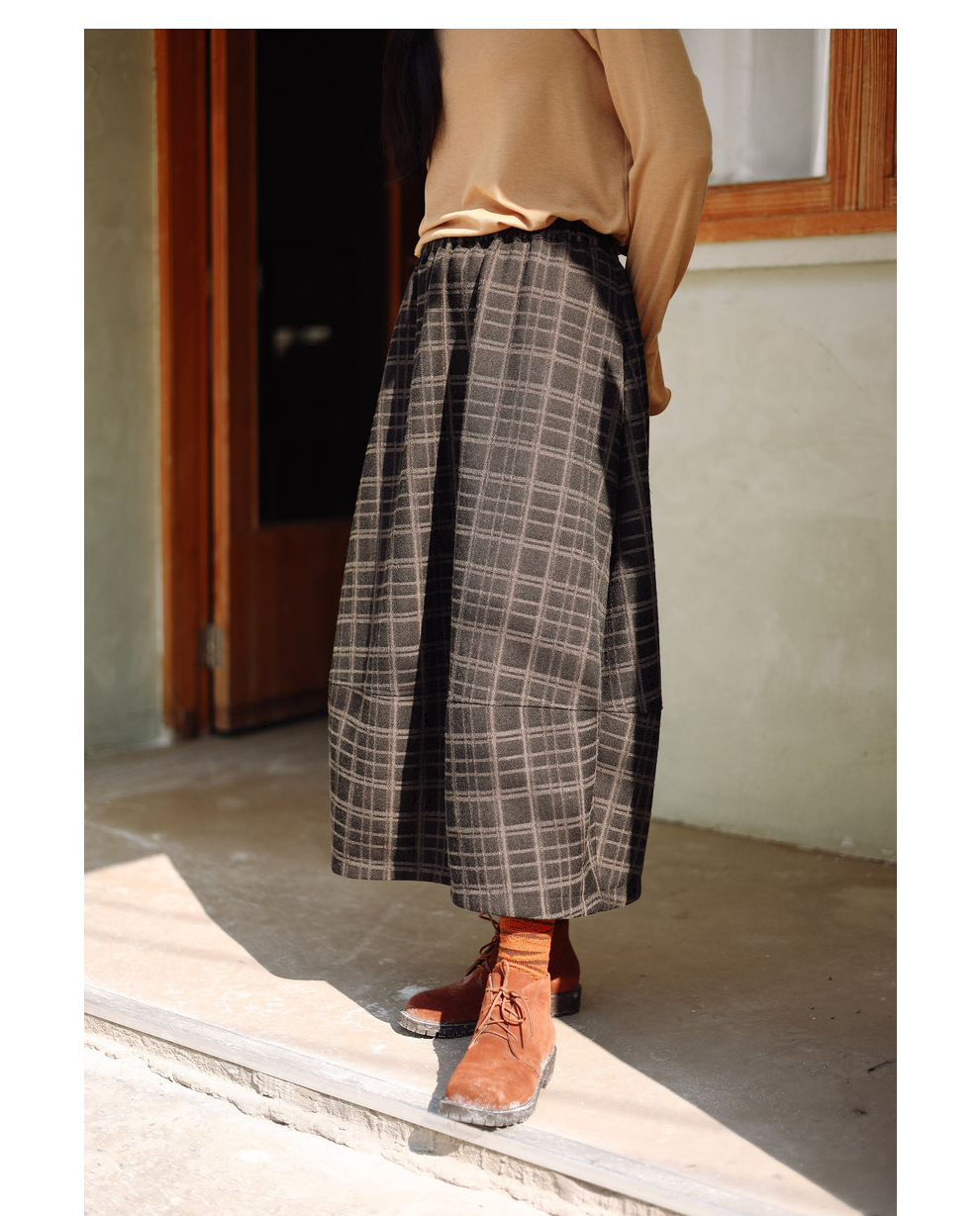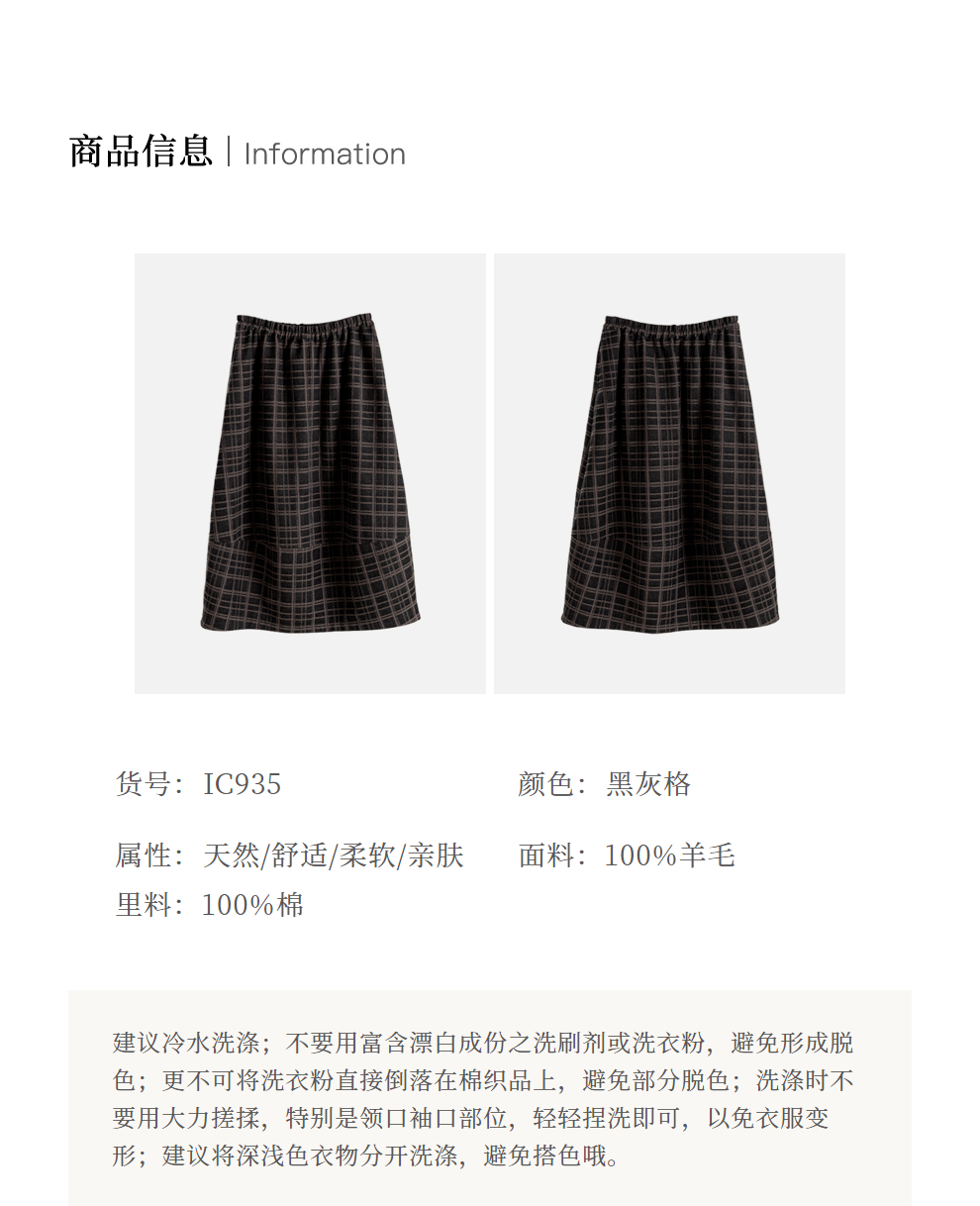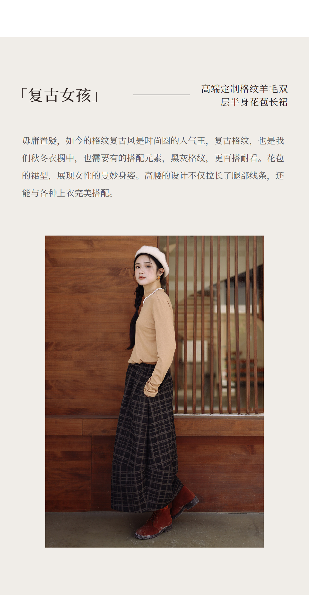绽放935朵/高端定制复古黑灰格纹全羊毛内里纯棉双层长款花苞半裙