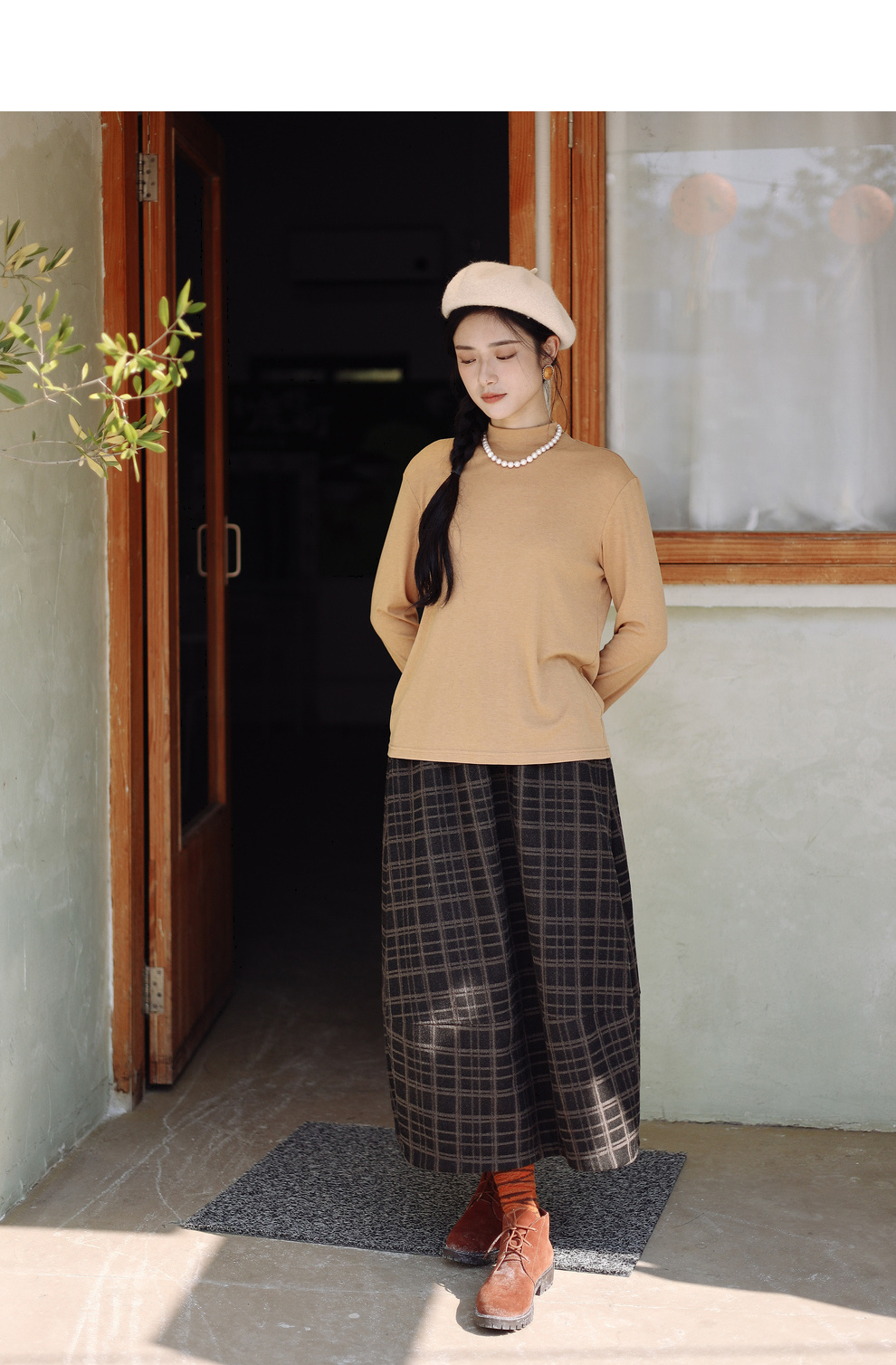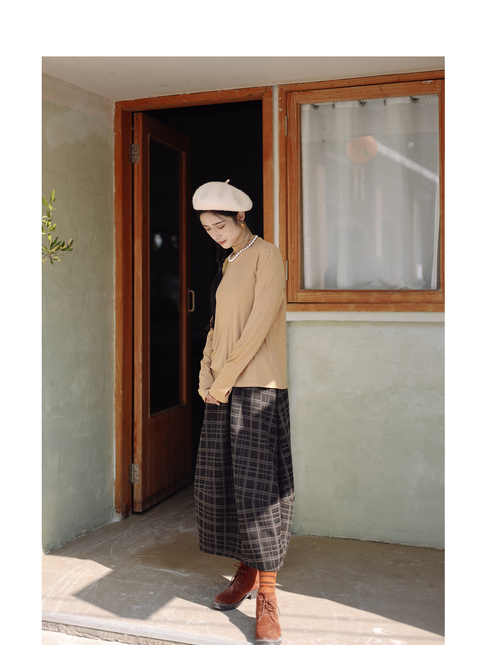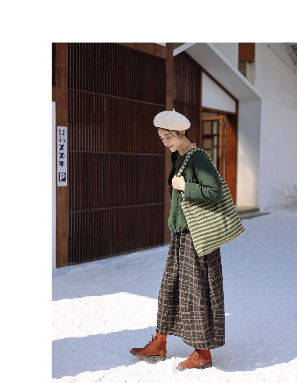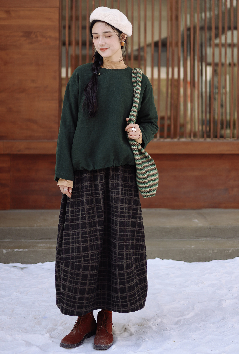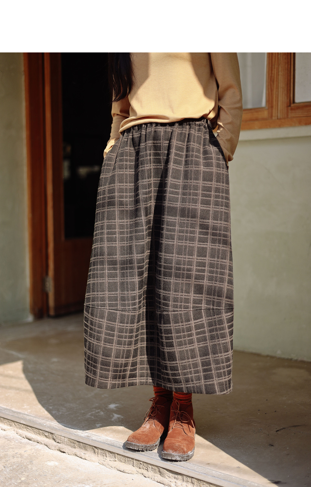 绽放935朵/高端定制复古黑灰格纹全羊毛内里纯棉双层长款花苞半裙