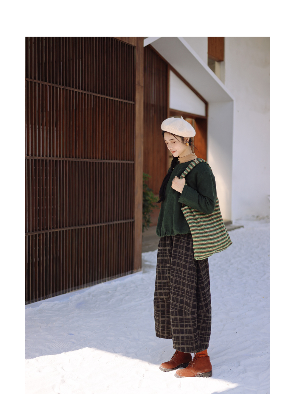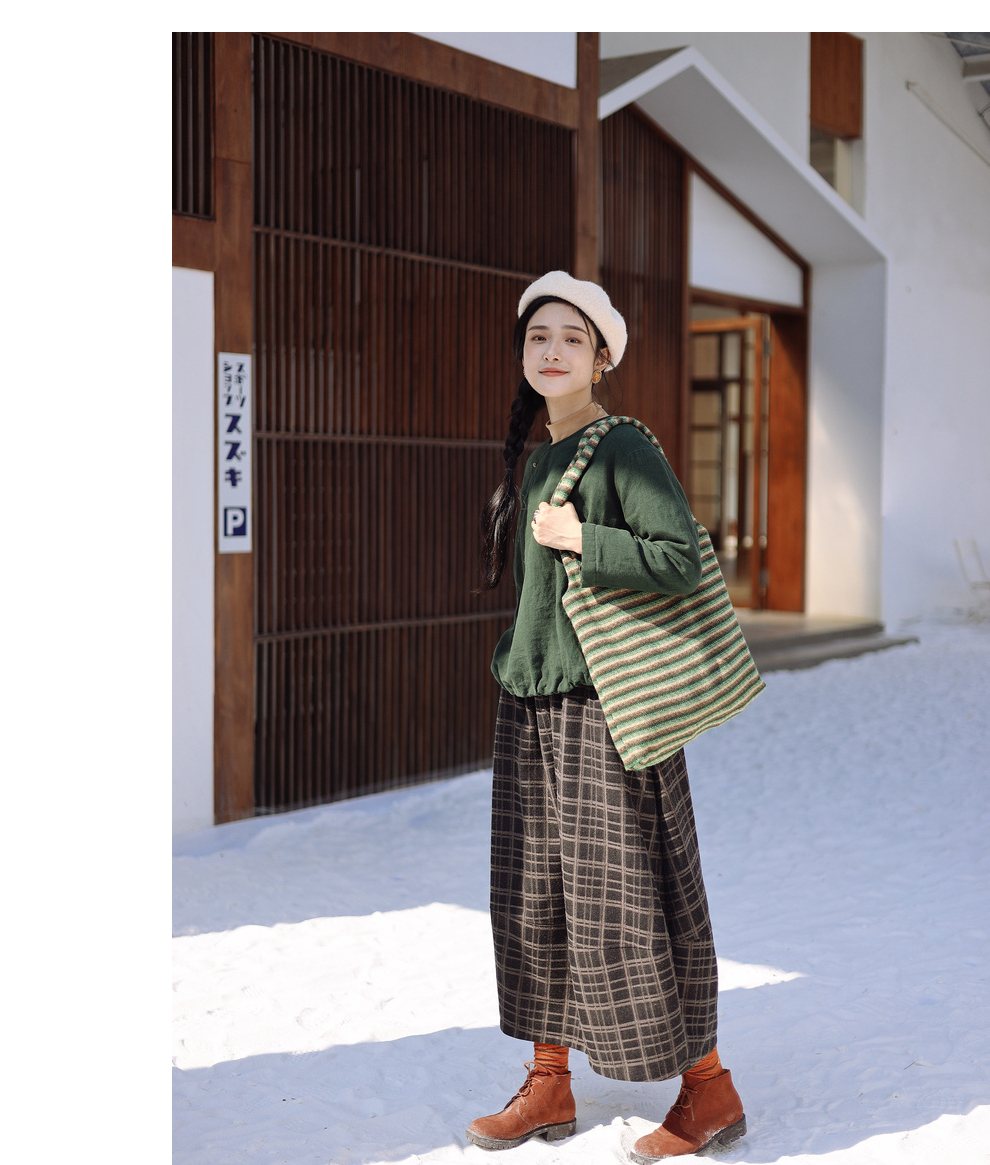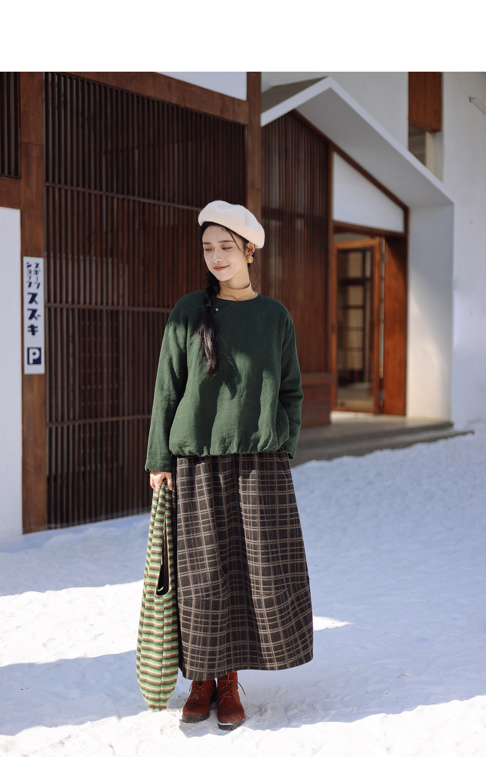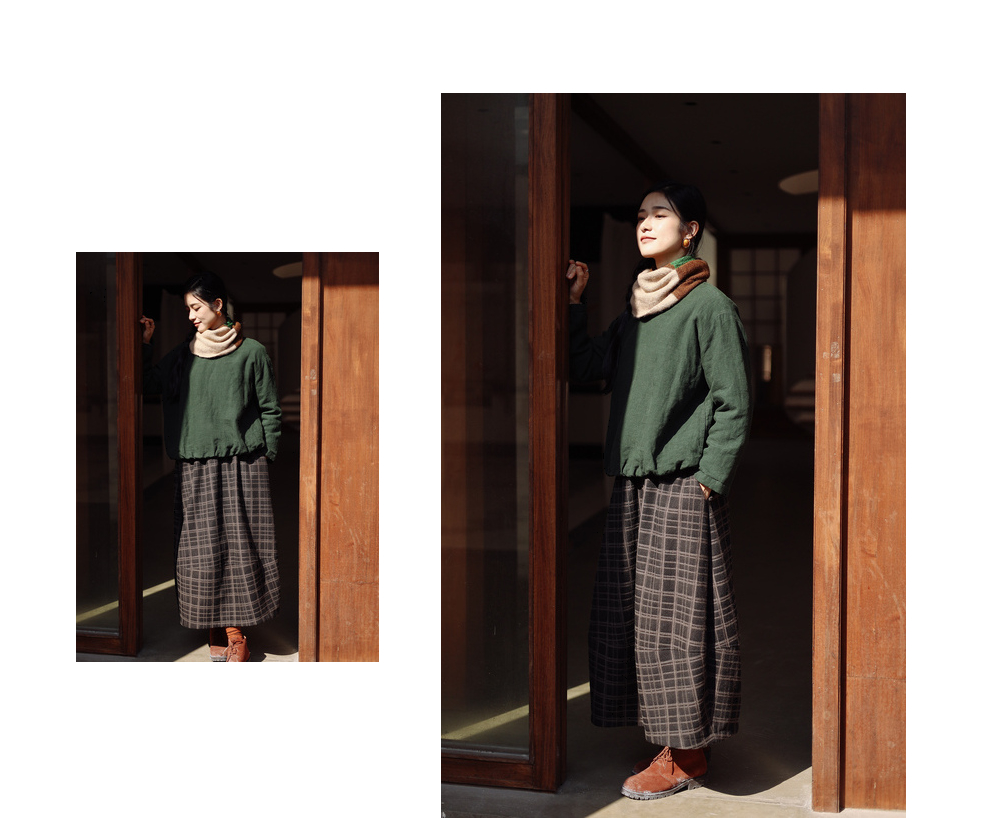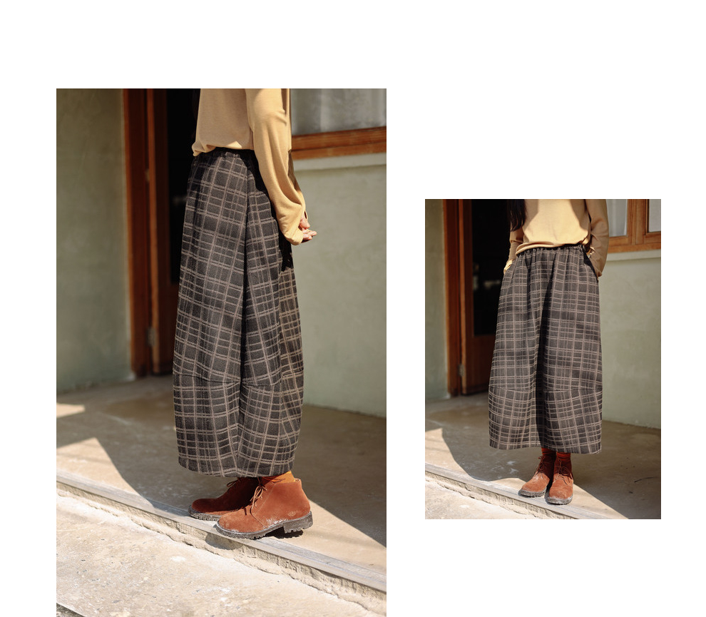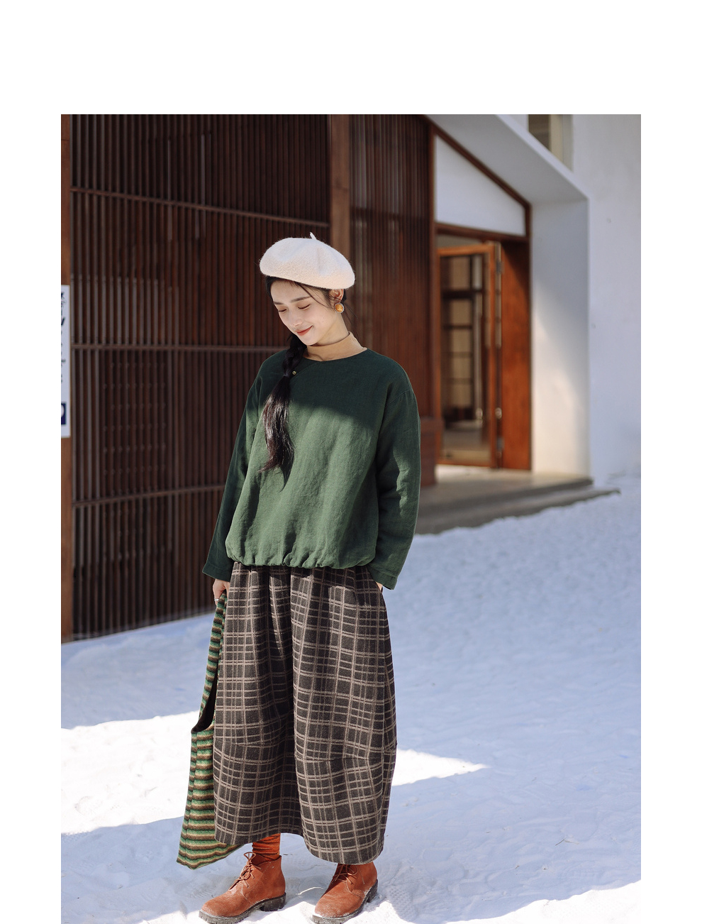 绽放935朵/高端定制复古黑灰格纹全羊毛内里纯棉双层长款花苞半裙