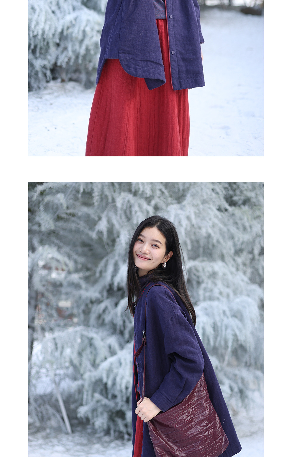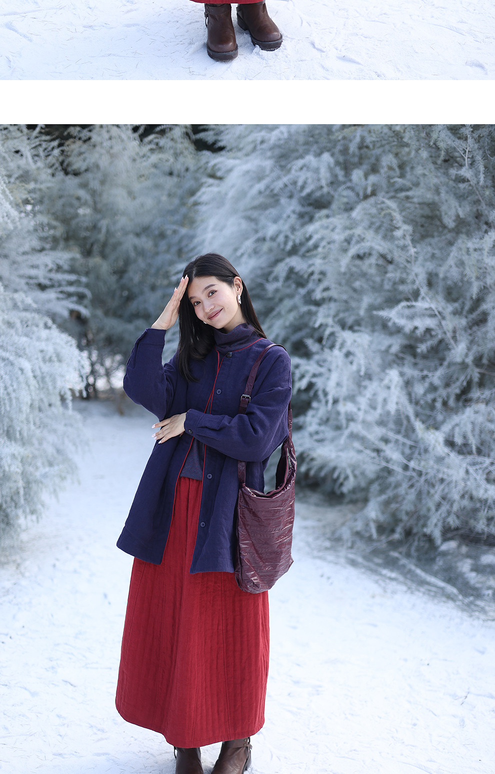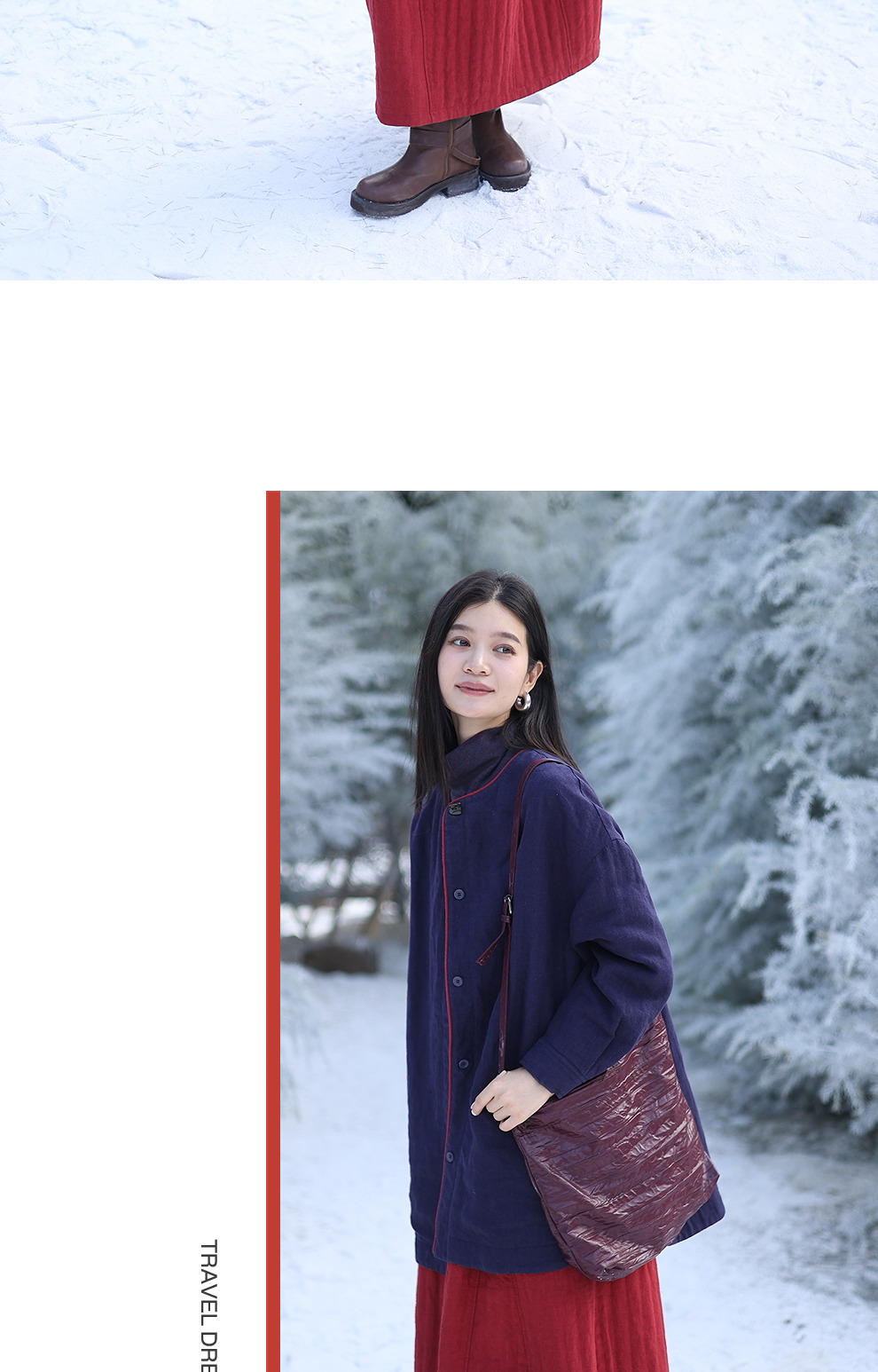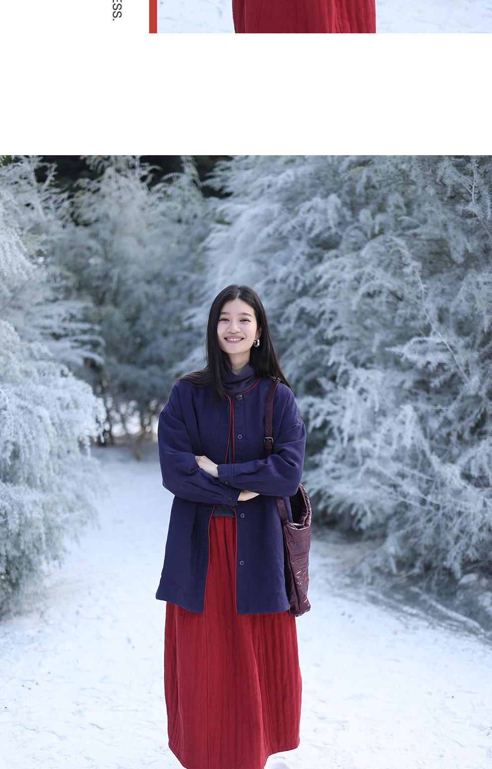 绽放727朵/加厚亚麻绗棉落肩长袖开襟中长款棉服冬新中式棉衣外套