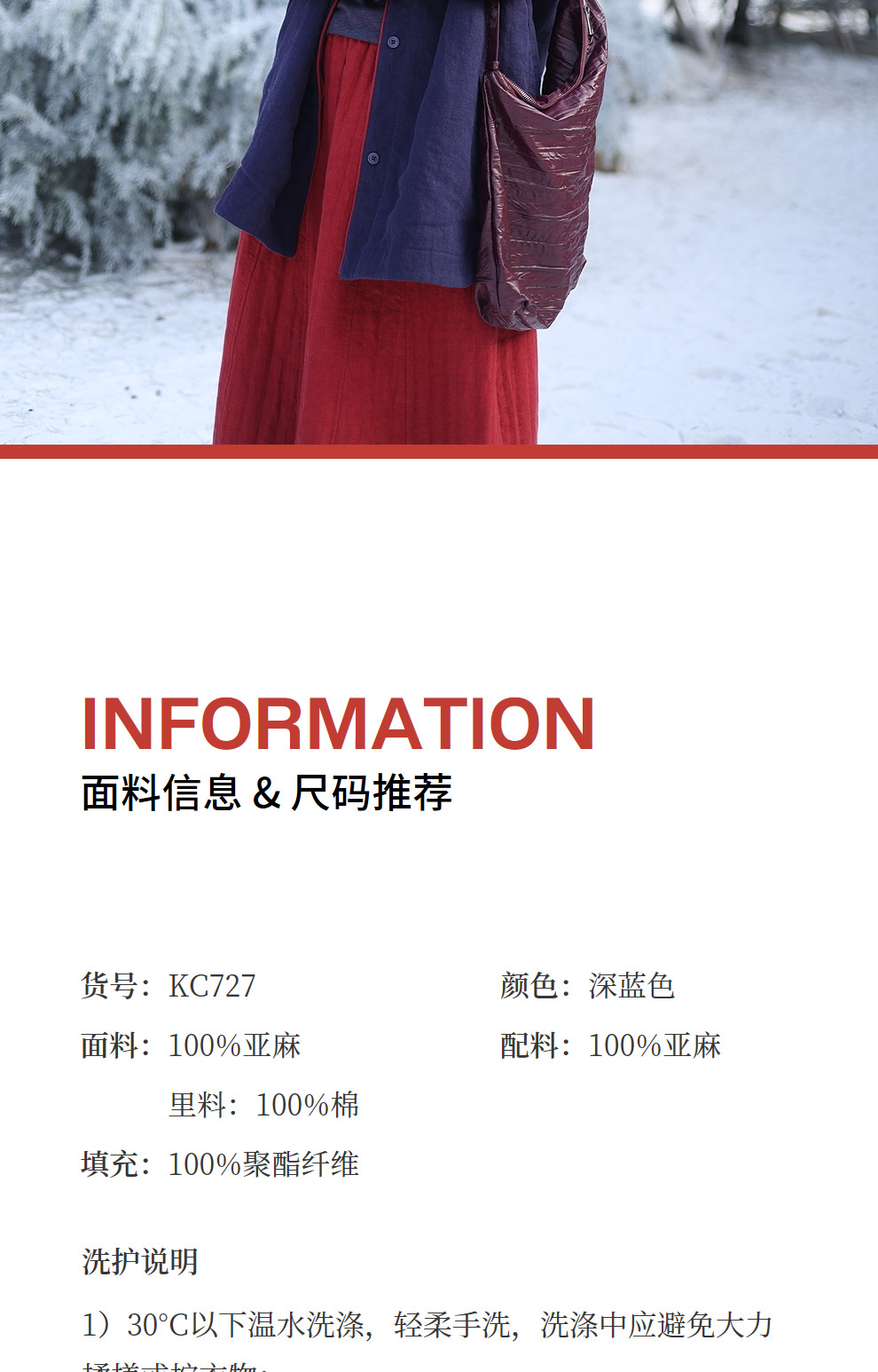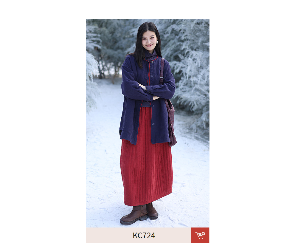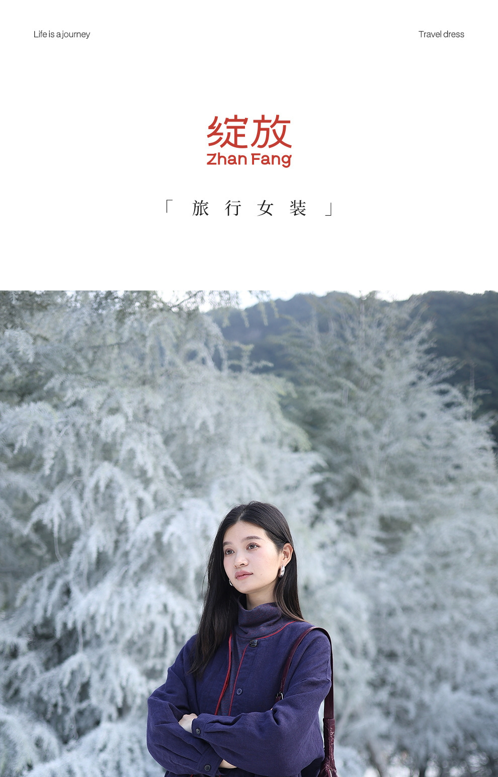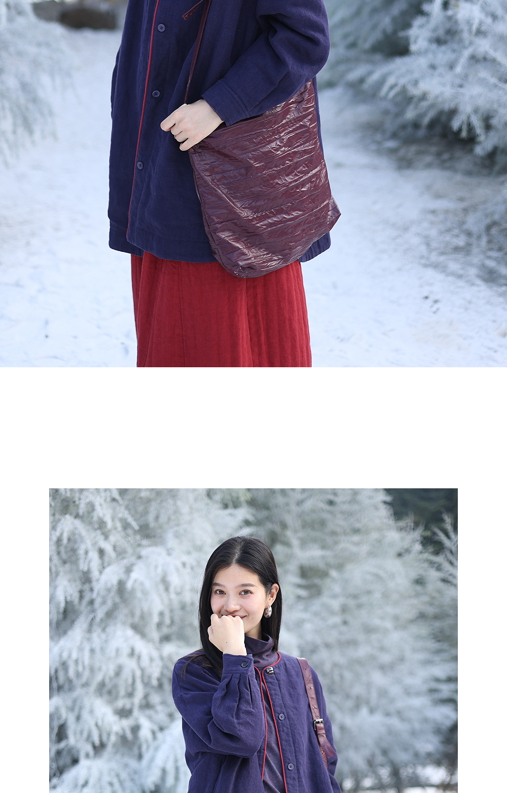 绽放727朵/加厚亚麻绗棉落肩长袖开襟中长款棉服冬新中式棉衣外套