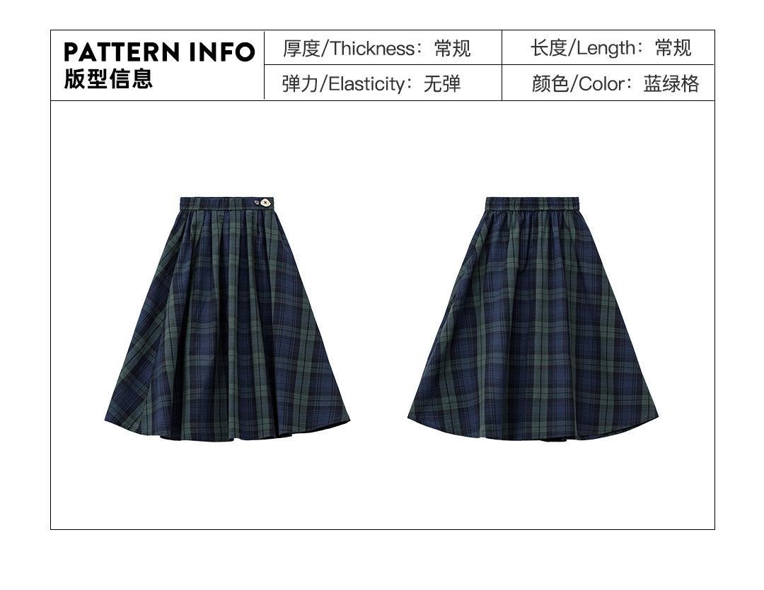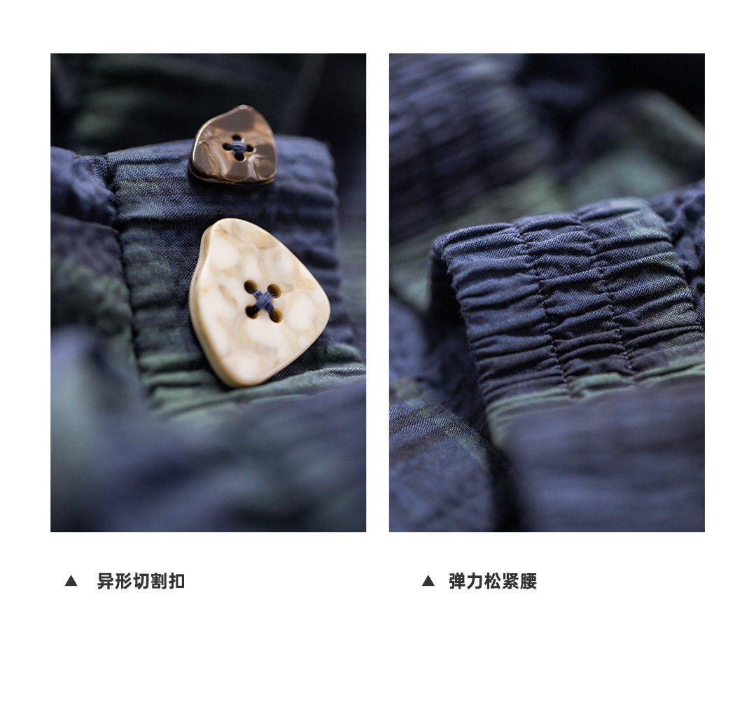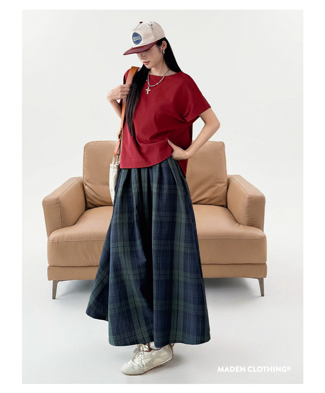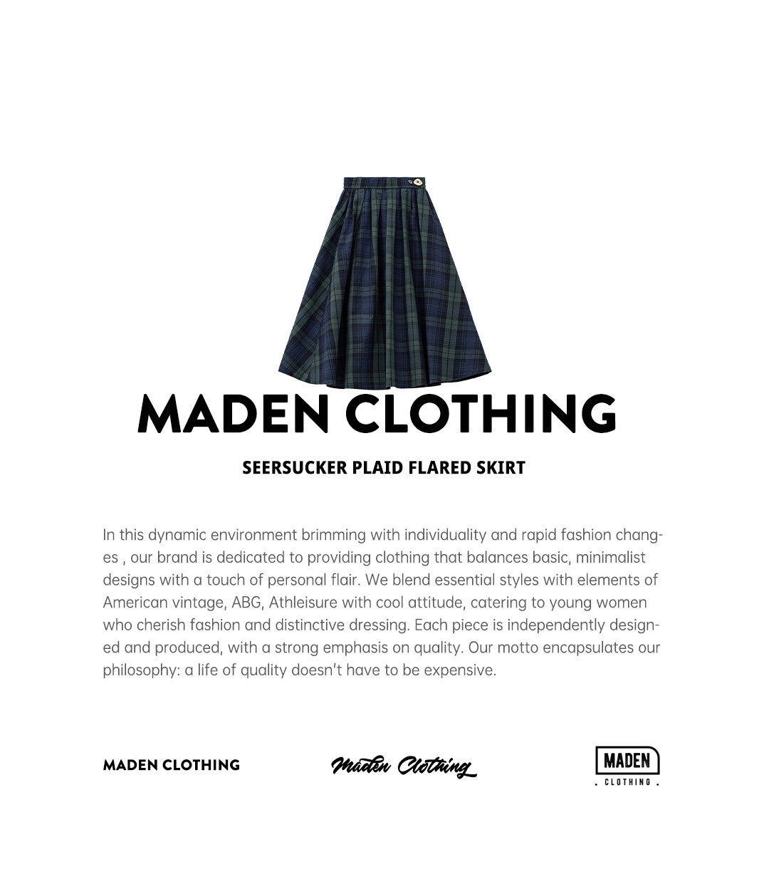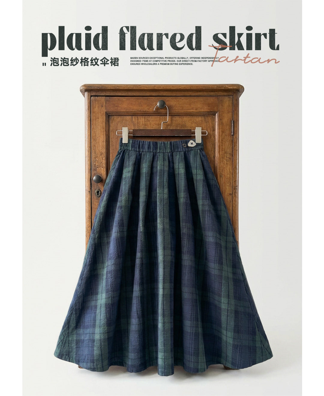 马登复古泡泡纱格纹半身长裙全纯棉松紧腰肌理感A字伞裙子女士春