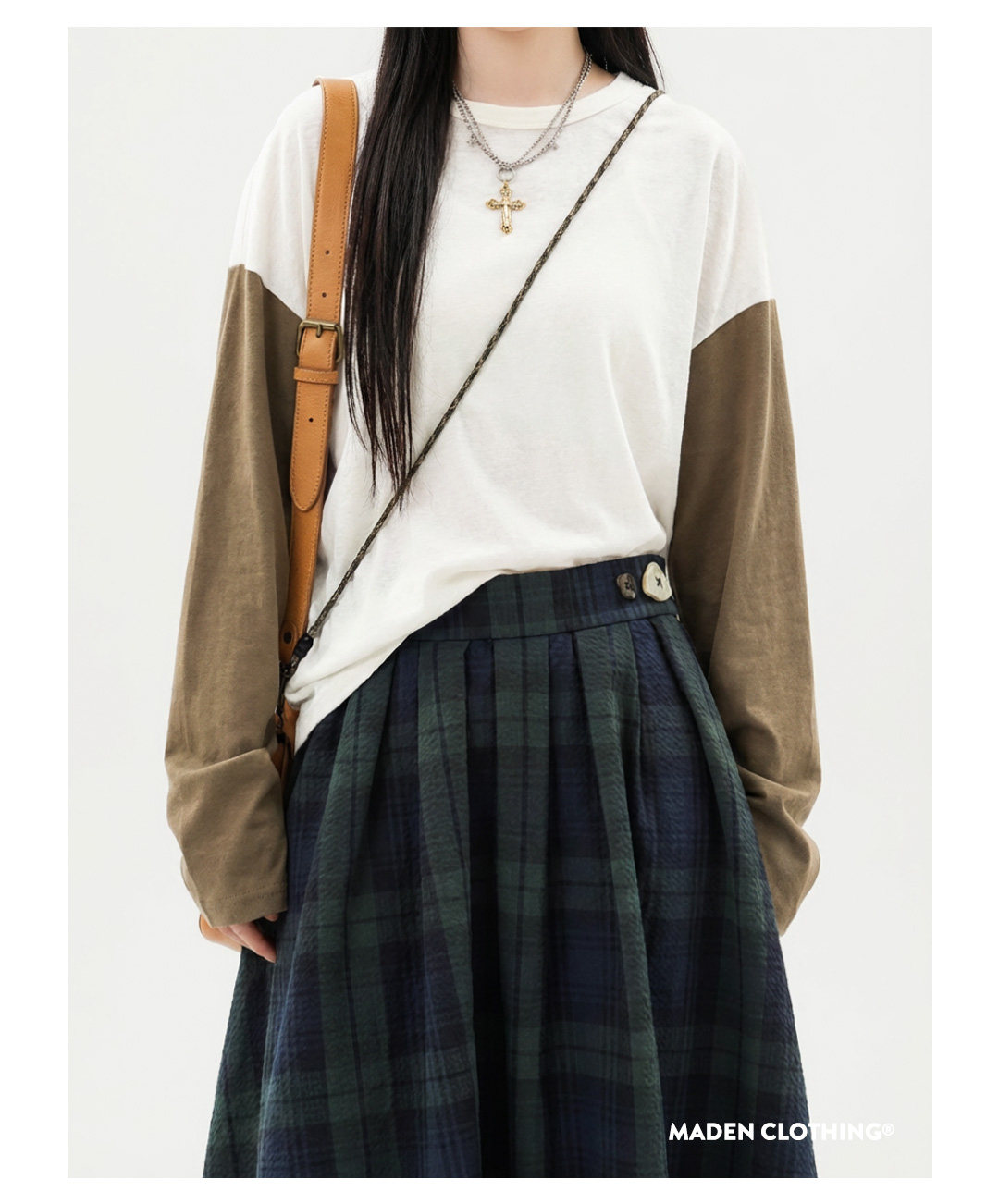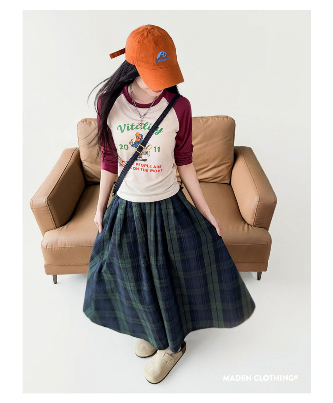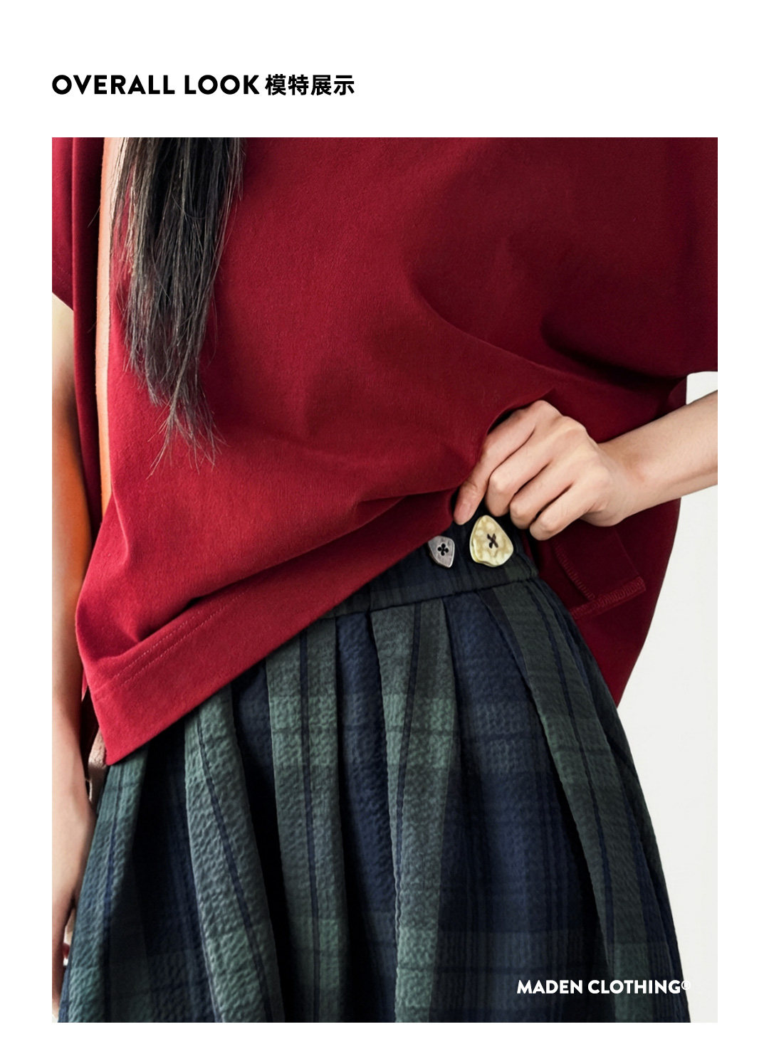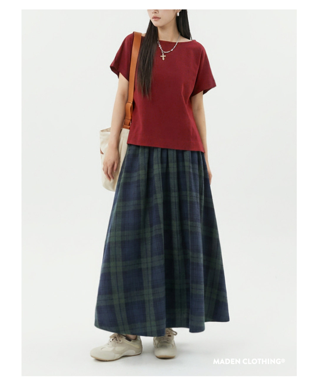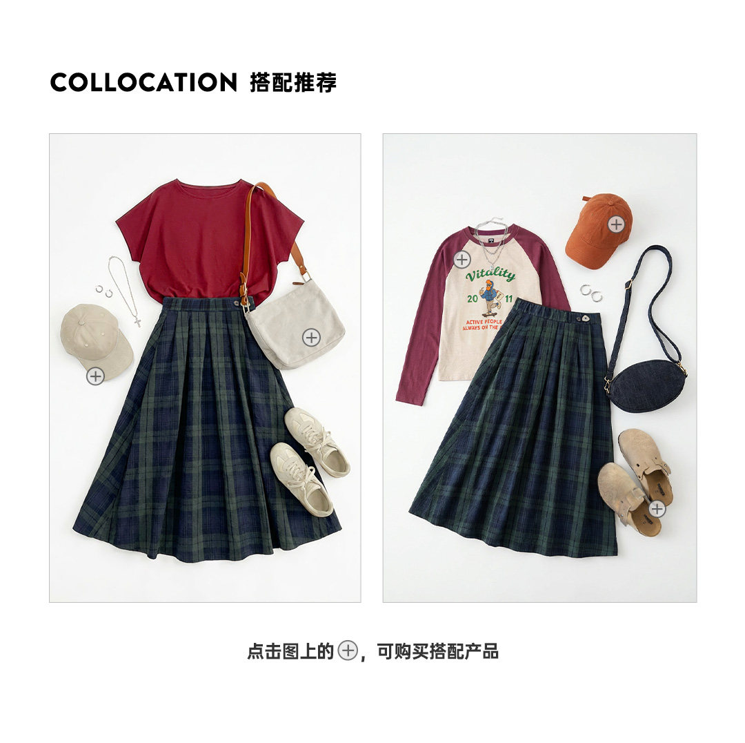 马登复古泡泡纱格纹半身长裙全纯棉松紧腰肌理感A字伞裙子女士春