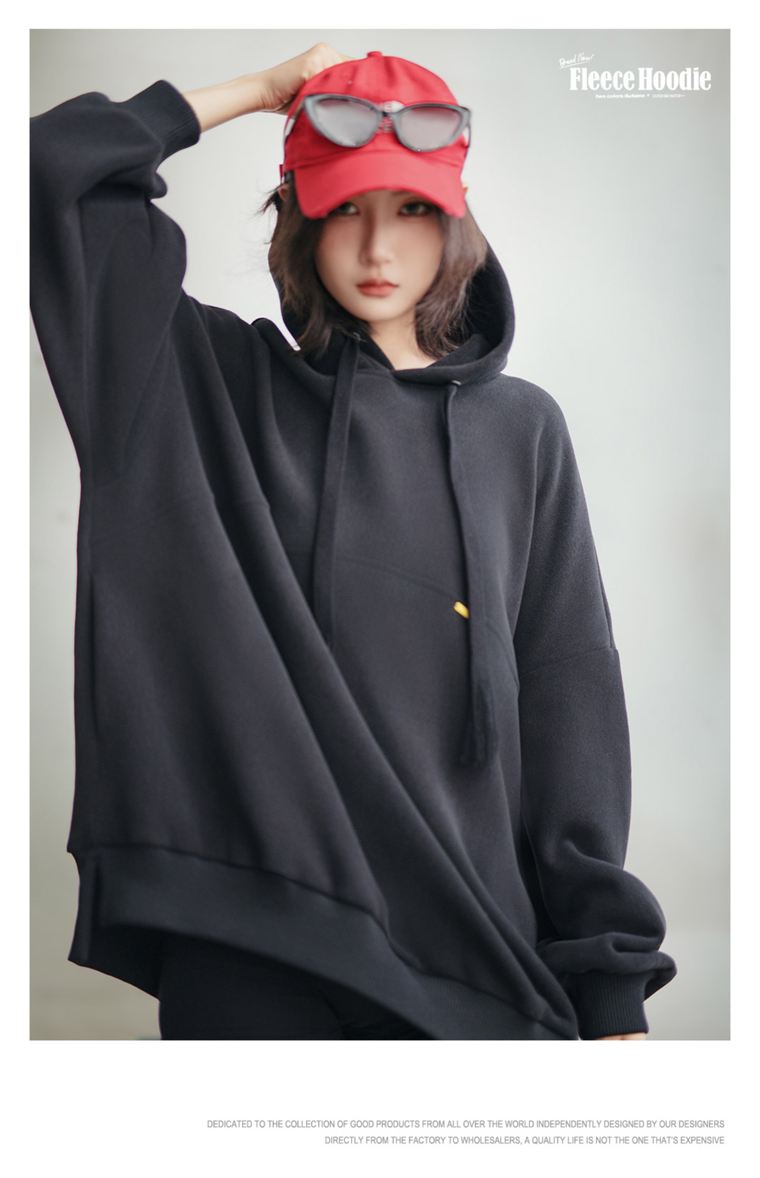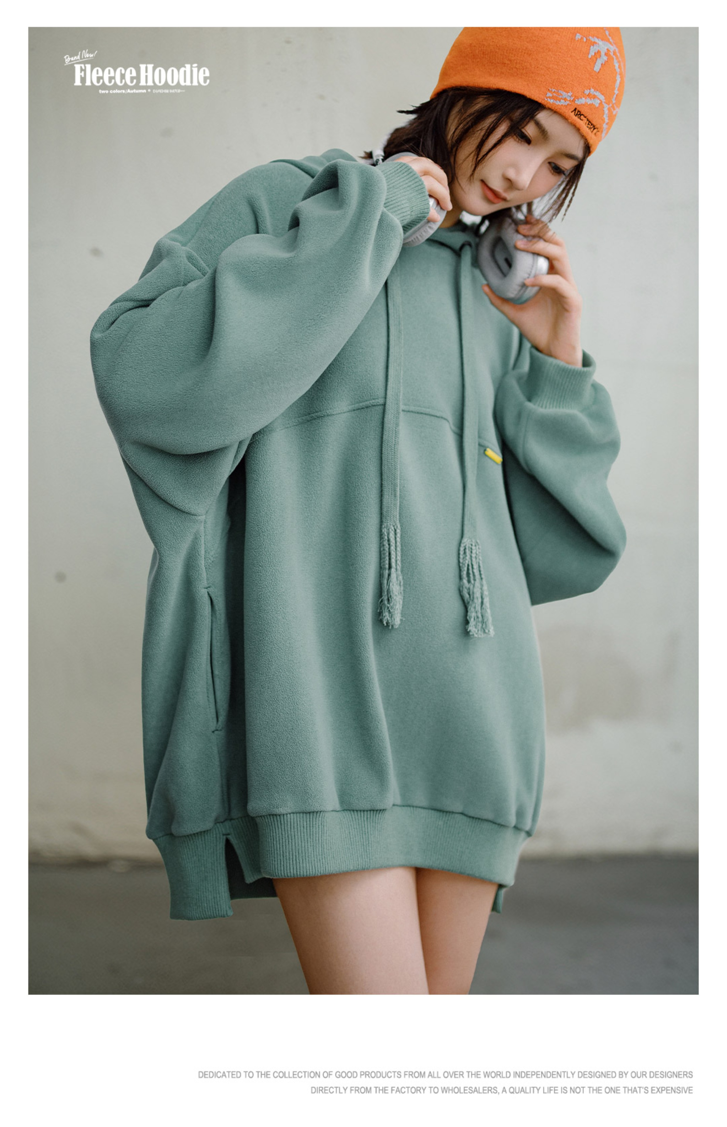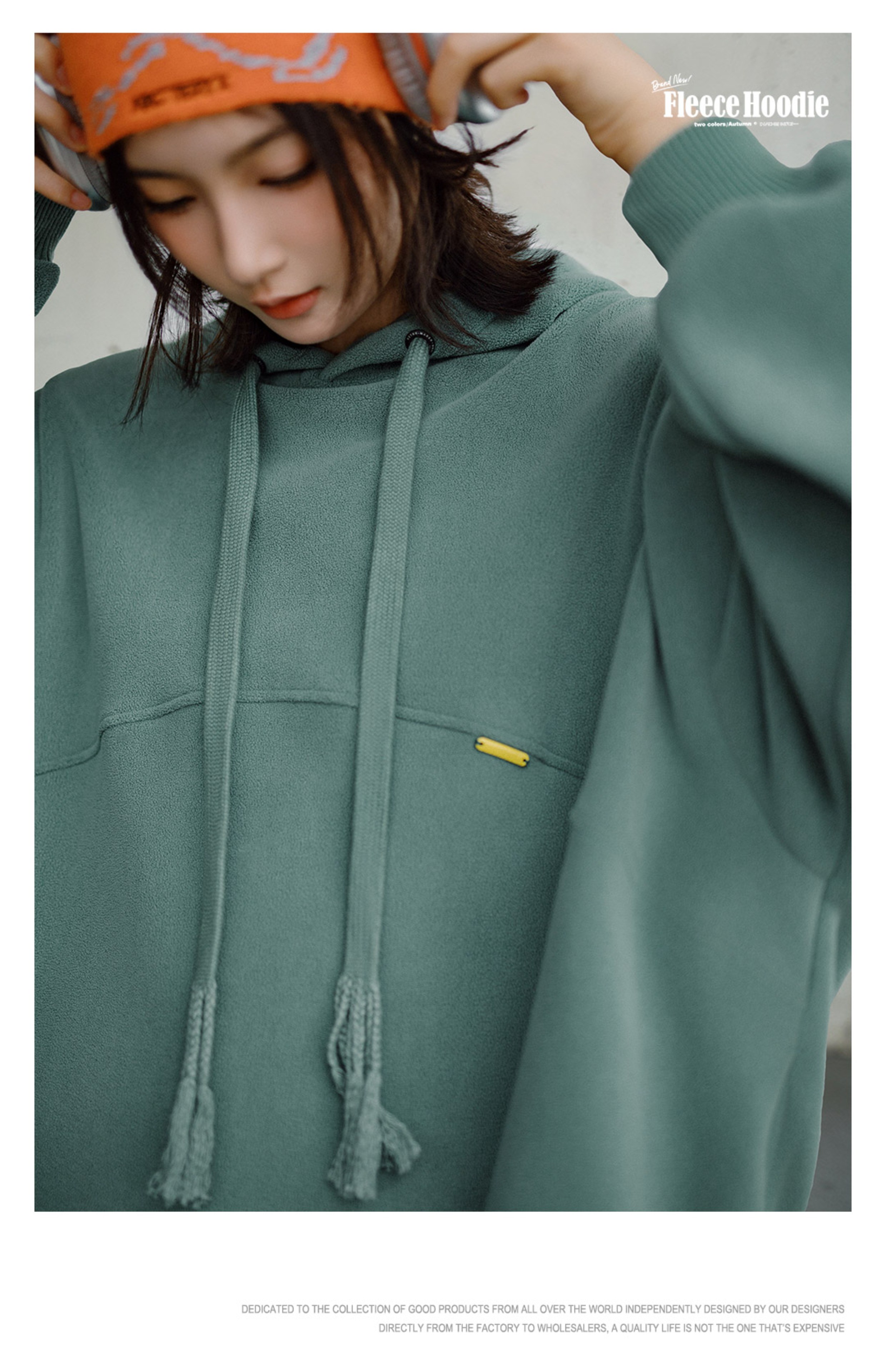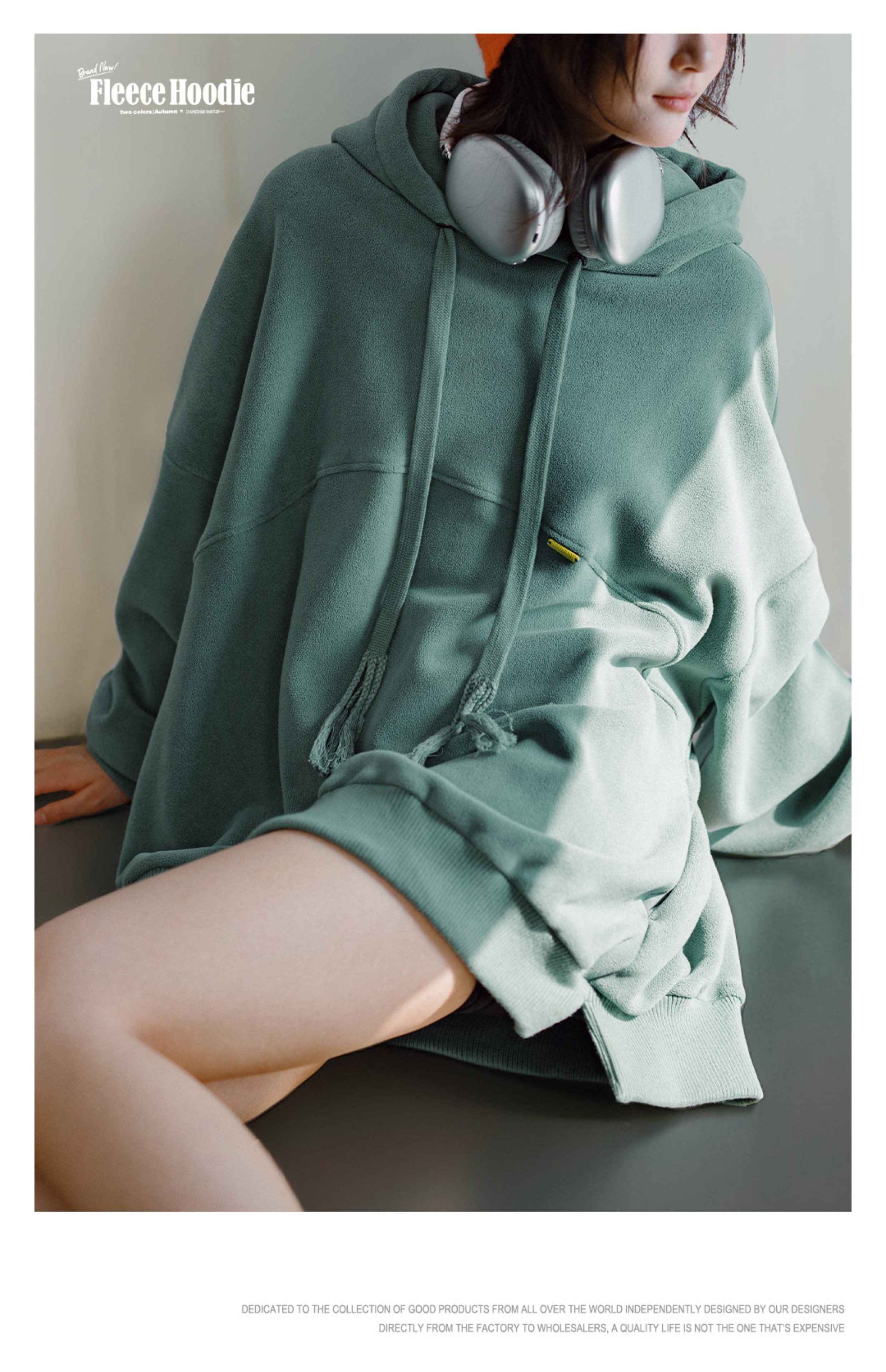 马登美式加绒奥粒绒卫衣连帽摇粒绒外套宽松休闲秋冬内搭上衣女