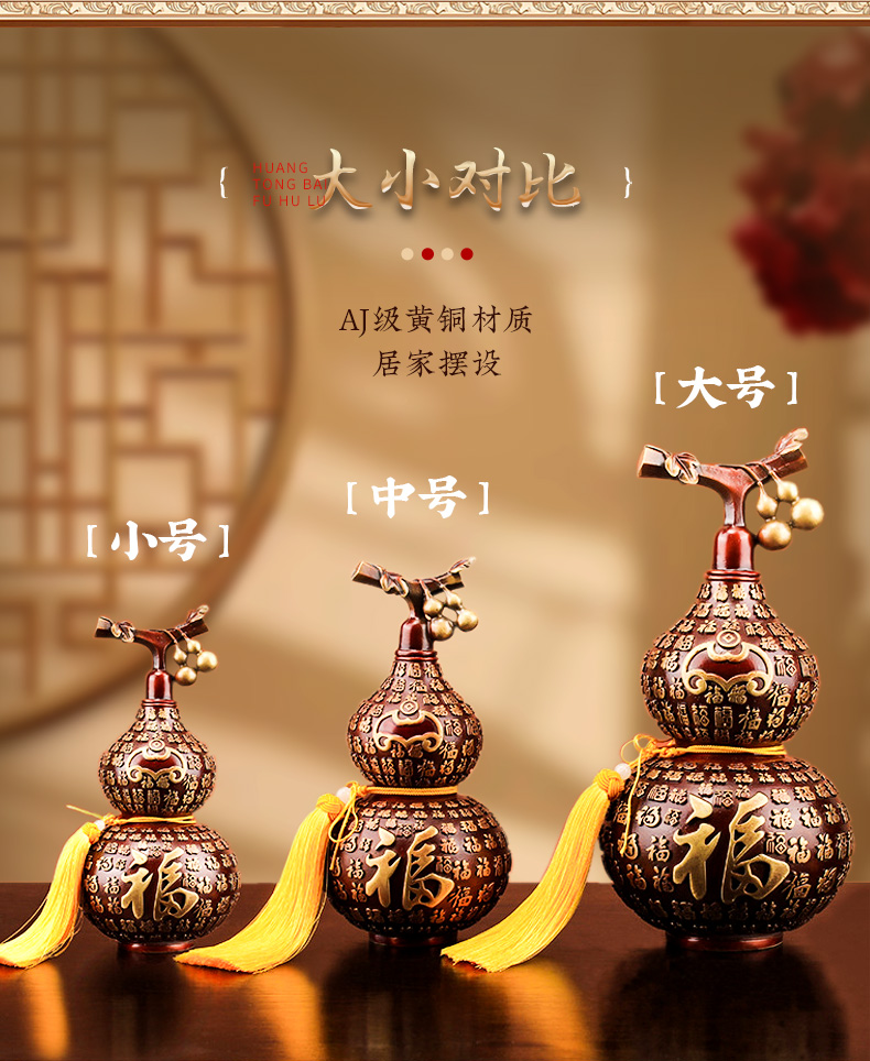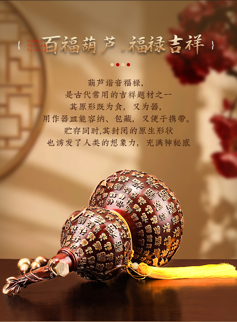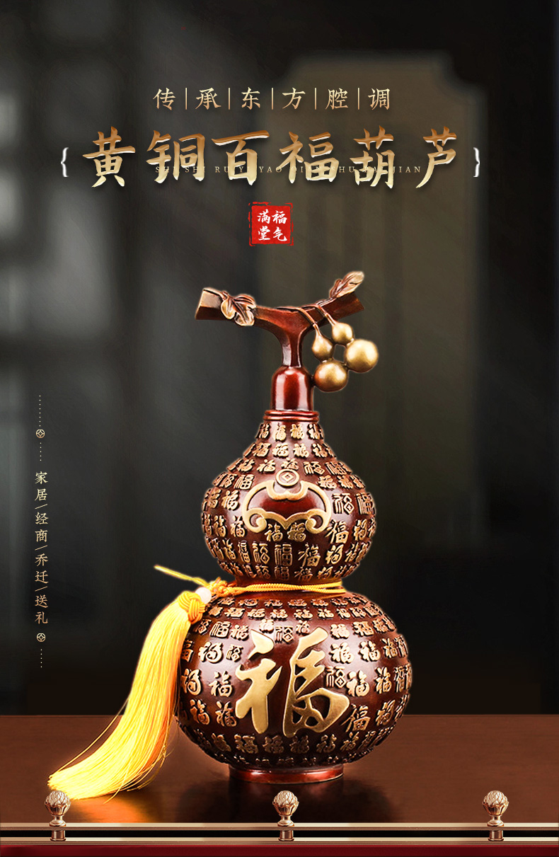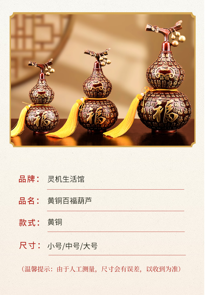 灵机麦玲玲2026马年百福葫芦摆件黄铜古朴厚重开盖彩铜家居办公室