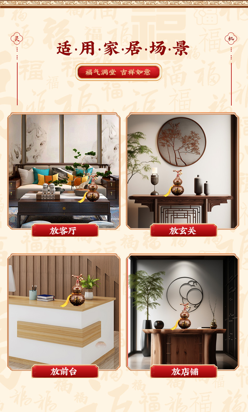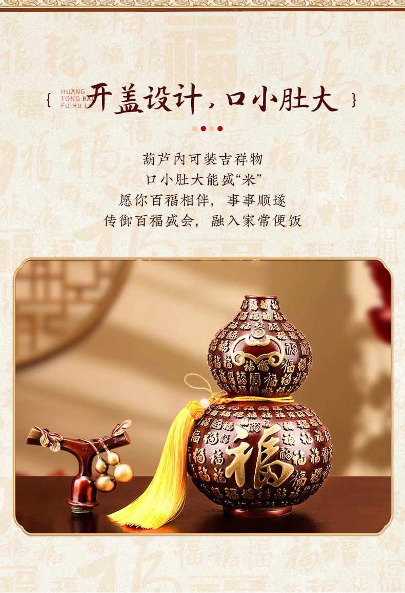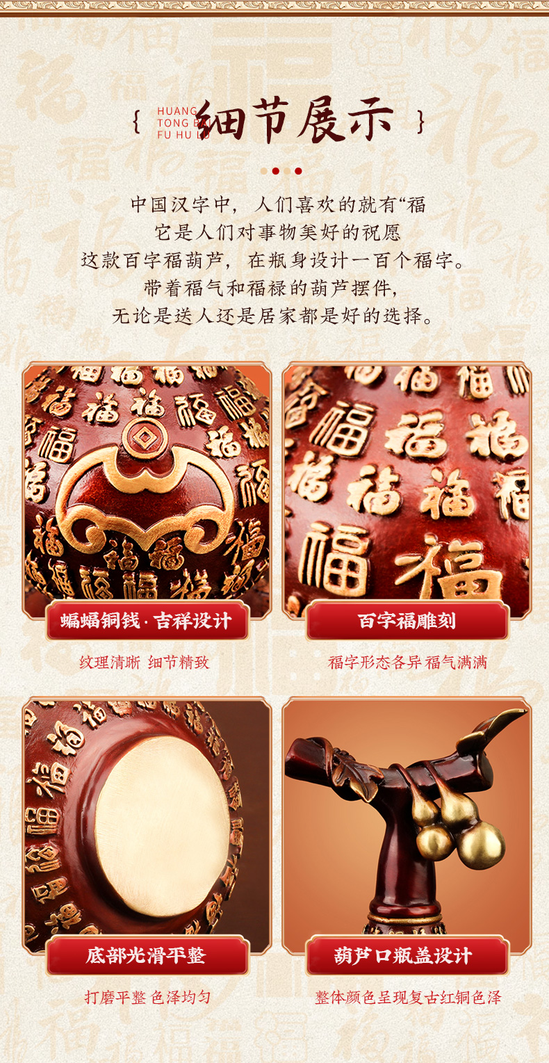灵机麦玲玲2026马年百福葫芦摆件黄铜古朴厚重开盖彩铜家居办公室