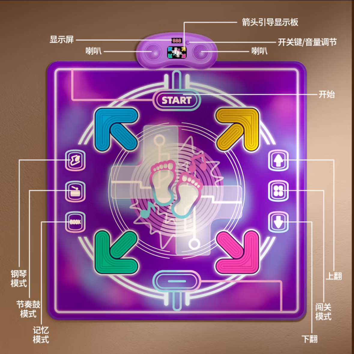 “充电高配版 尽情欢跳”桦轩 畅享版家庭音乐跳舞毯 无需电视 可连蓝牙 健身娱乐两不误 孩子蹦蹦跳跳长高高