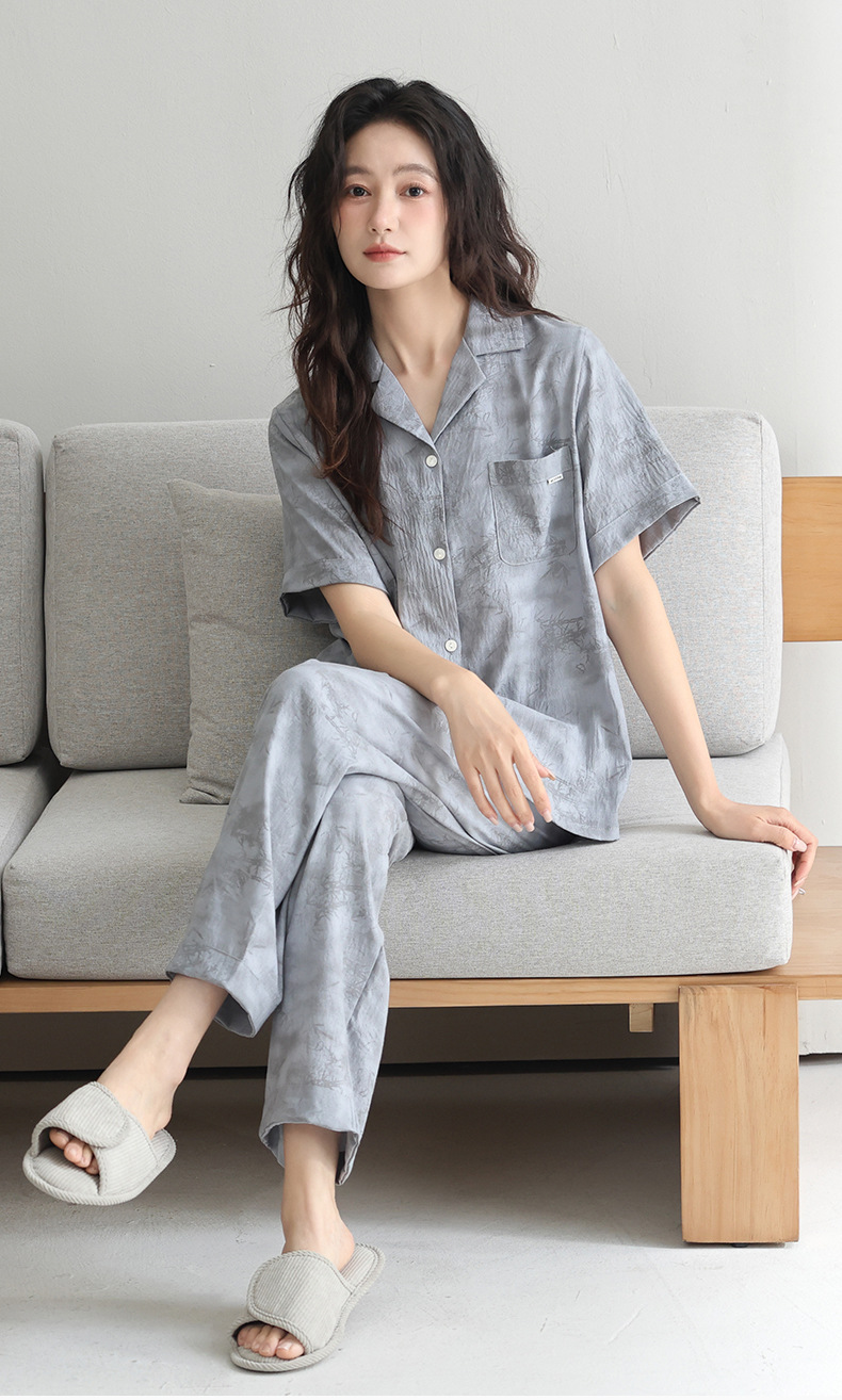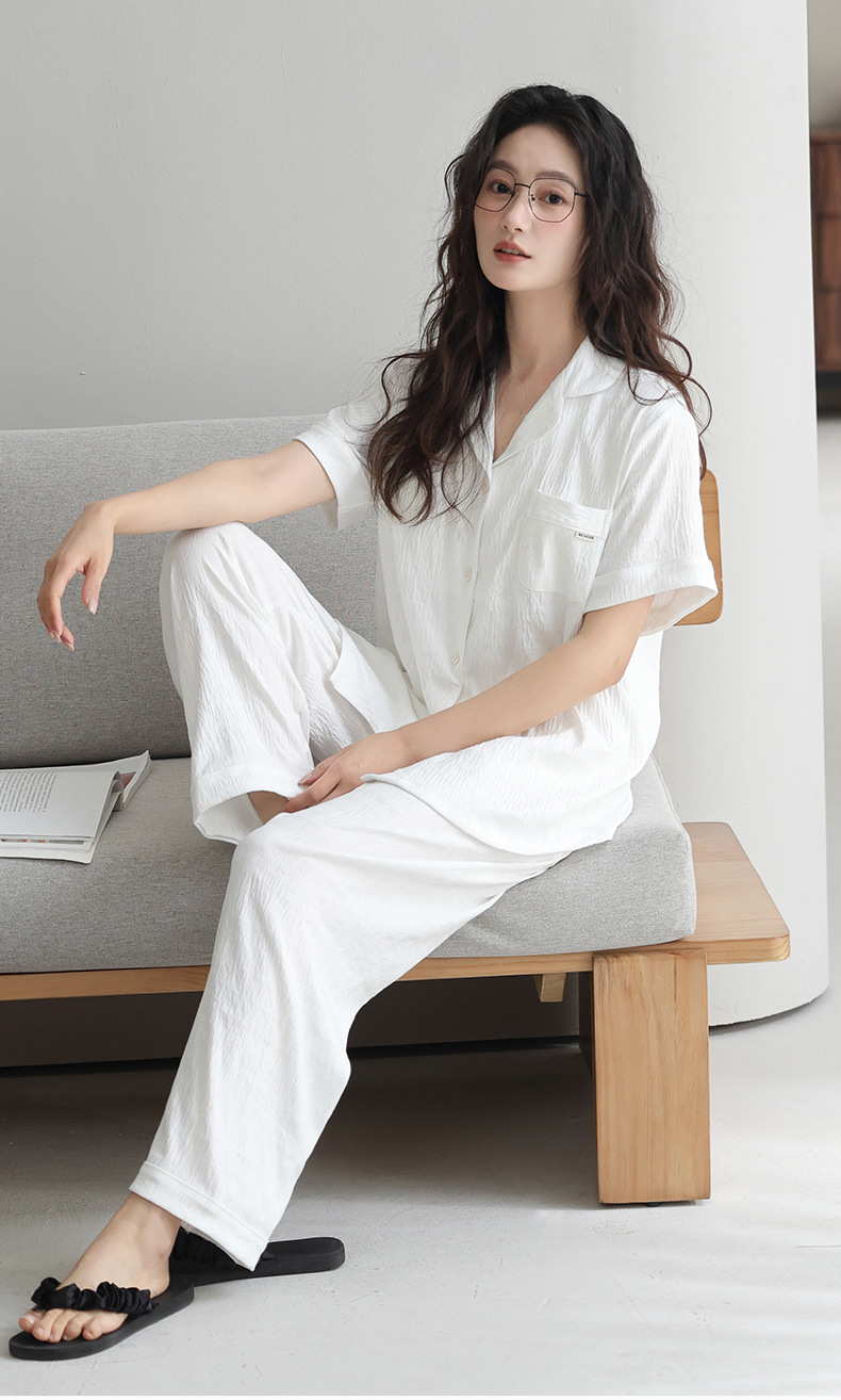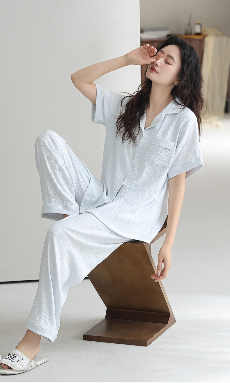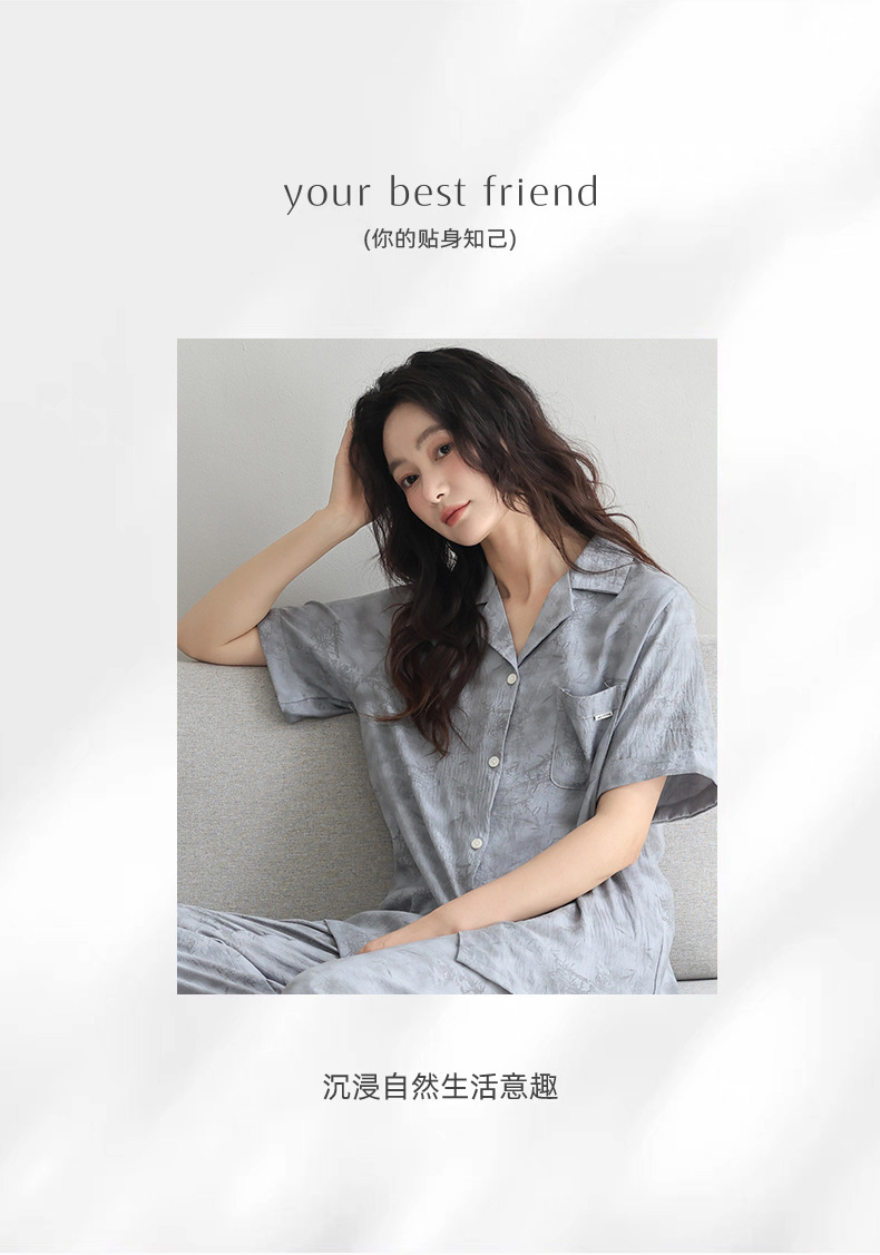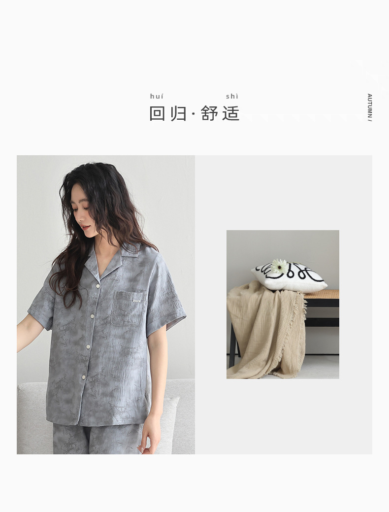 【带胸垫防走光】2025新款云朵棉短袖长裤家居服 免穿文胸日系高级感睡衣套装