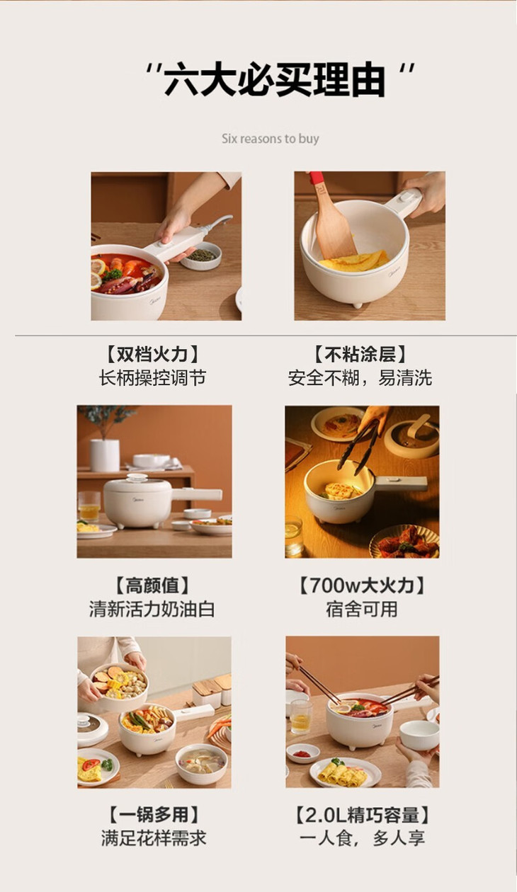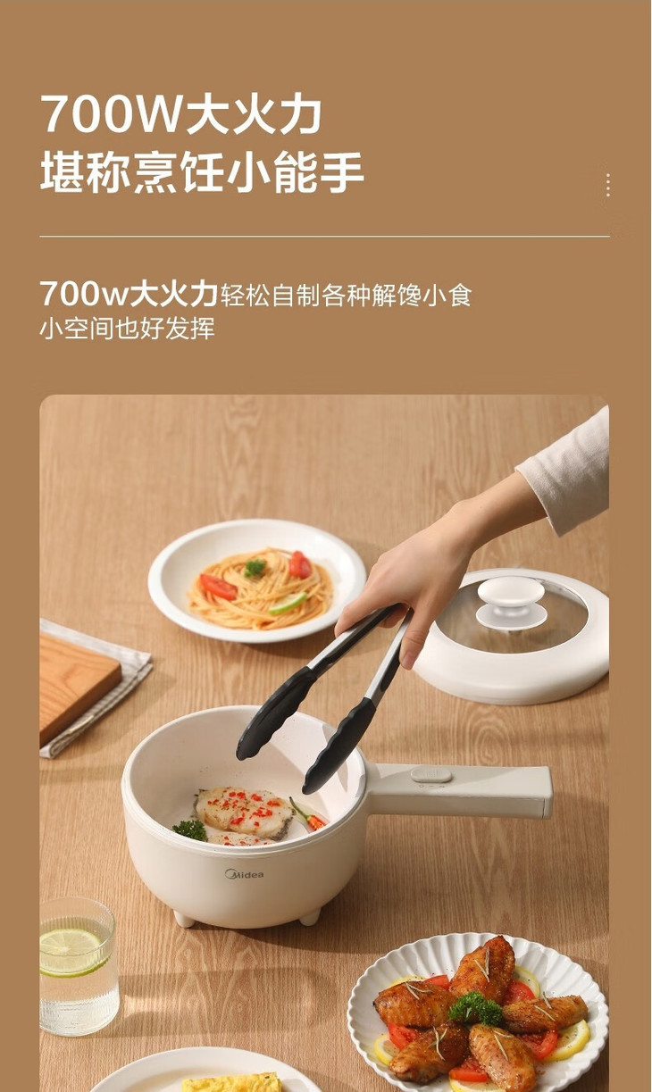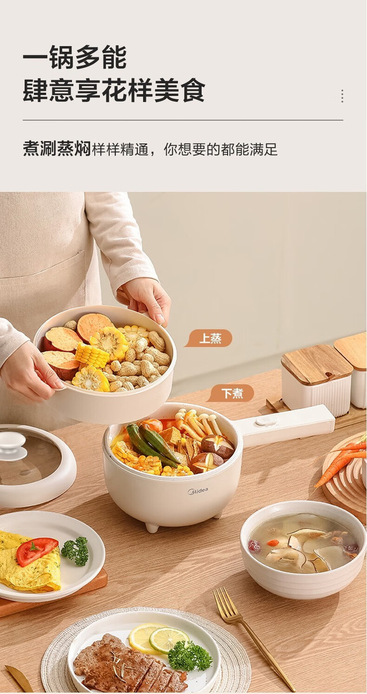 美的(Midea)电煮锅多功能宿舍学生锅智能迷你小电锅小功率电热火锅煮面家用泡面火锅 MC-XZE2003
