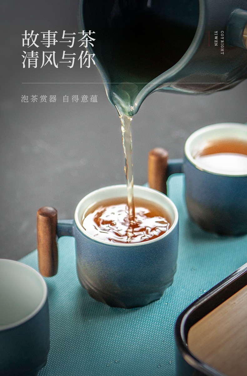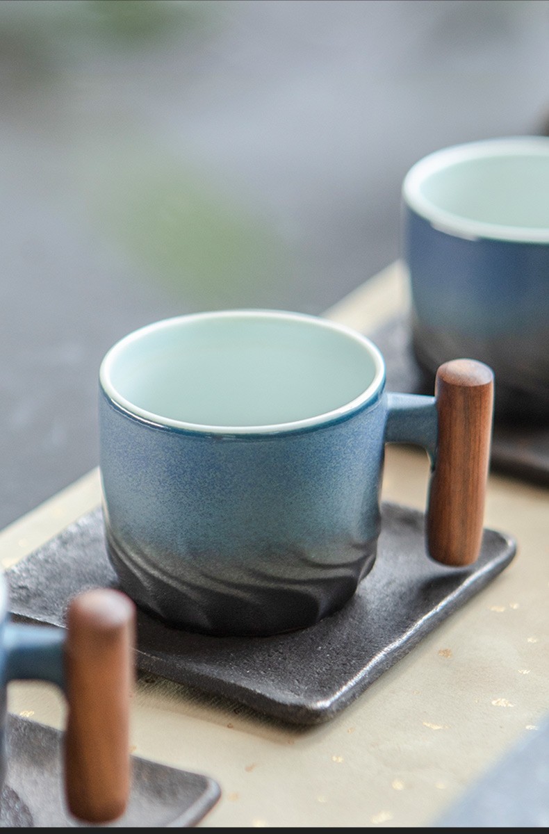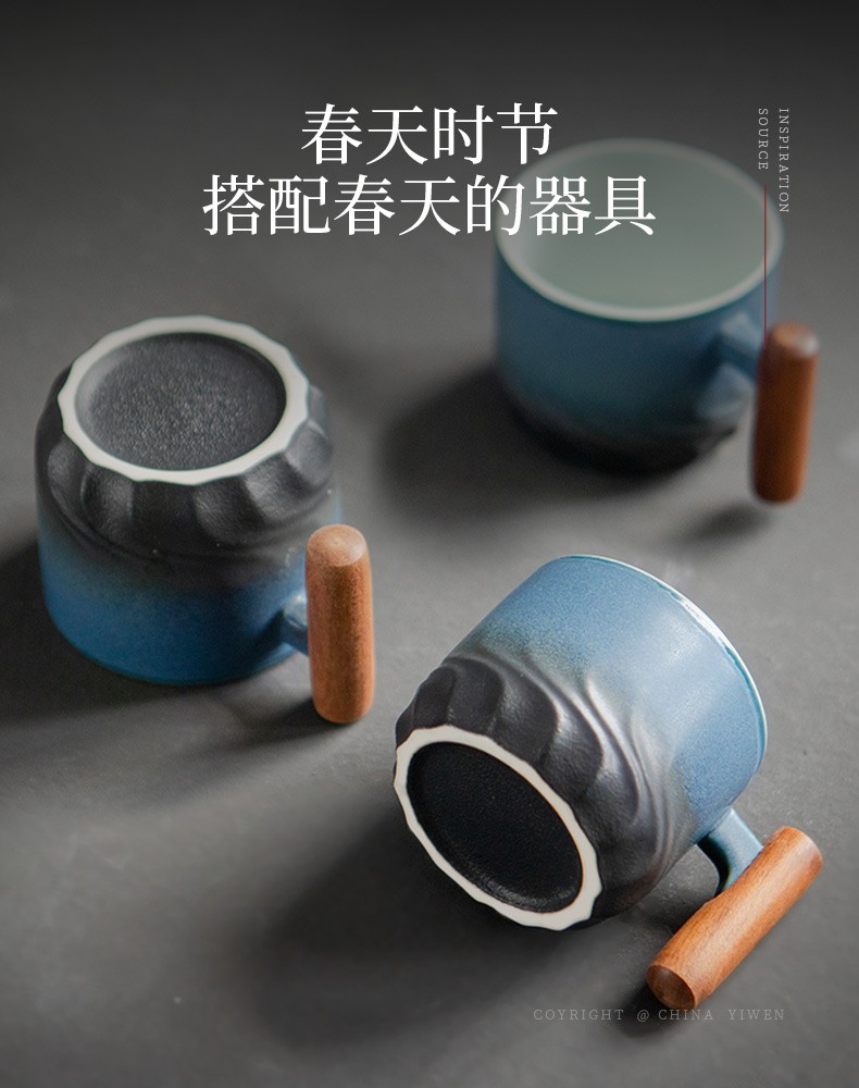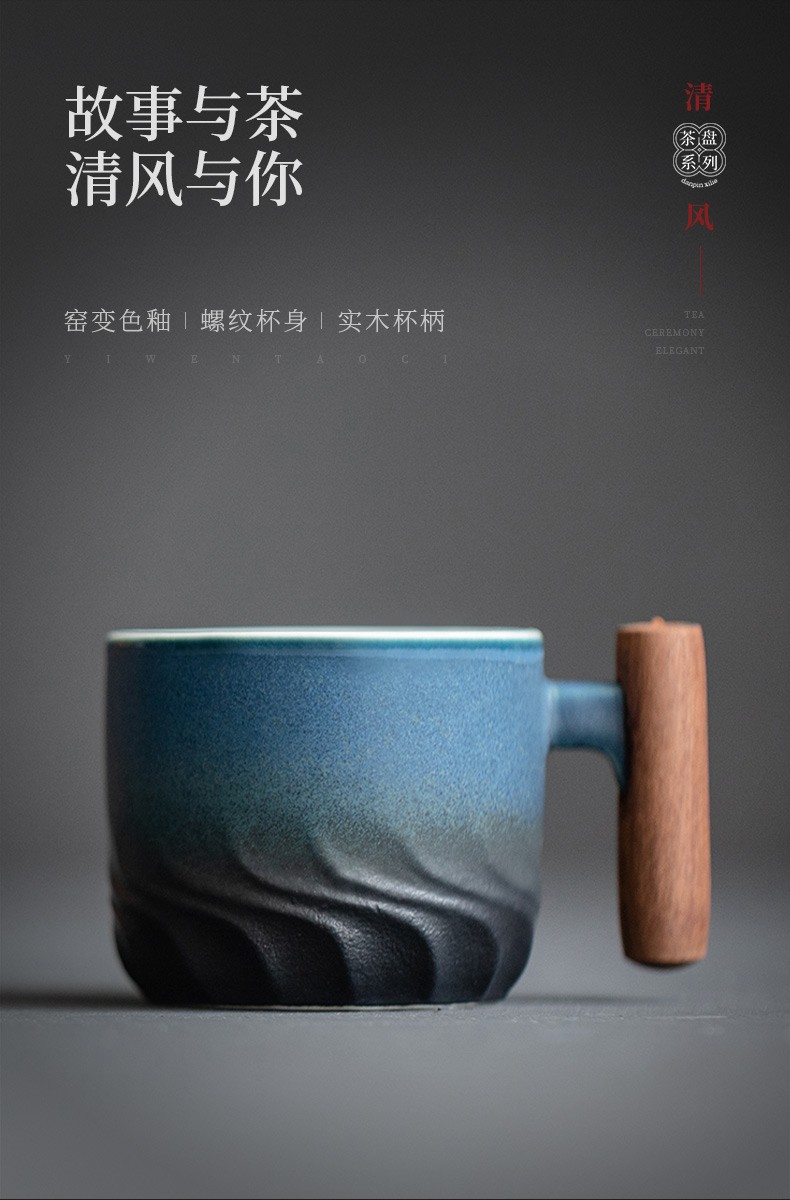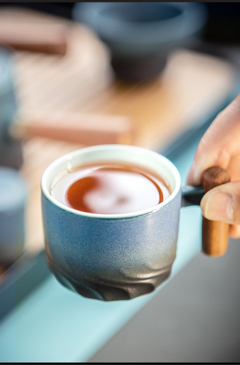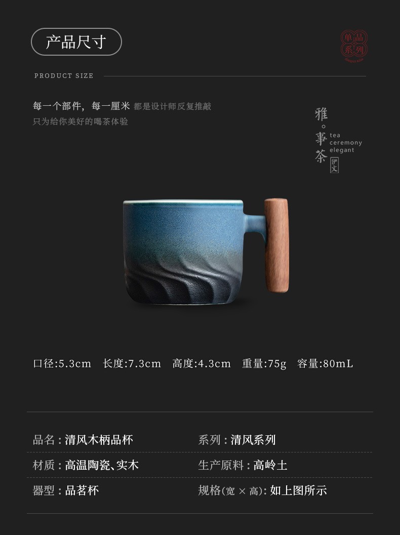 陶瓷清风品茗杯功夫茶具个人单杯简约主人杯陶瓷小茶杯品杯 清风木柄品杯L1d