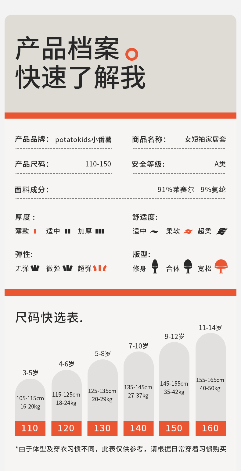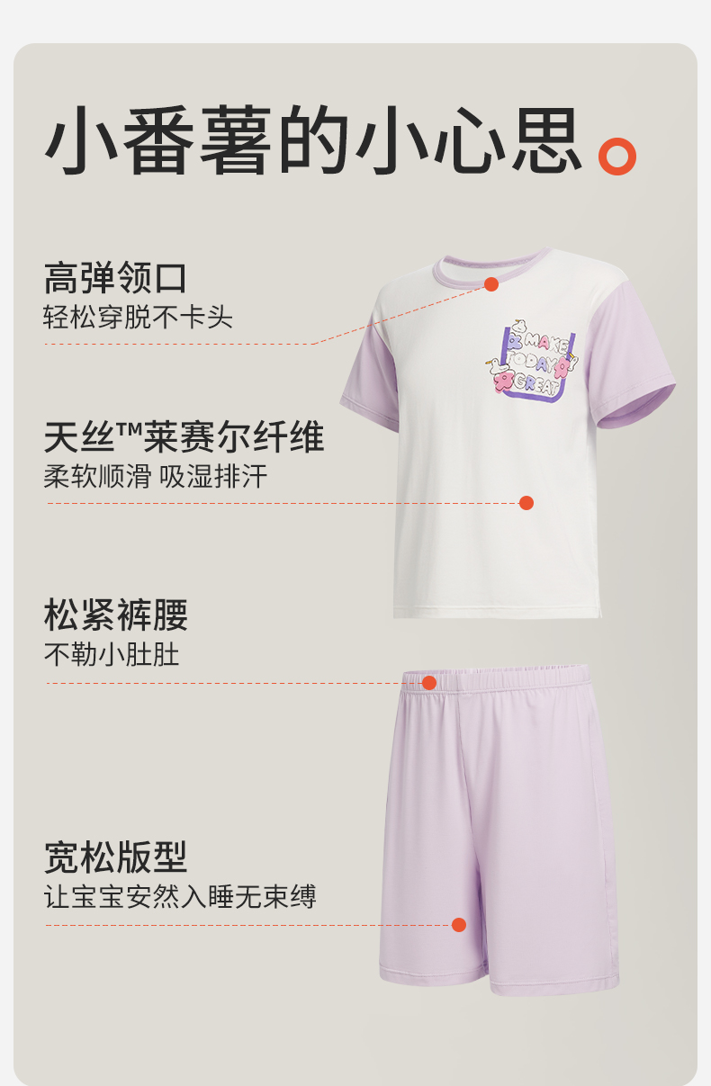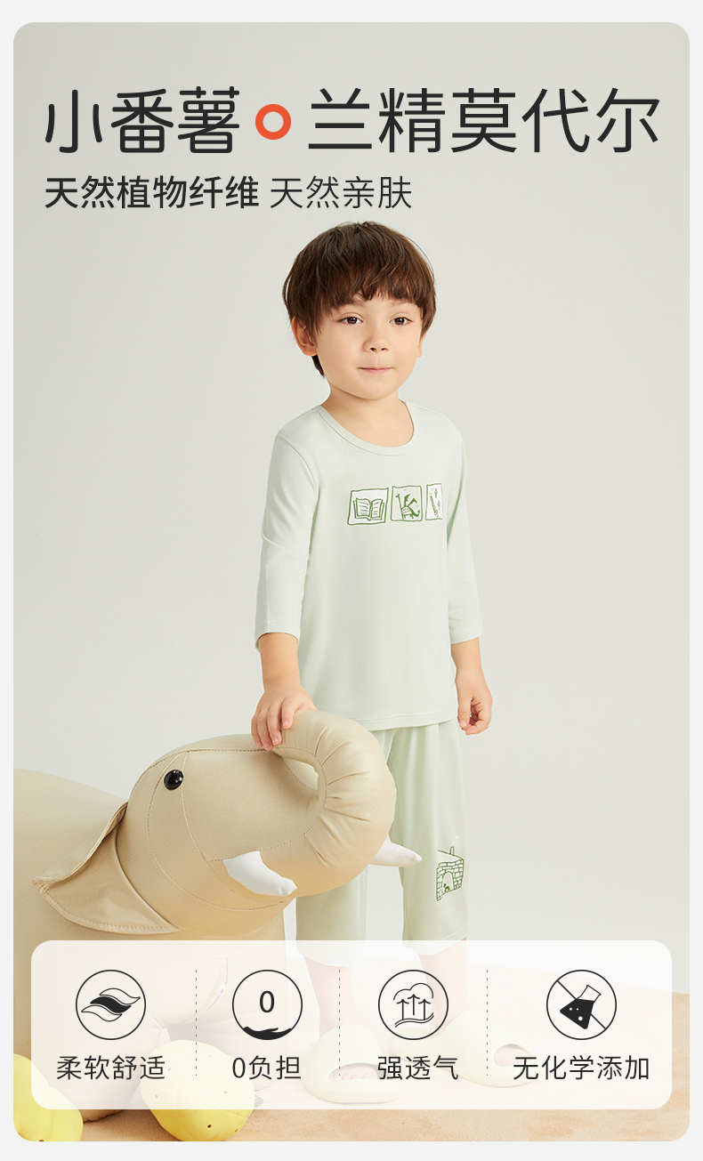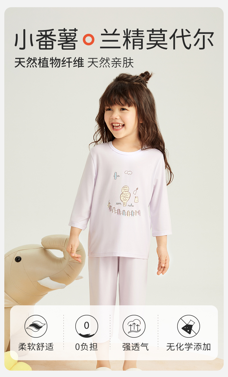 【特价爆款】小番薯PotatoKids莫代尔男童女童家居服吸湿透气睡衣套装