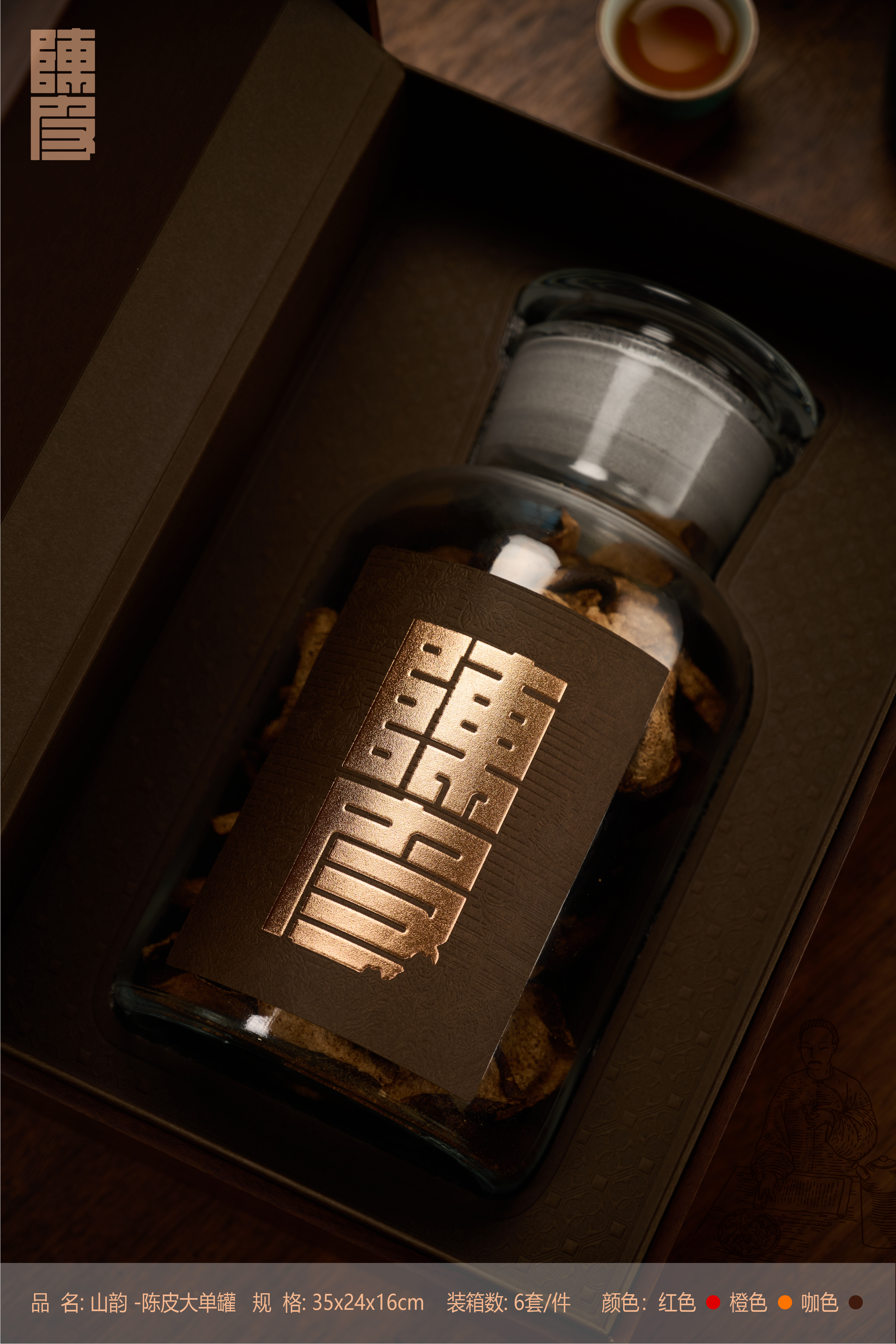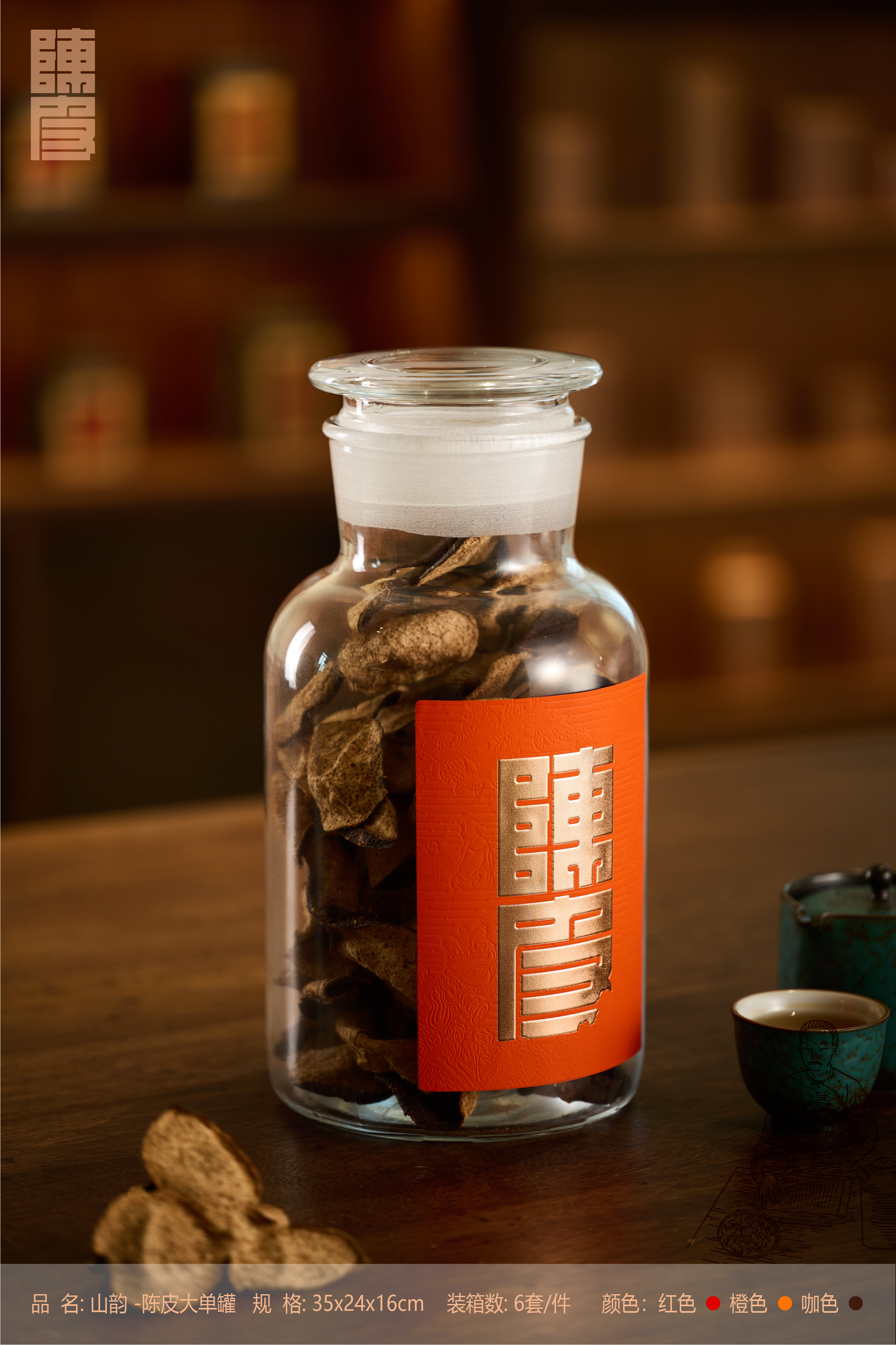 山韵【陈皮单玻璃罐大号 红色】55元一套/一箱6套