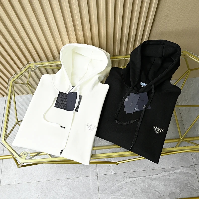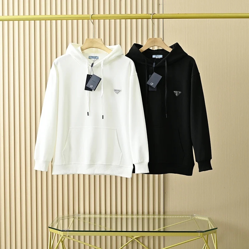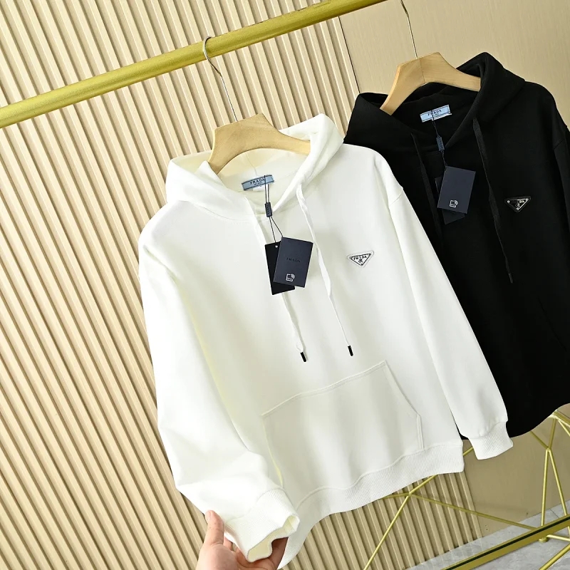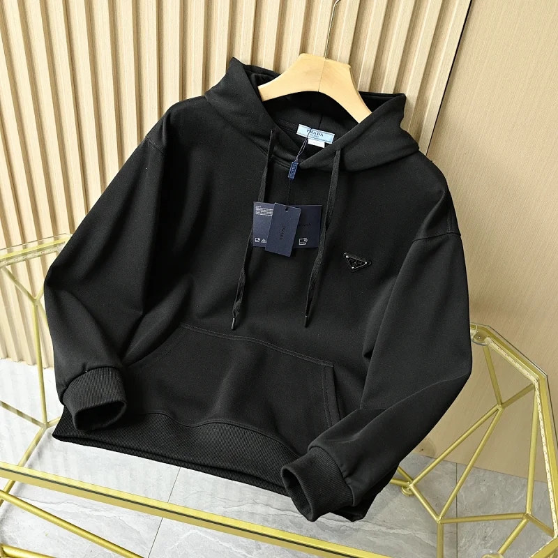 普啦达春秋季新款经典三角皮标专属logo纯棉连帽卫衣外套