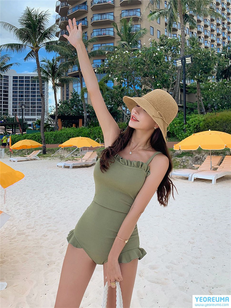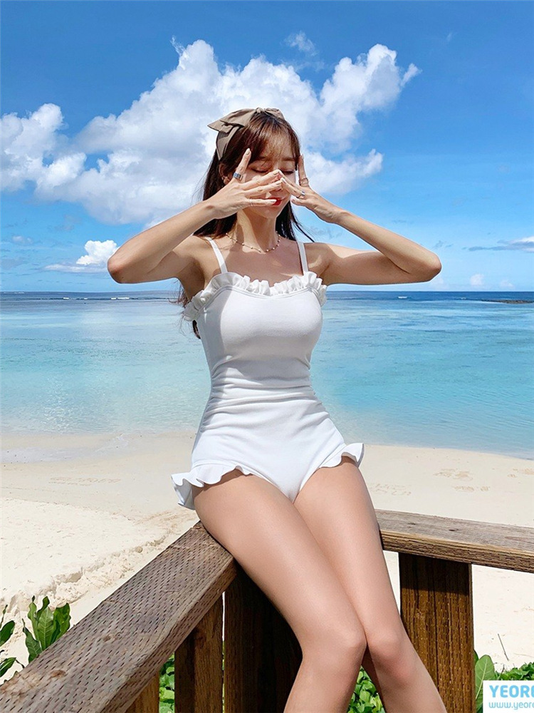 运动户外-性感吊带连体泳衣女士紧身遮肚显瘦 温泉泳装