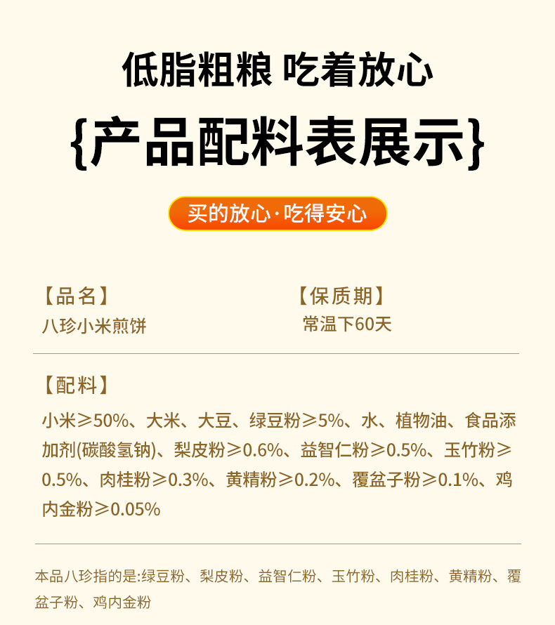 【食养健康❗️八珍小米煎饼】低脂肪轻负担「放心吃的主食」0添加蔗糖,老少皆宜美味健康无负担,早餐代餐饱腹食品L