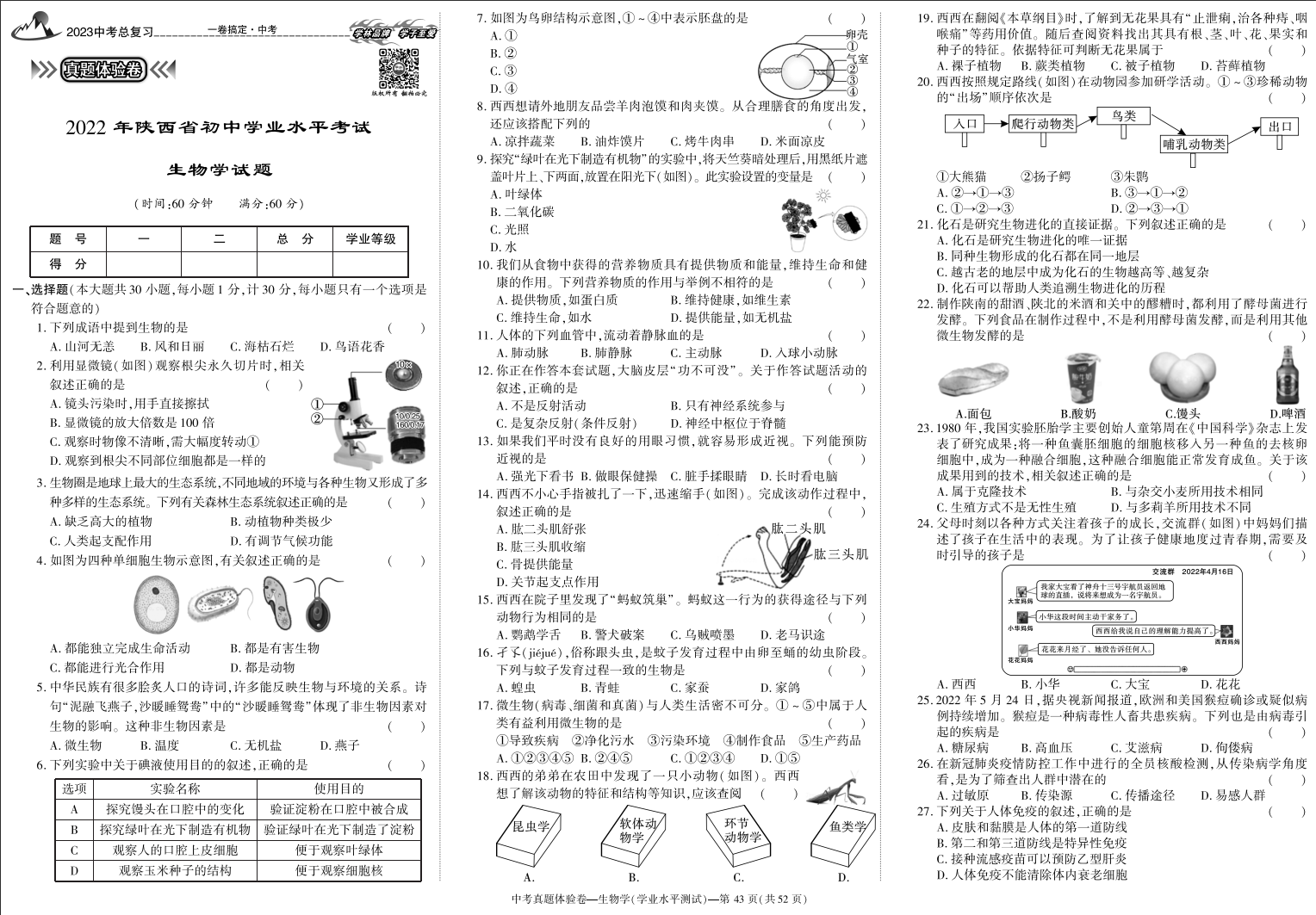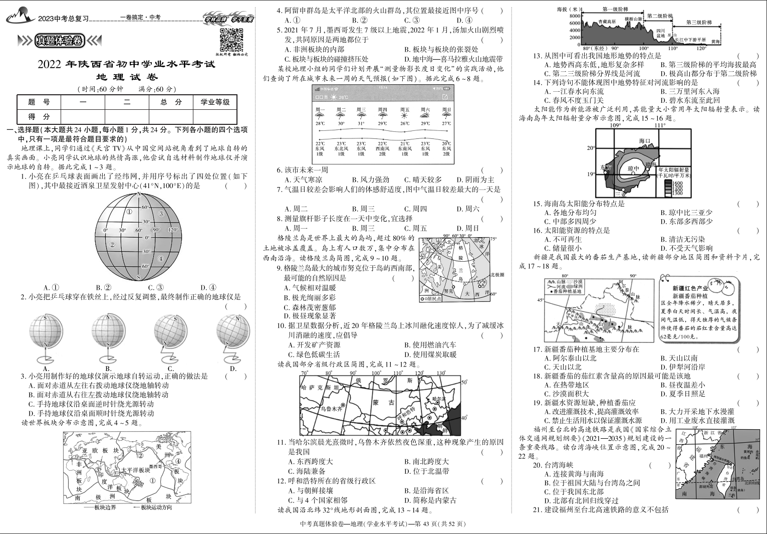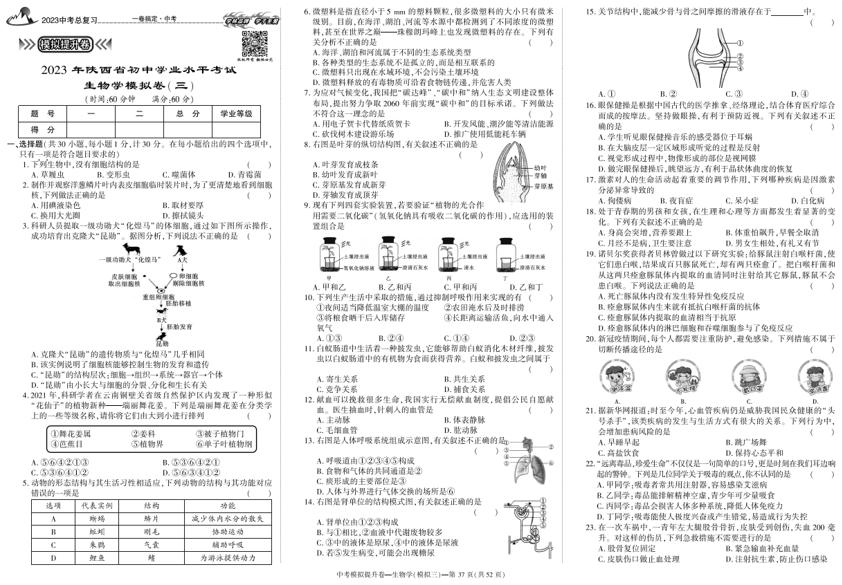 地理、生物学《中考专项集训卷》2023陕西中考专用各版本通用