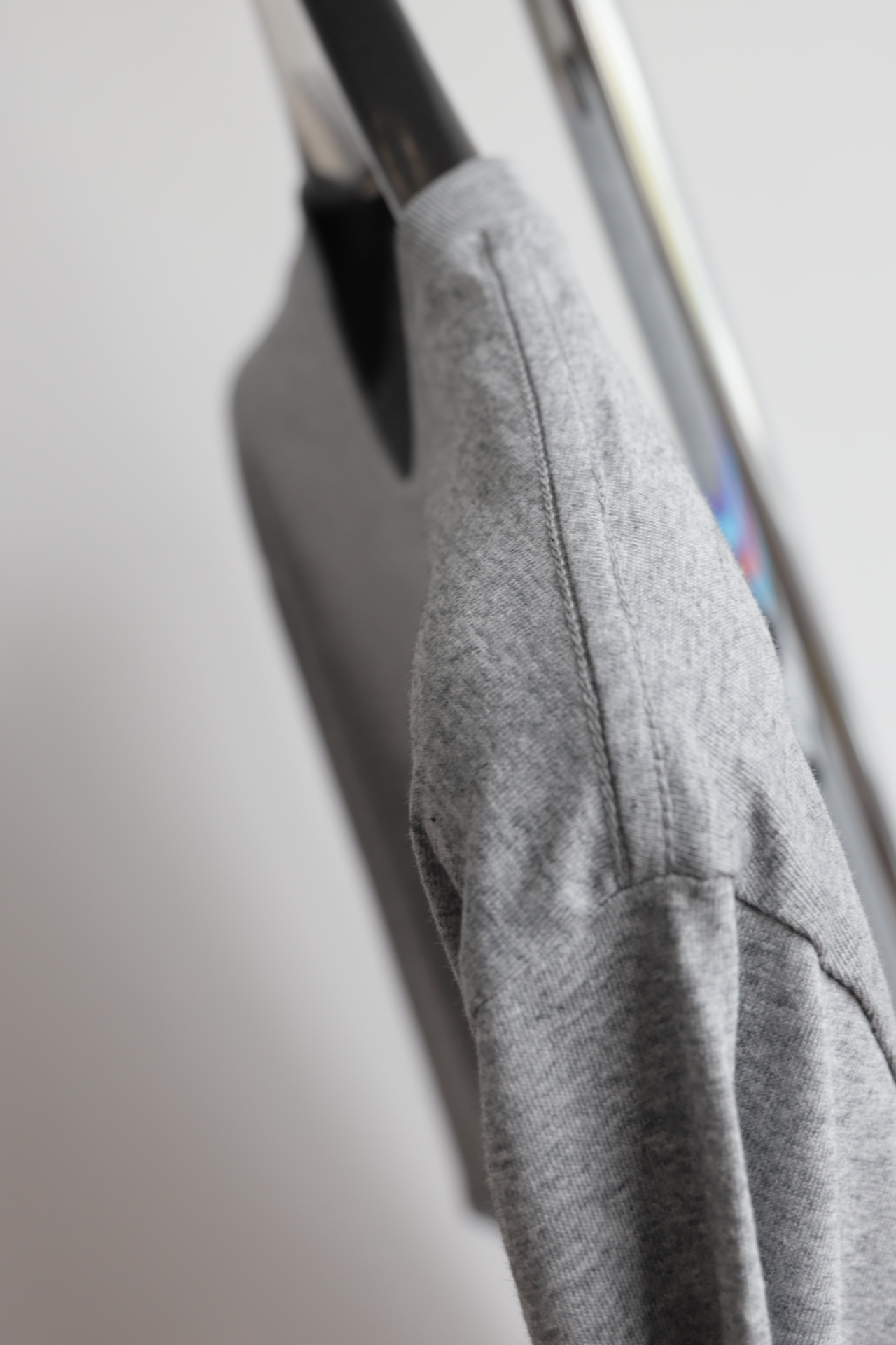 230克32支双纱棉,质感好、有型、耐用、亲肤。厚度适中、廓形挺括,不易变形,从初秋穿到初春都没问题。