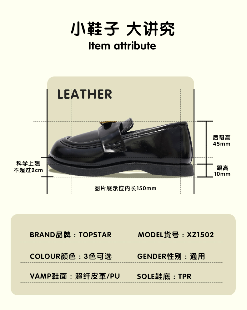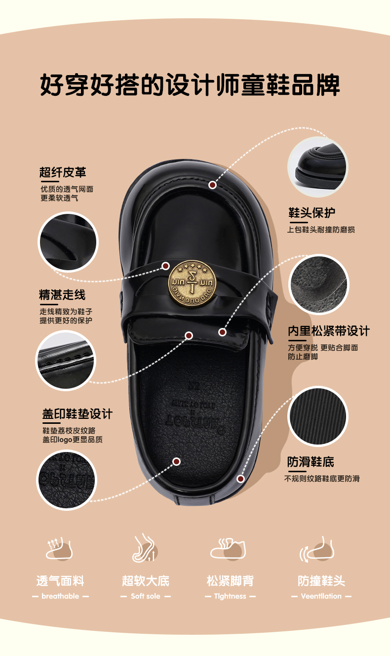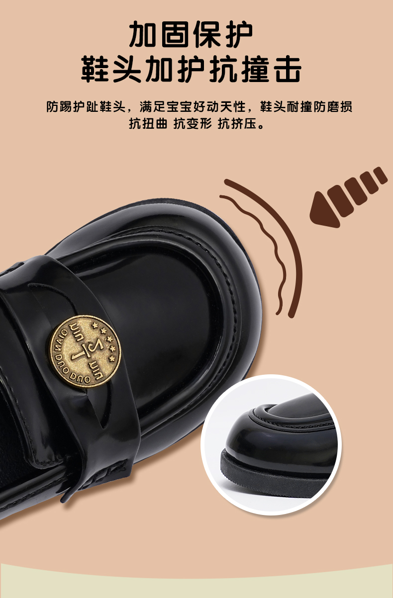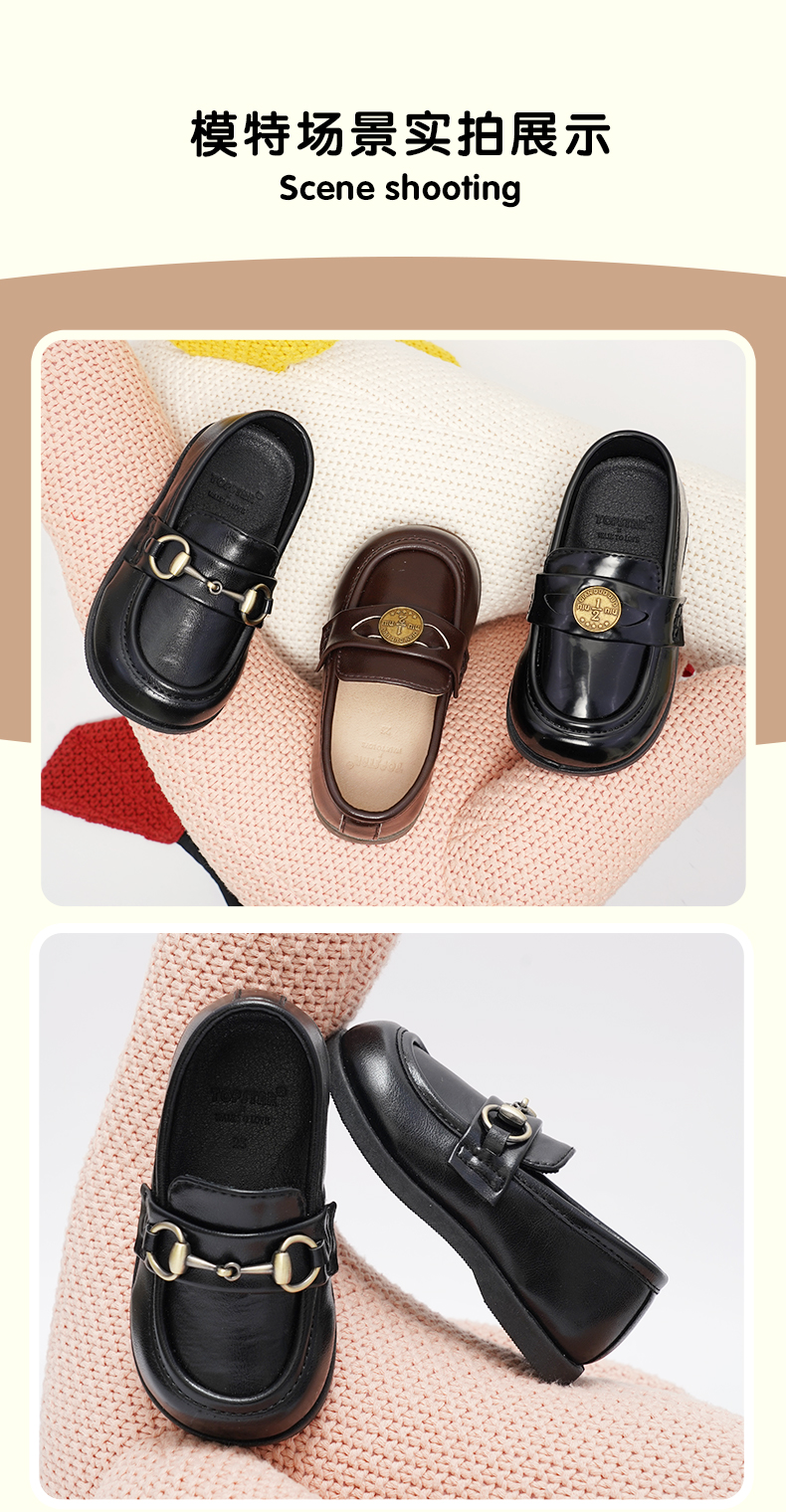 TOPSTAR男女童金币链条一脚蹬软底小皮鞋幼儿园表演鞋-1502