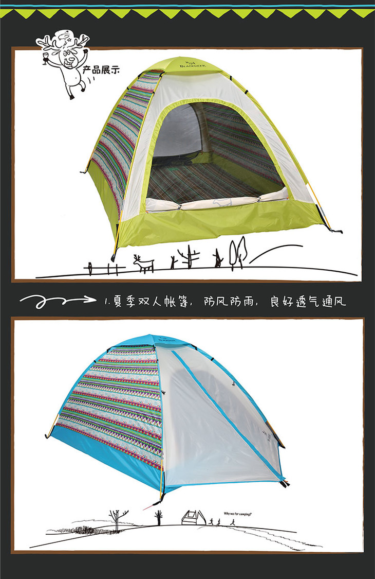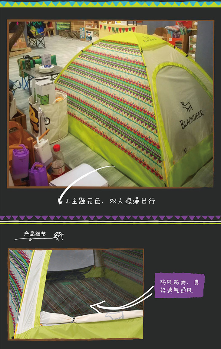 3、夏季主题花纹双人帐,防风防雨,良好透气通风,独具露营情怀