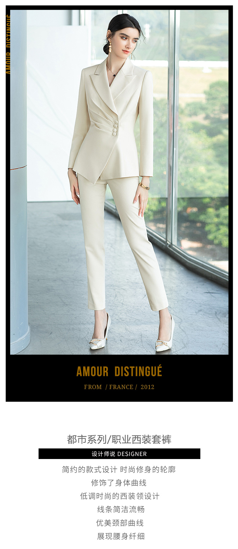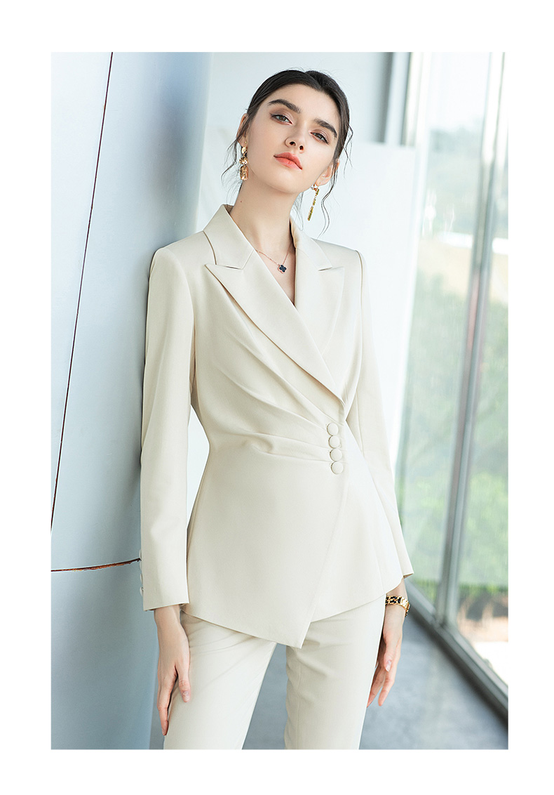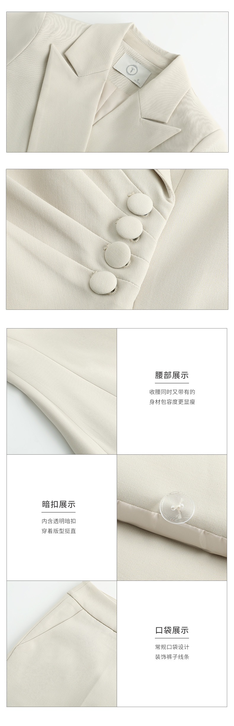 AD2022早春新款职业套装气质女神范主持人正装修身显瘦米白色西服