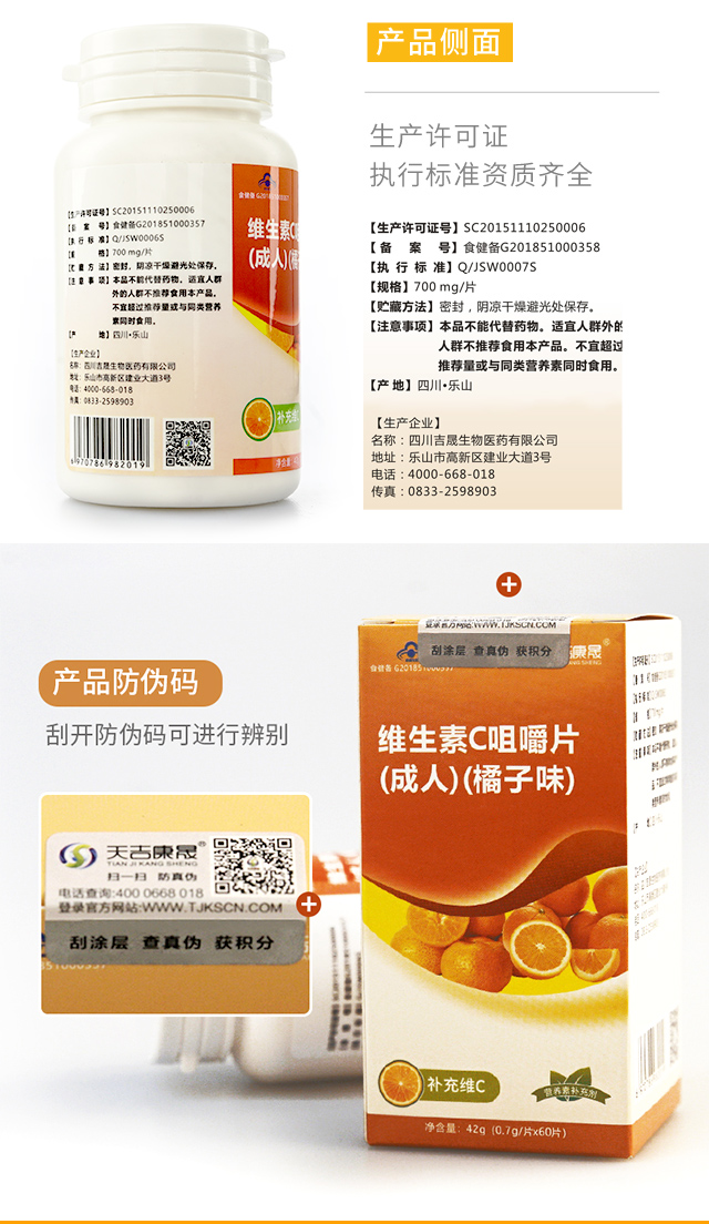 天吉康晟 维生素C咀嚼片 42g(0.7g×60片)