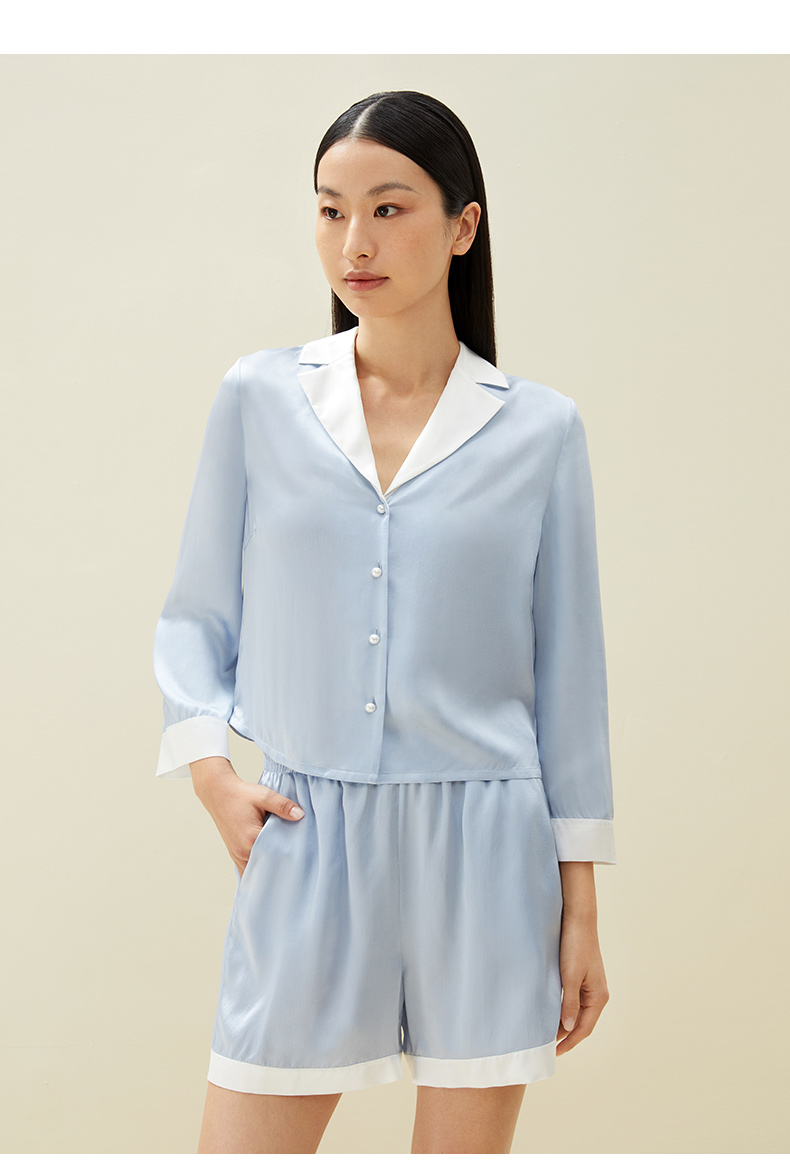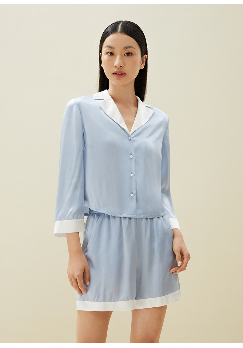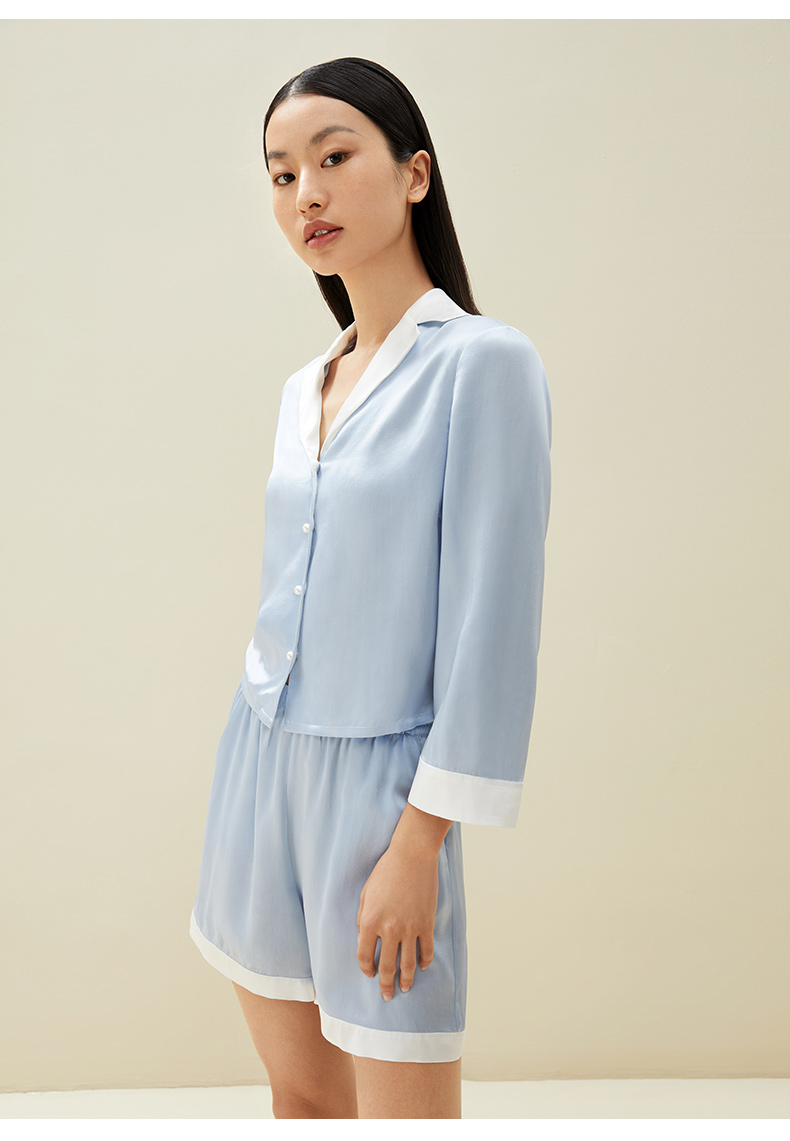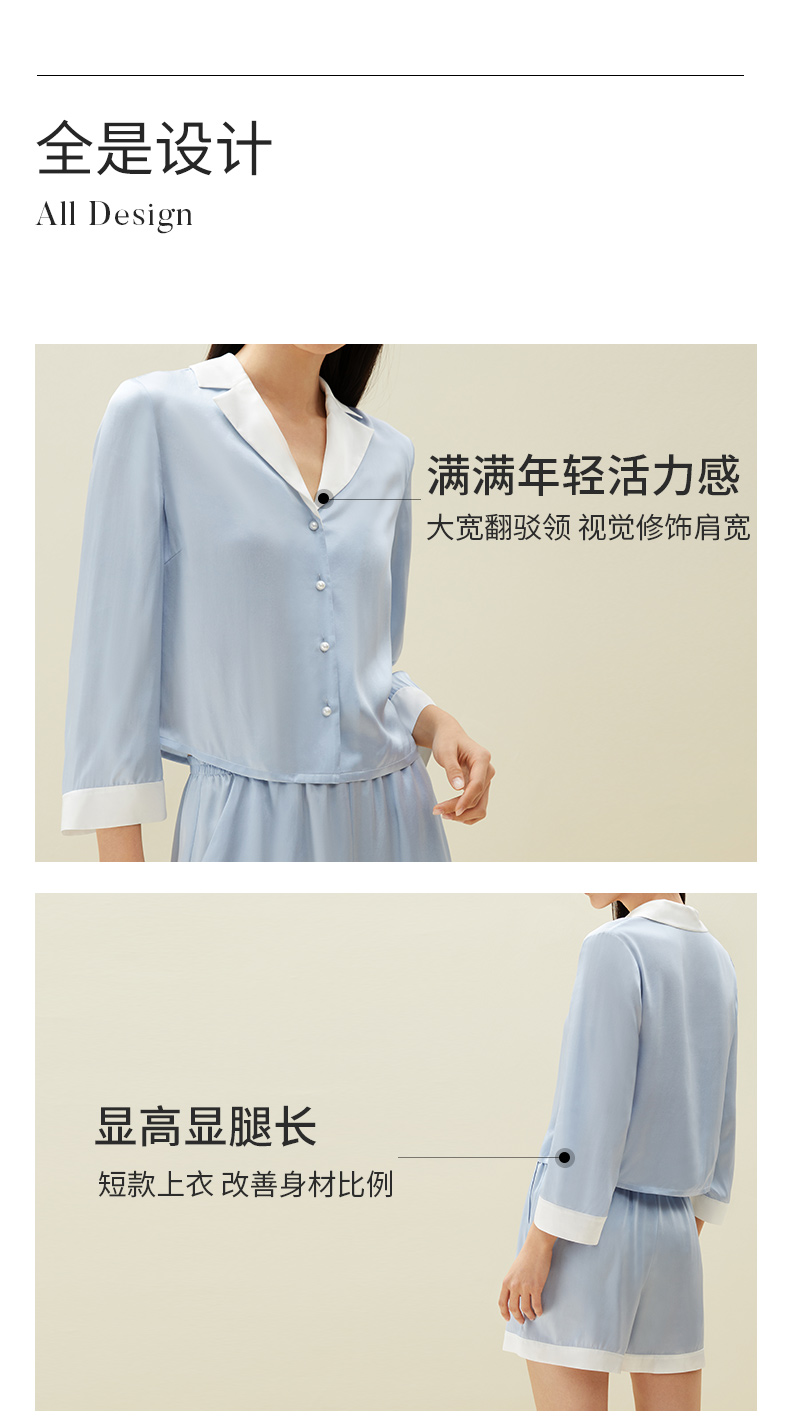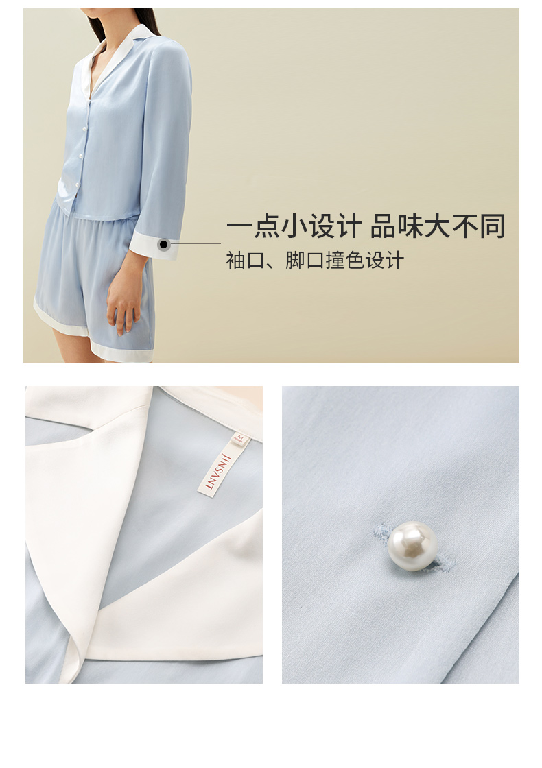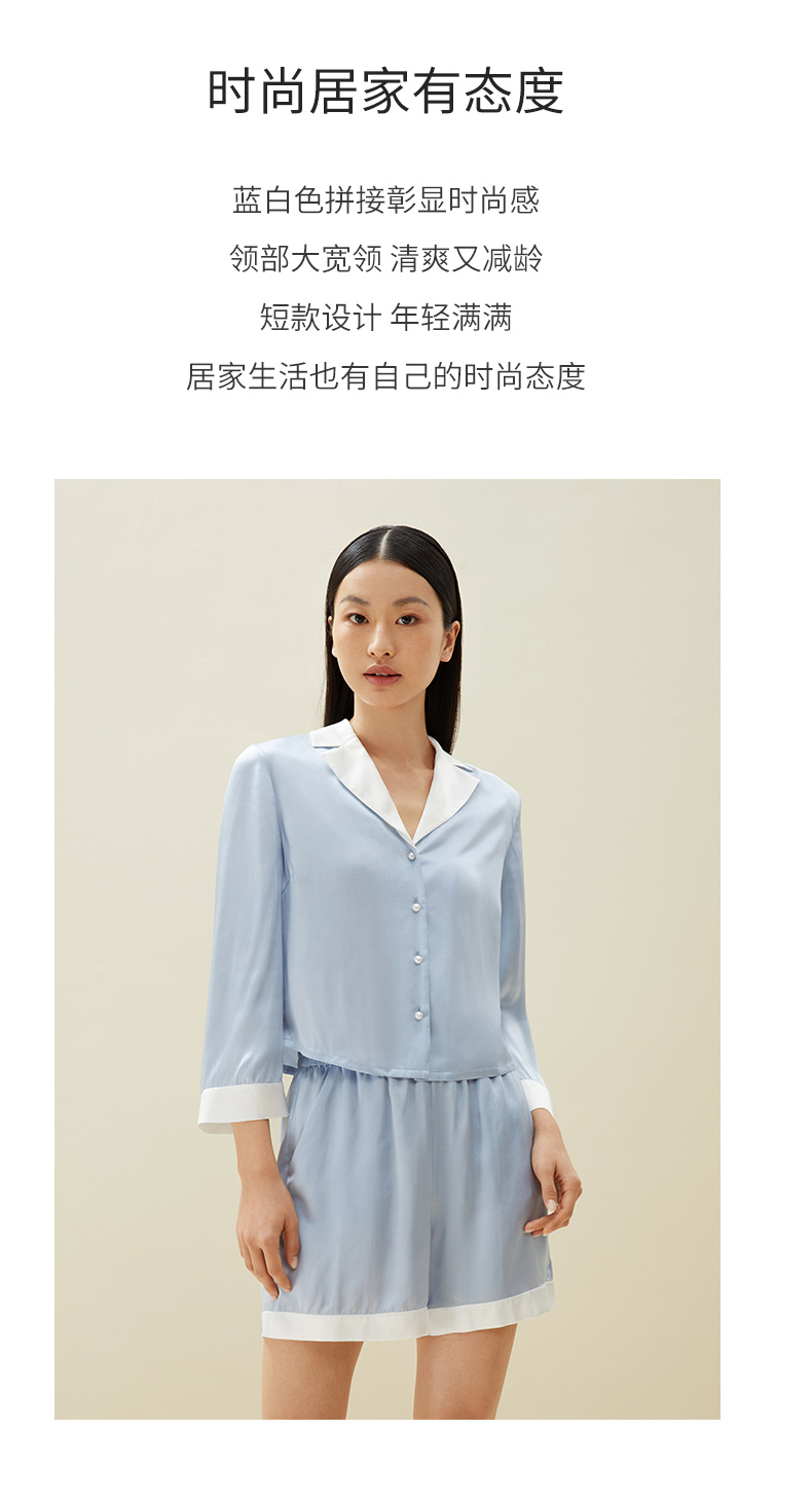 金三塔100%桑蚕丝时尚撞色可外穿真丝睡衣家居服女春夏珍珠扣套装 YSFDB203