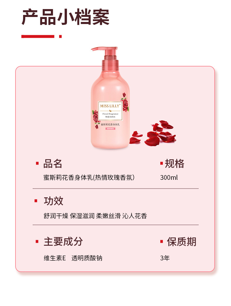 【你的肌肤“加湿器”来咯】蜜斯莉维生素E花香身体乳,让肌肤感受天然花香,补水保湿滋肤润持留久香伪体香QQ