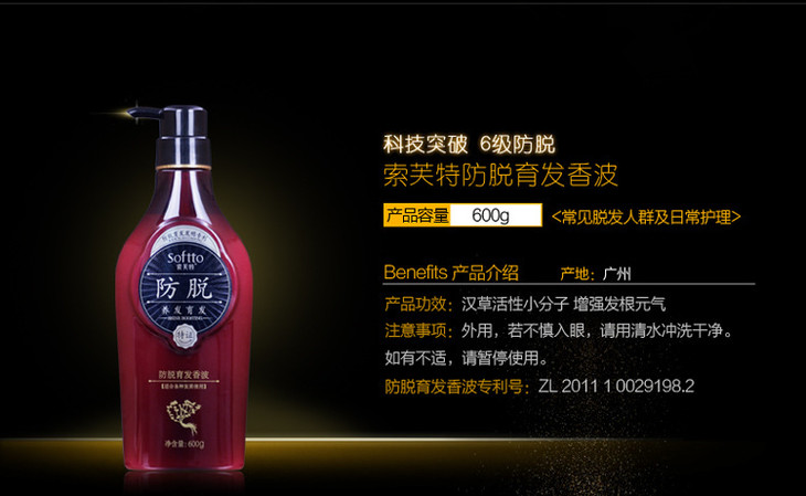 【洗发露】。索芙特防脱洗发 控油去屑防脱发生发增发密发