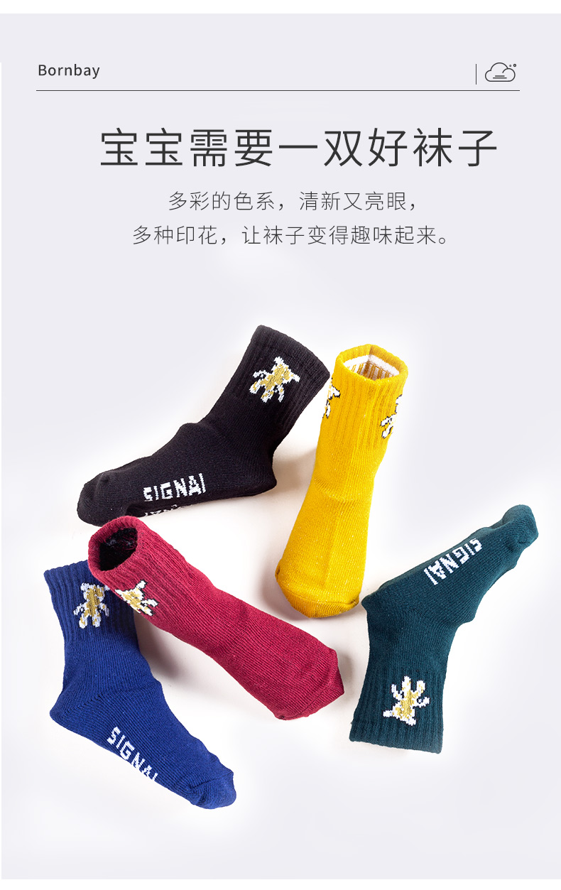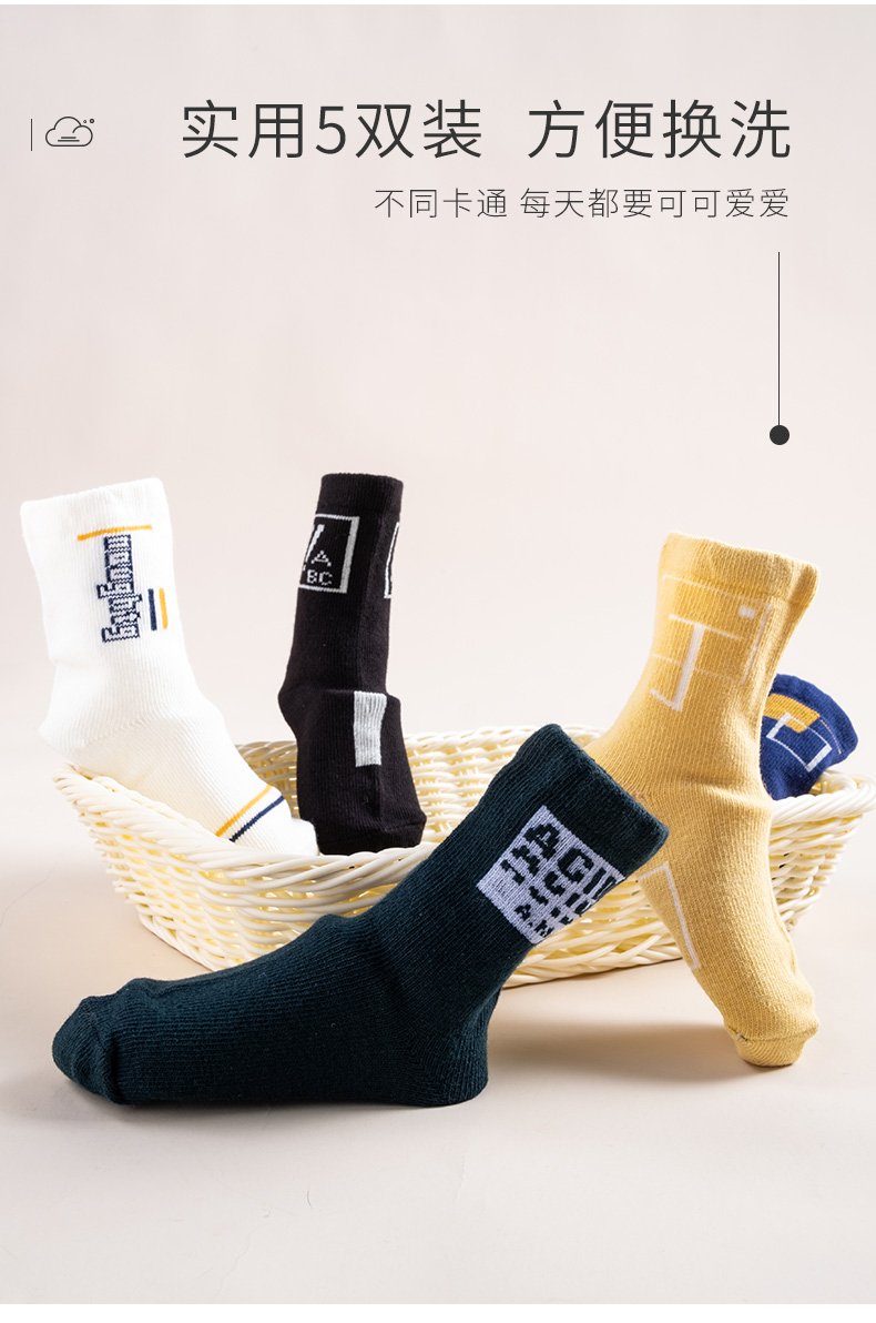 贝贝怡儿童袜子纯棉春秋男童女童中筒袜宝宝透气夏季长筒袜五双装