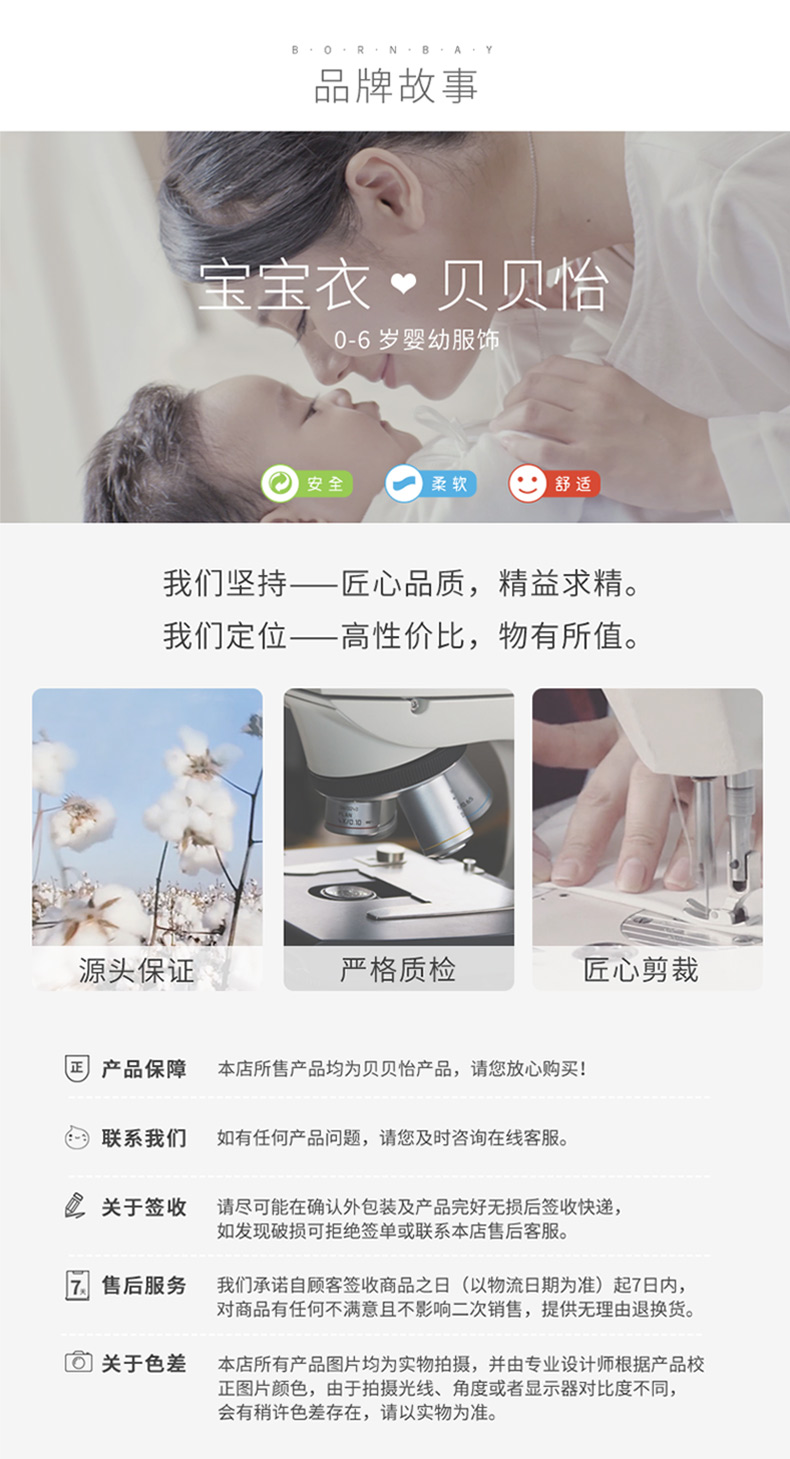 - 贝贝怡专注0-6岁婴幼儿服饰,坚持安全、柔软、舒适的产品理念,为千万中国家庭提供超高品质、安全可靠的婴幼儿服饰产品,妈妈放心,宝宝开心!