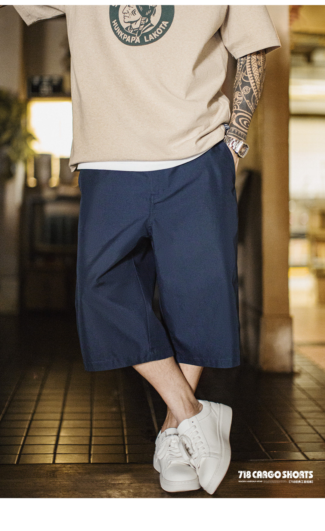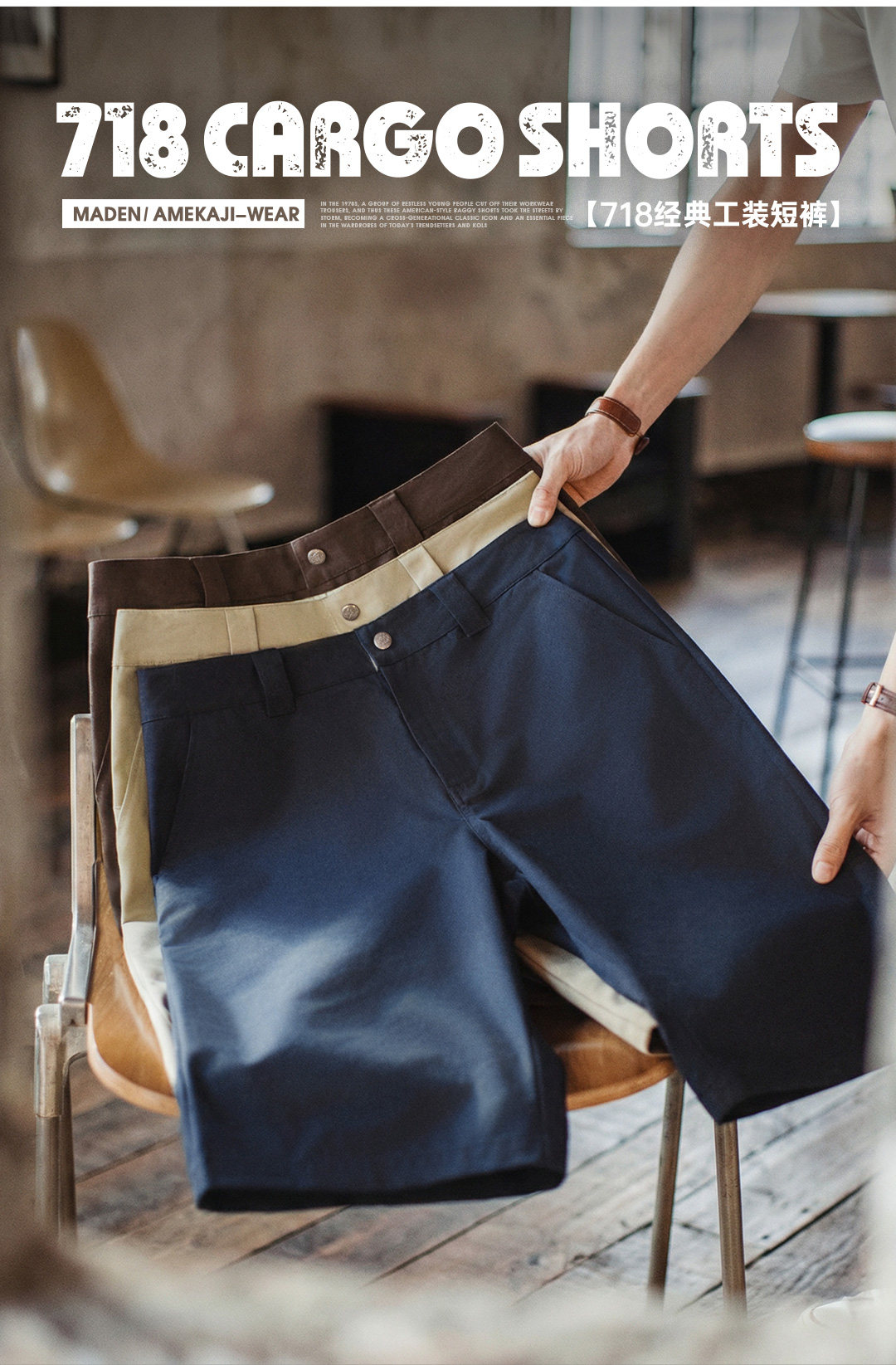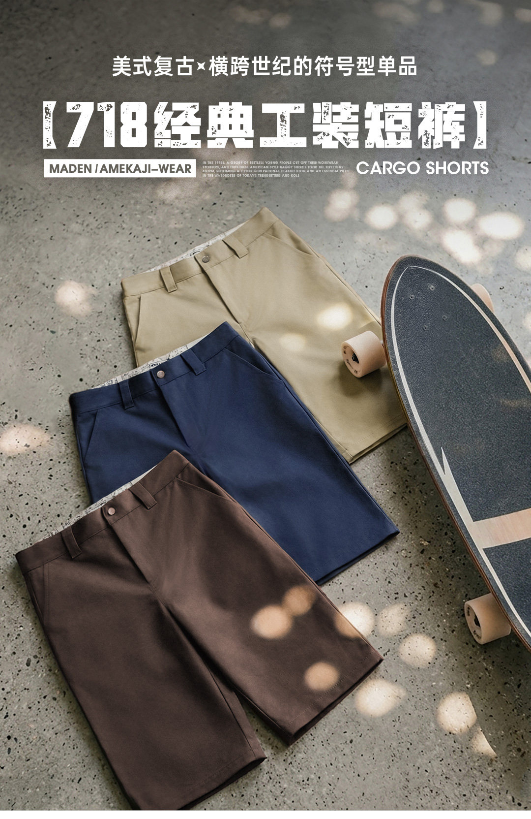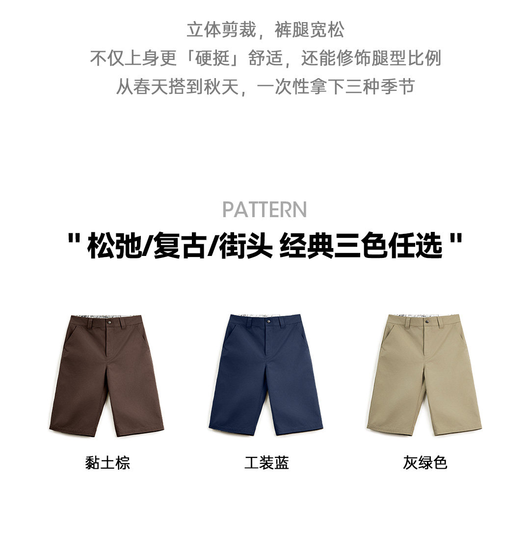 马登工装美式718西装短裤日系通勤休闲外穿宽松直筒六分裤男款夏