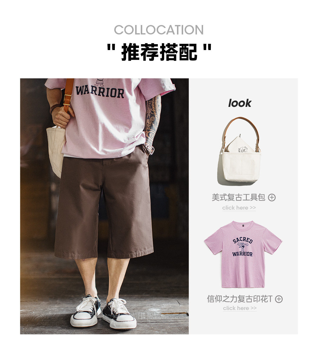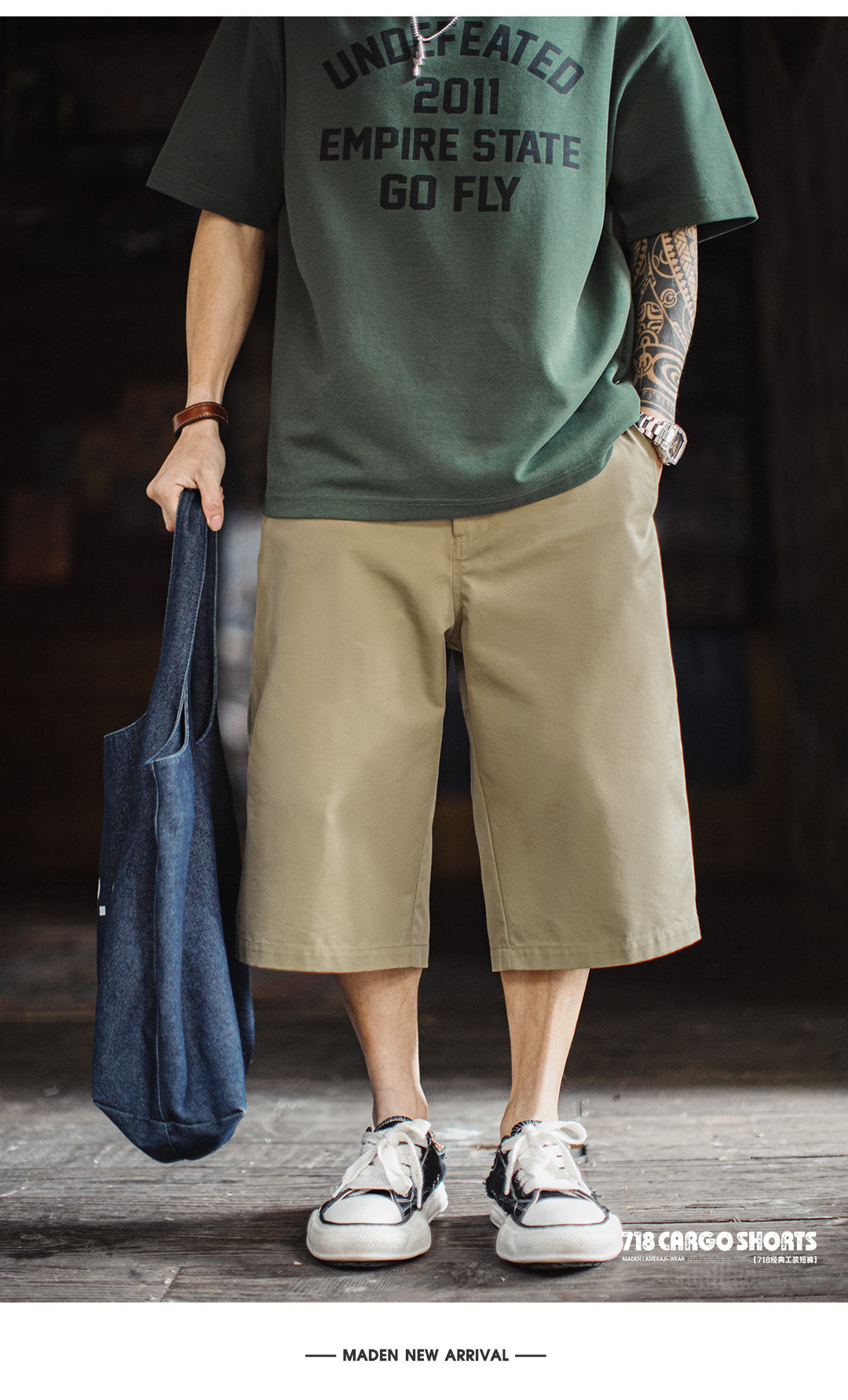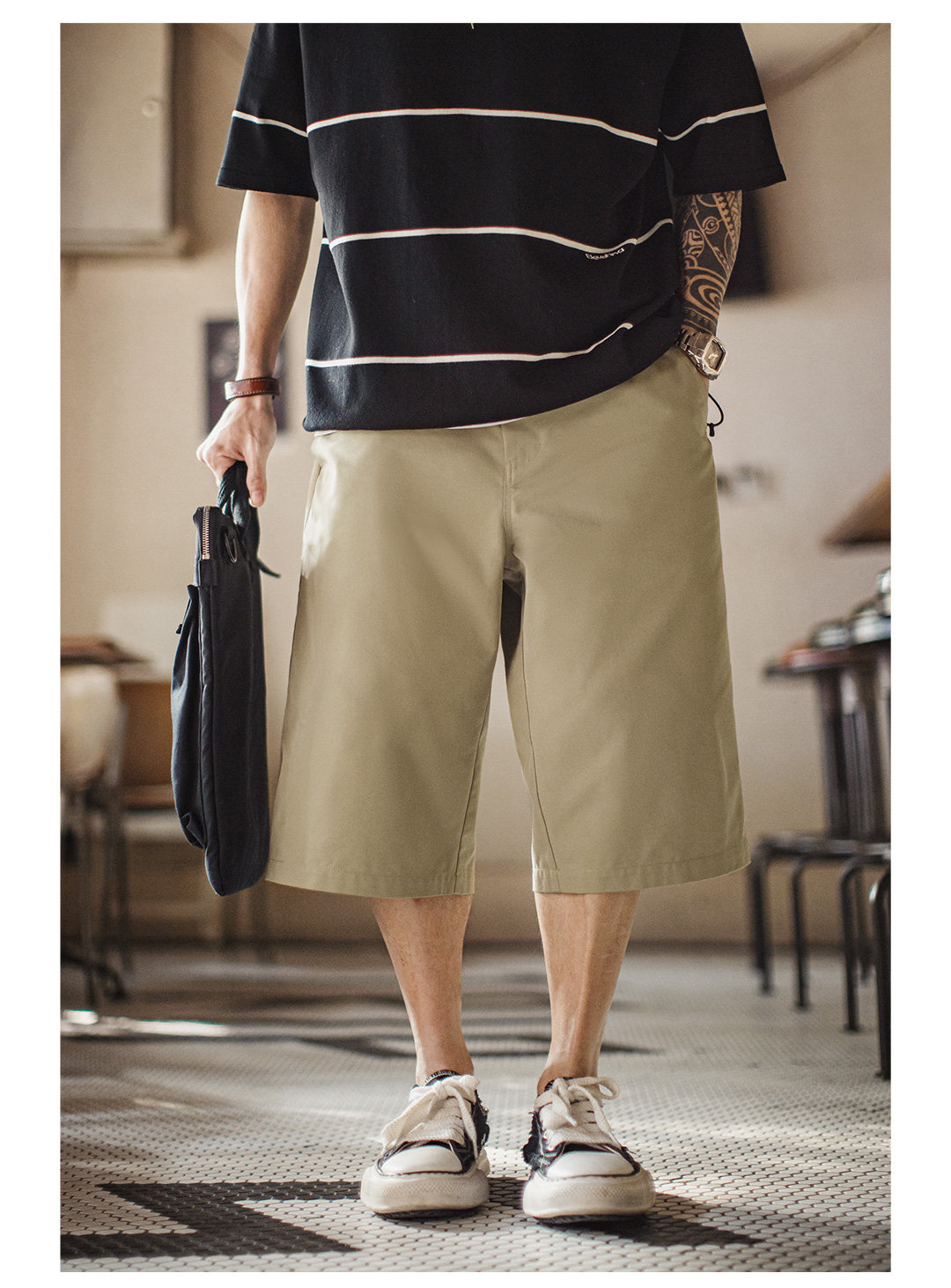 马登工装美式718西装短裤日系通勤休闲外穿宽松直筒六分裤男款夏