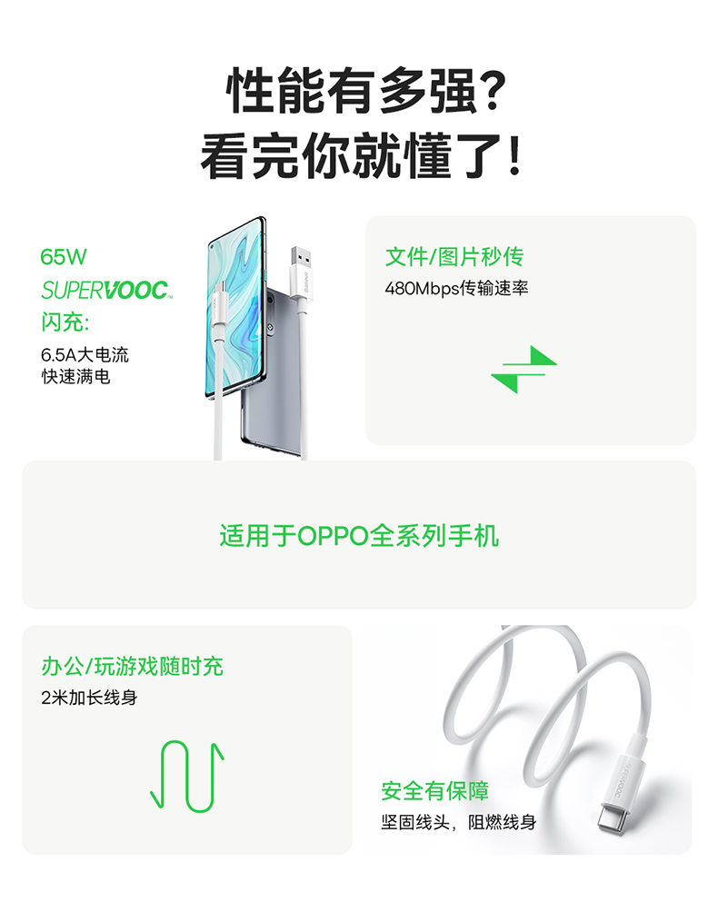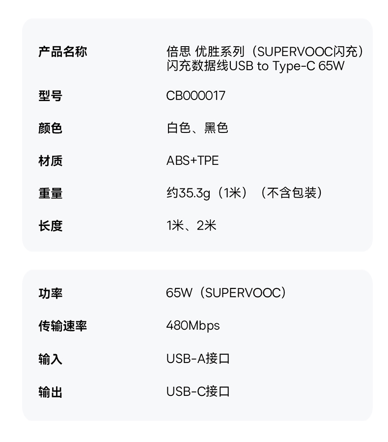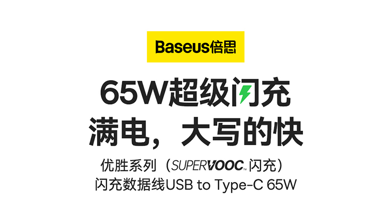 倍思 优胜系列(SUPERVOOC闪充)闪充数据线USB to Type-C 65W