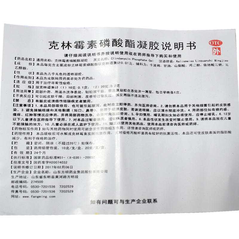 东药 *磷酸酯凝胶20g 用于治疗寻常性痤疮去痤疮 *