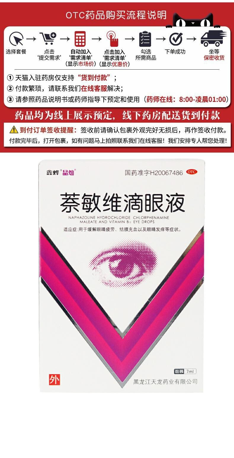 鑫烨 萘敏维滴眼液 7ml*1瓶/盒 缓解眼睛疲劳结膜充血眼痒眼药水