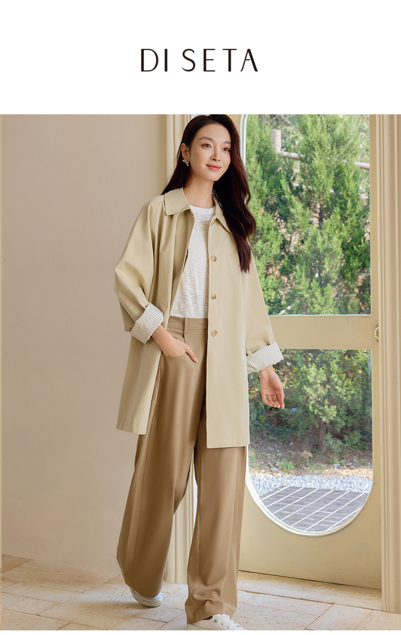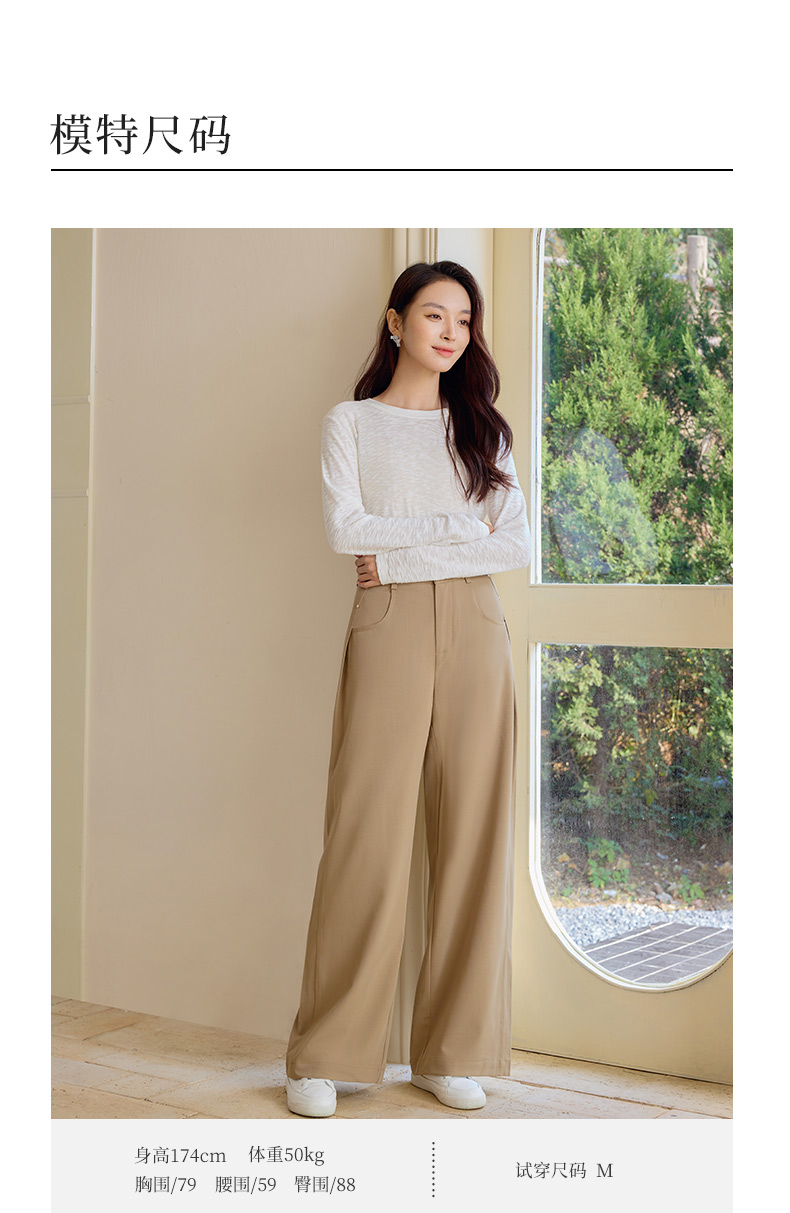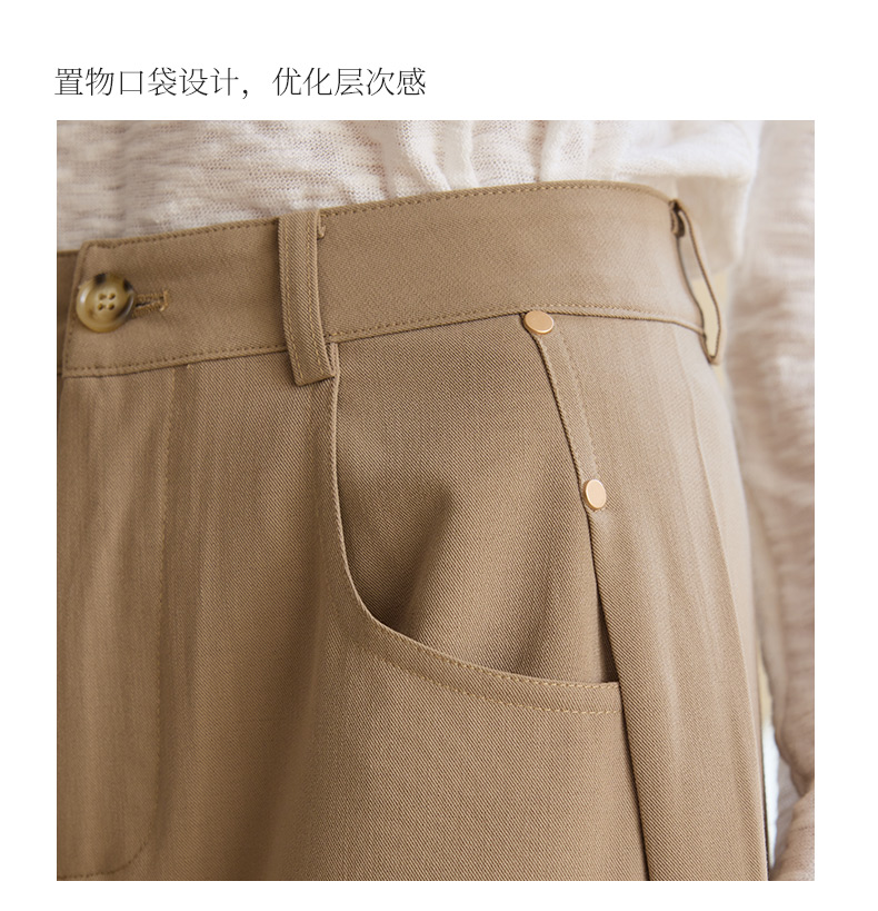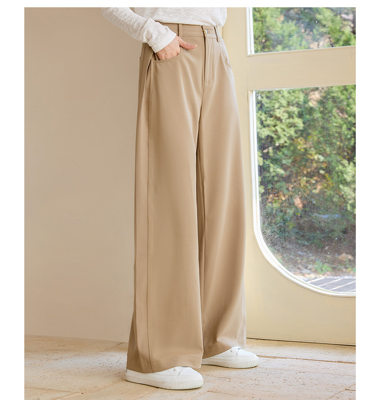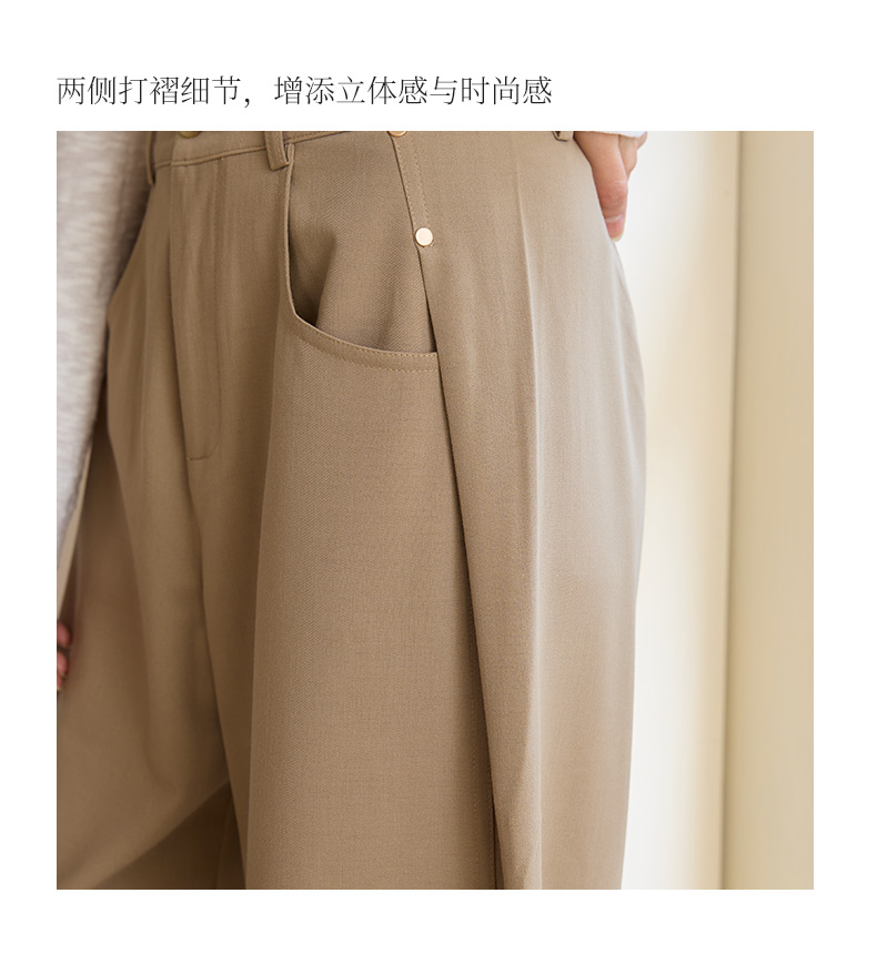 玳莎简约宽松阔腿裤女2025年春季新款垂感卡其长裤显瘦通勤休闲裤 FA36306