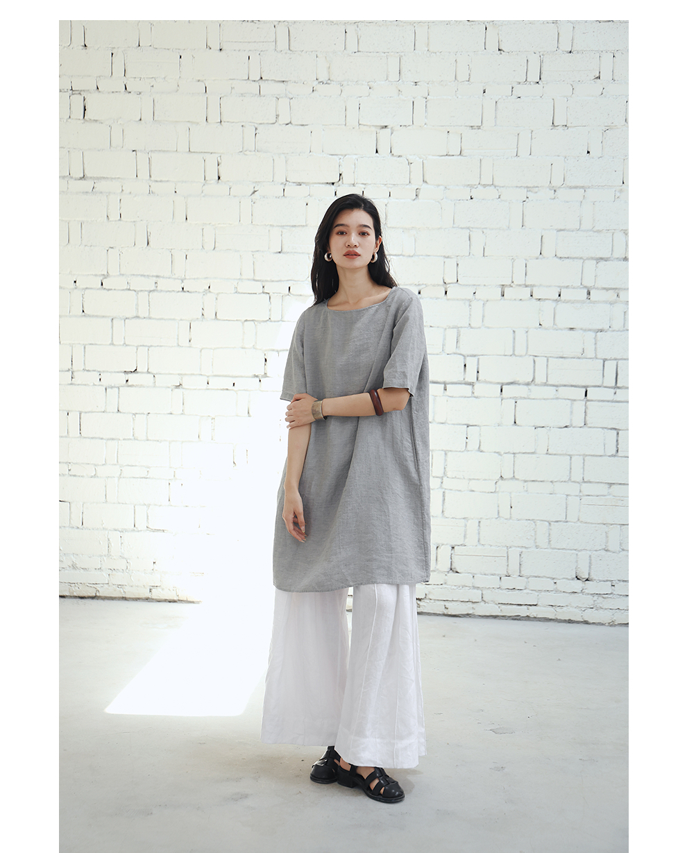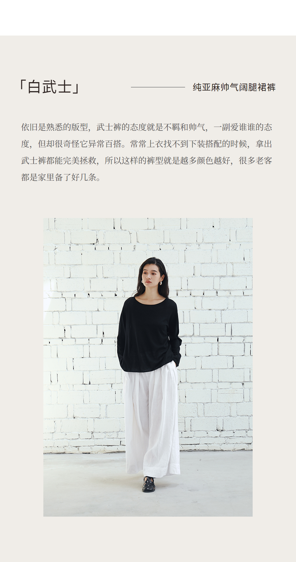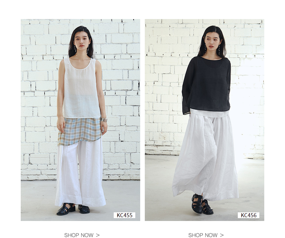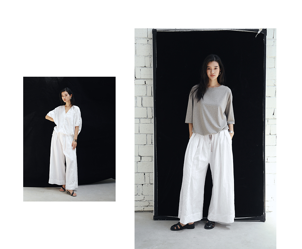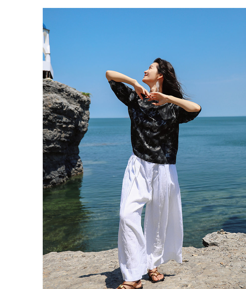 绽放旅行女装459朵/【黑白灰系列·白武士】纯亚麻阔腿裙裤休闲裤