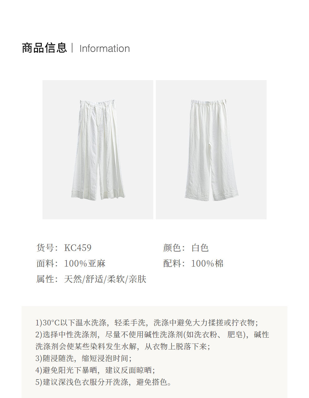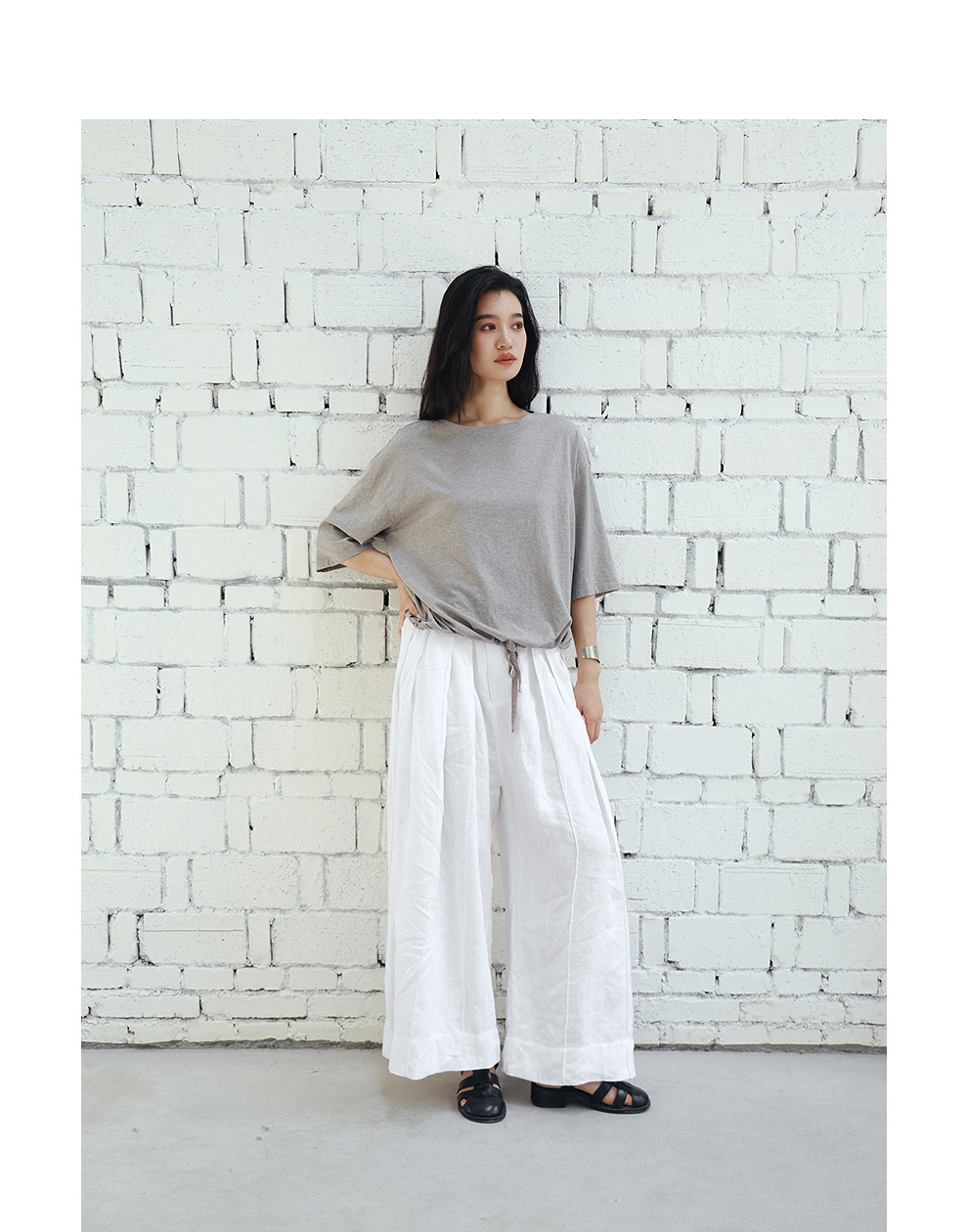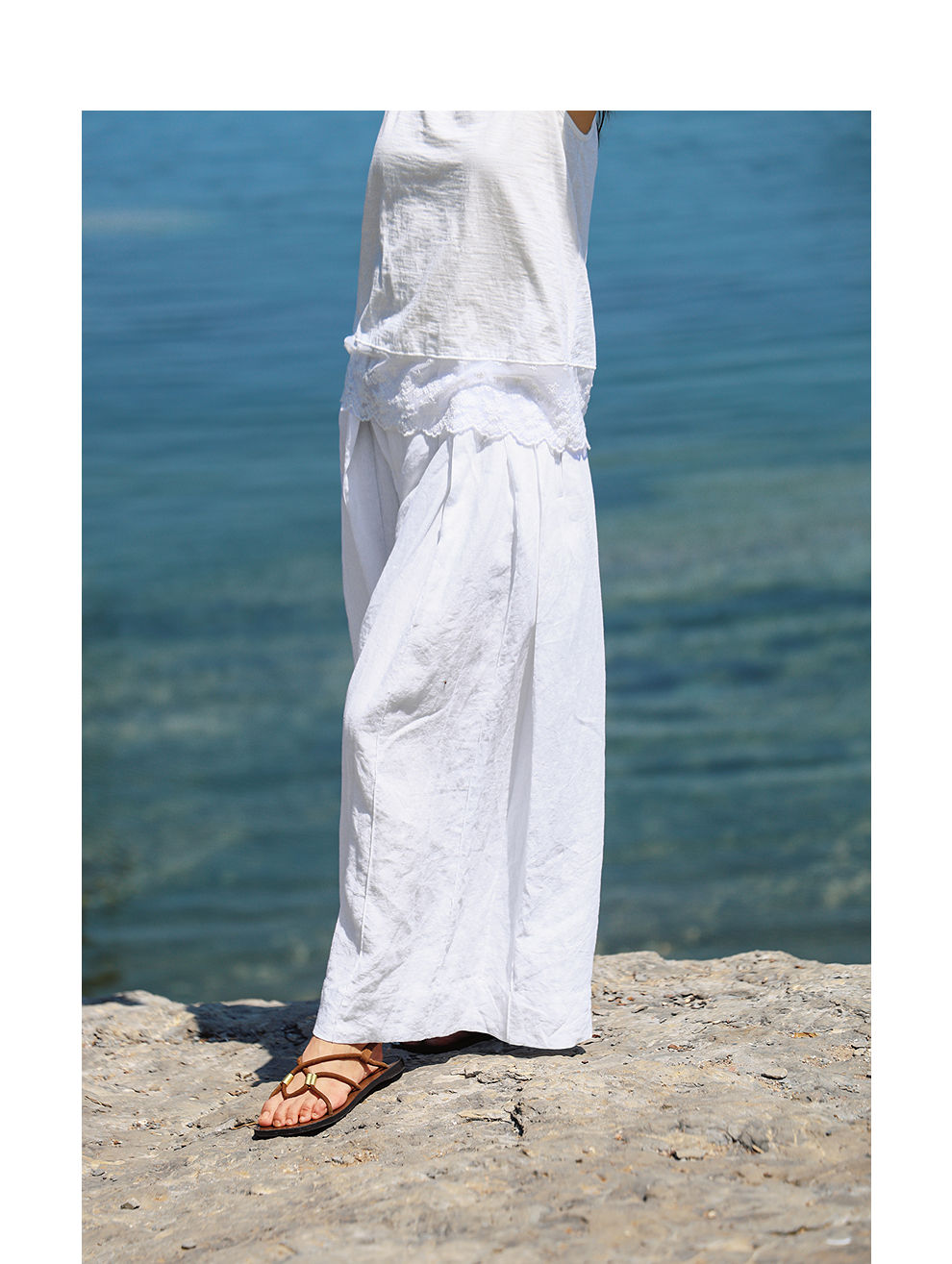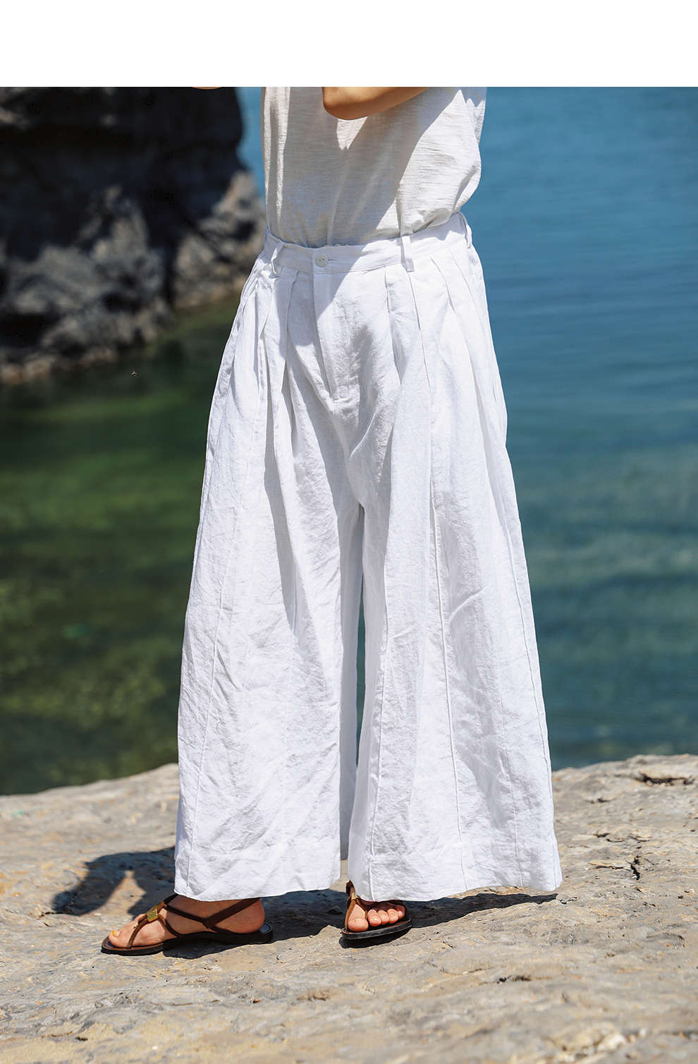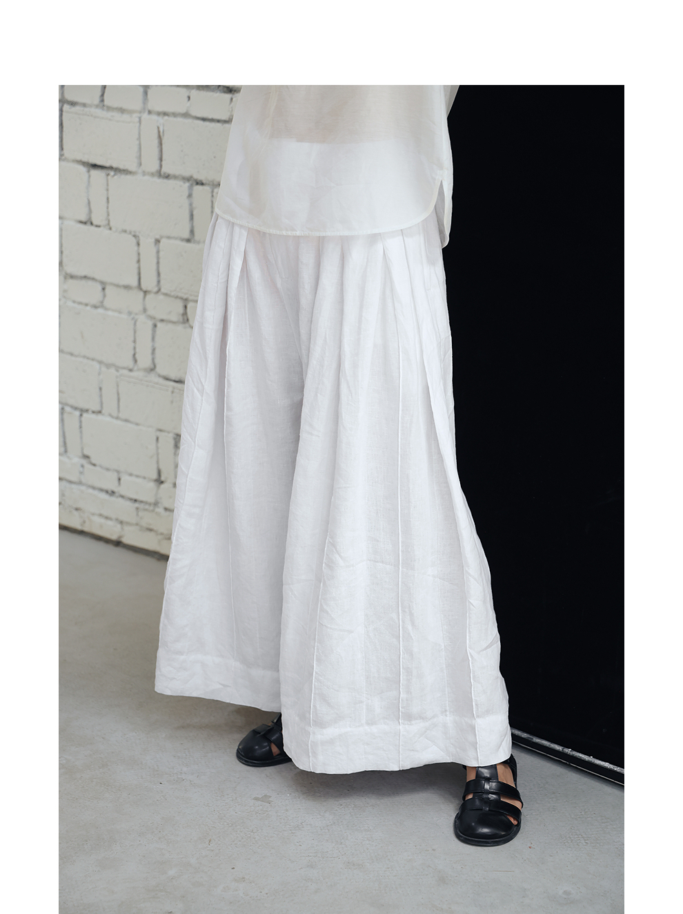 绽放旅行女装459朵/【黑白灰系列·白武士】纯亚麻阔腿裙裤休闲裤