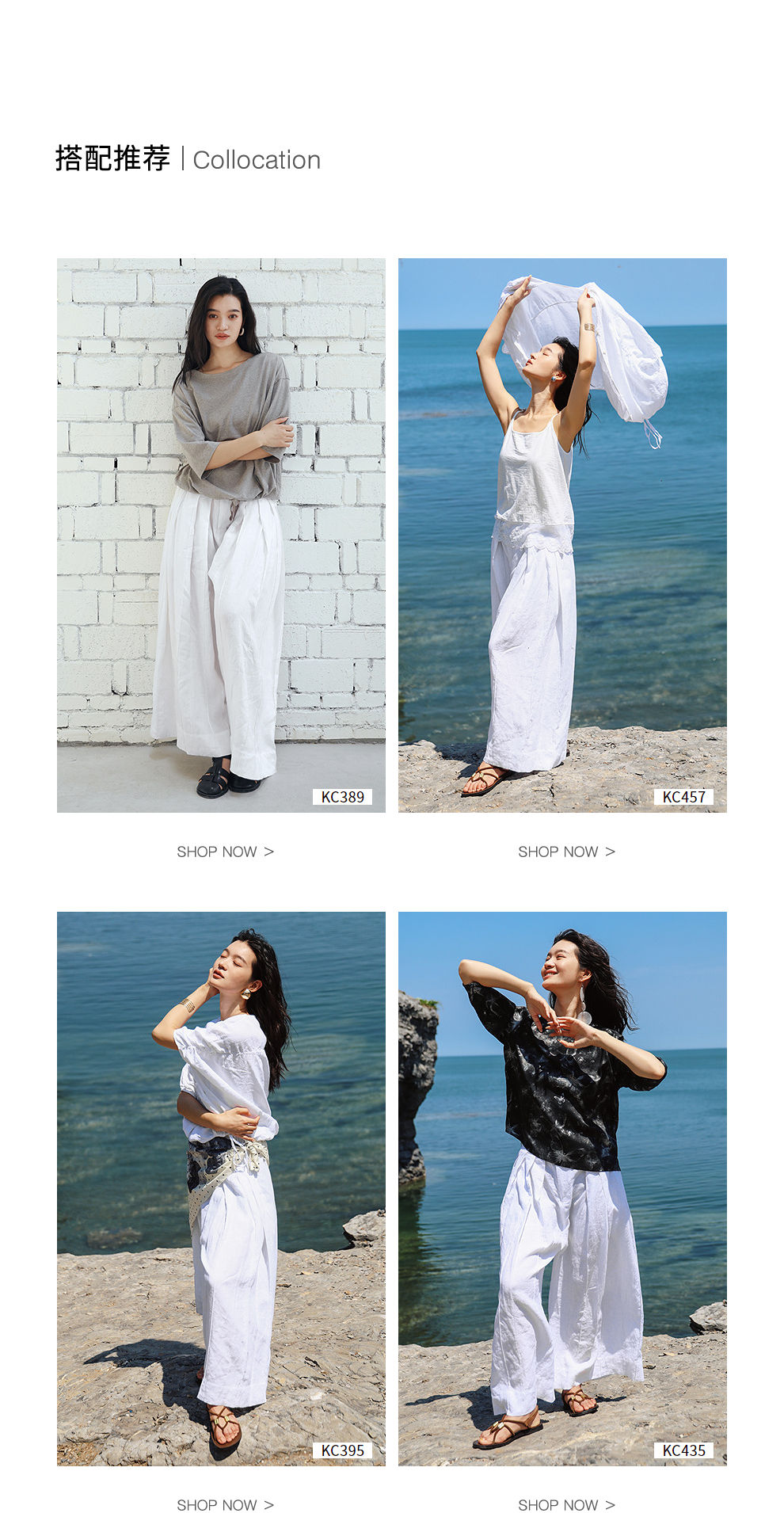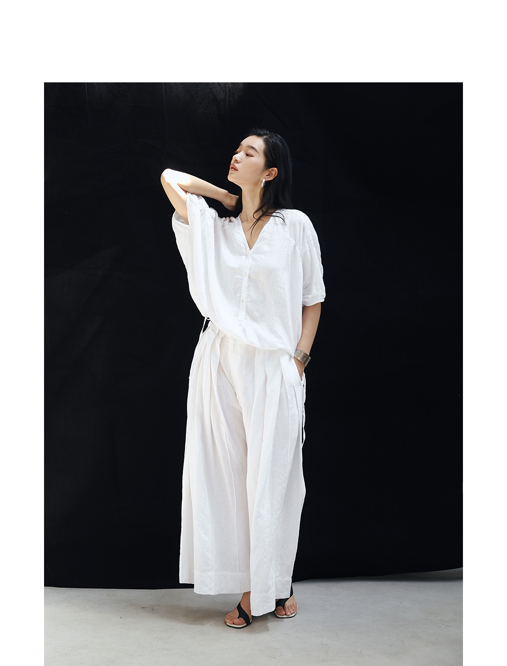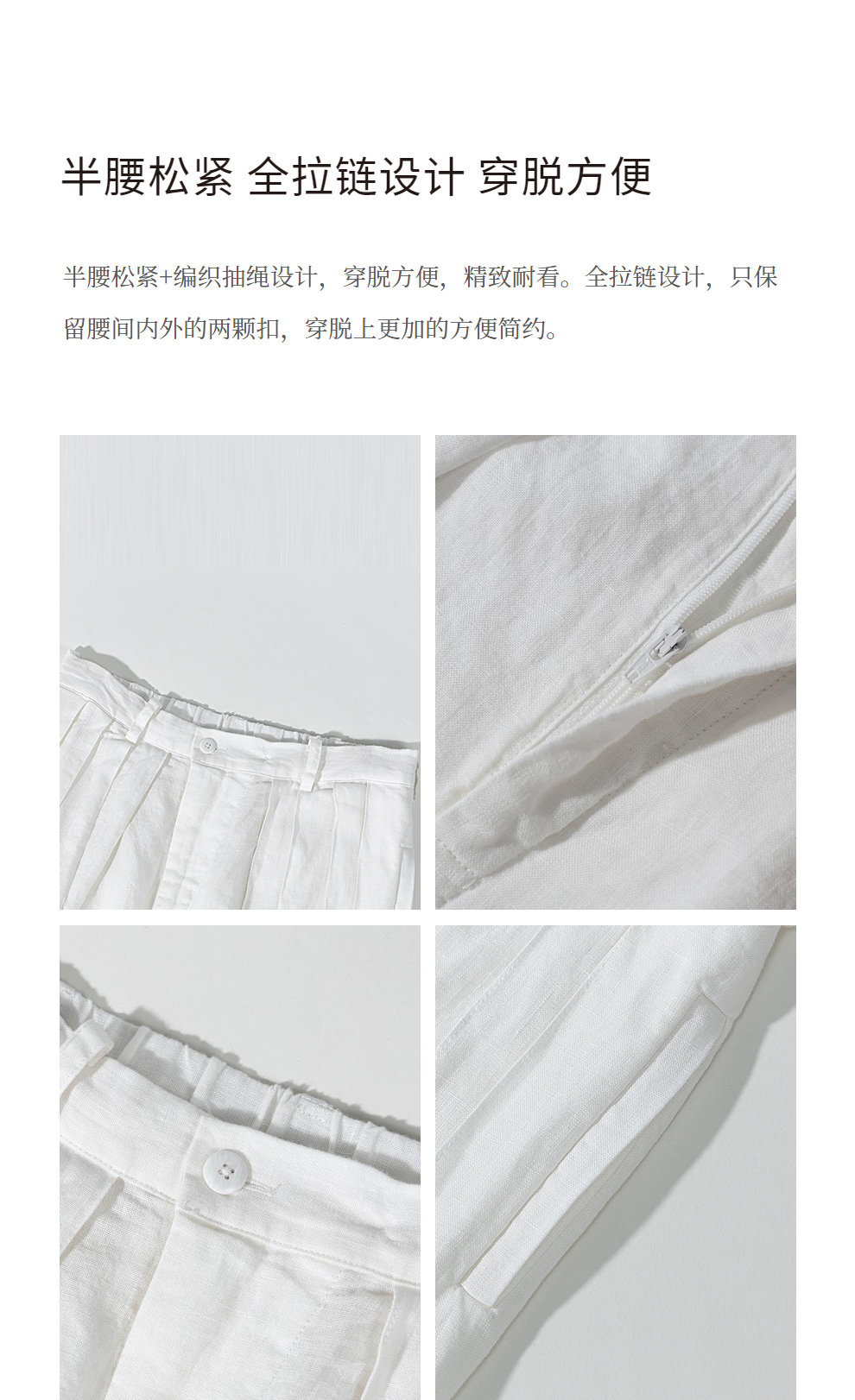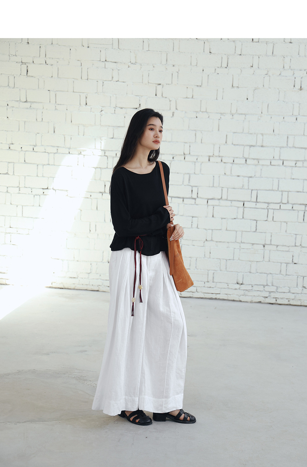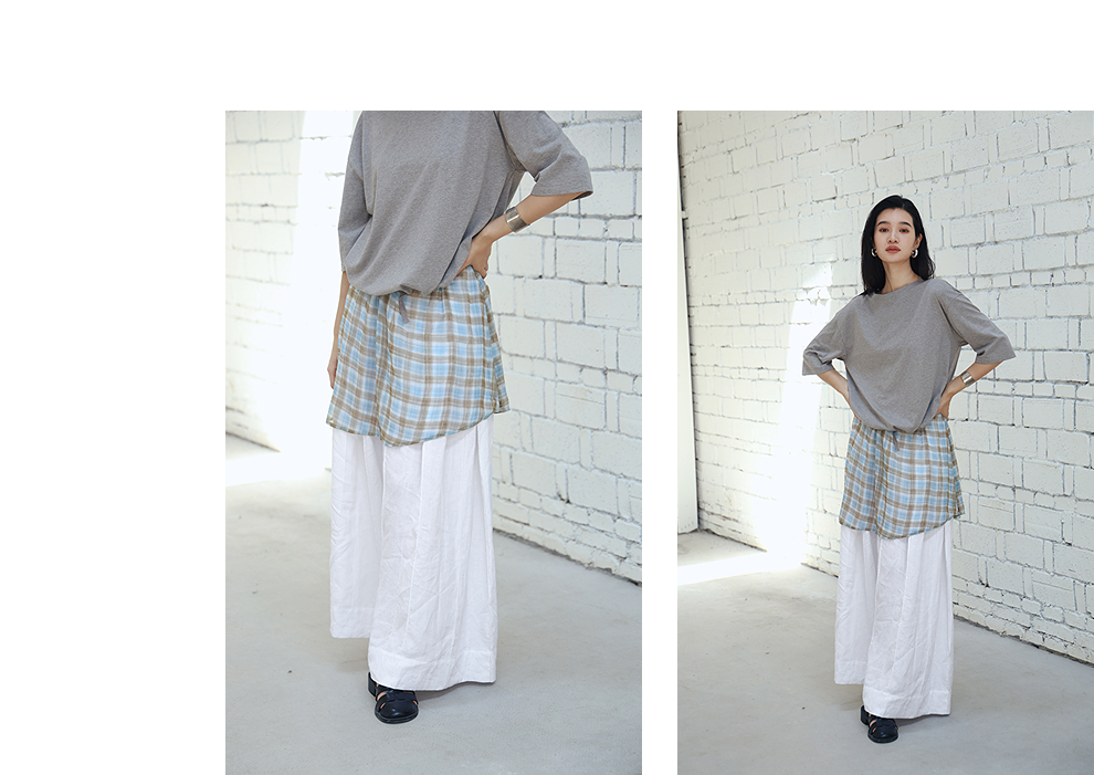 绽放旅行女装459朵/【黑白灰系列·白武士】纯亚麻阔腿裙裤休闲裤