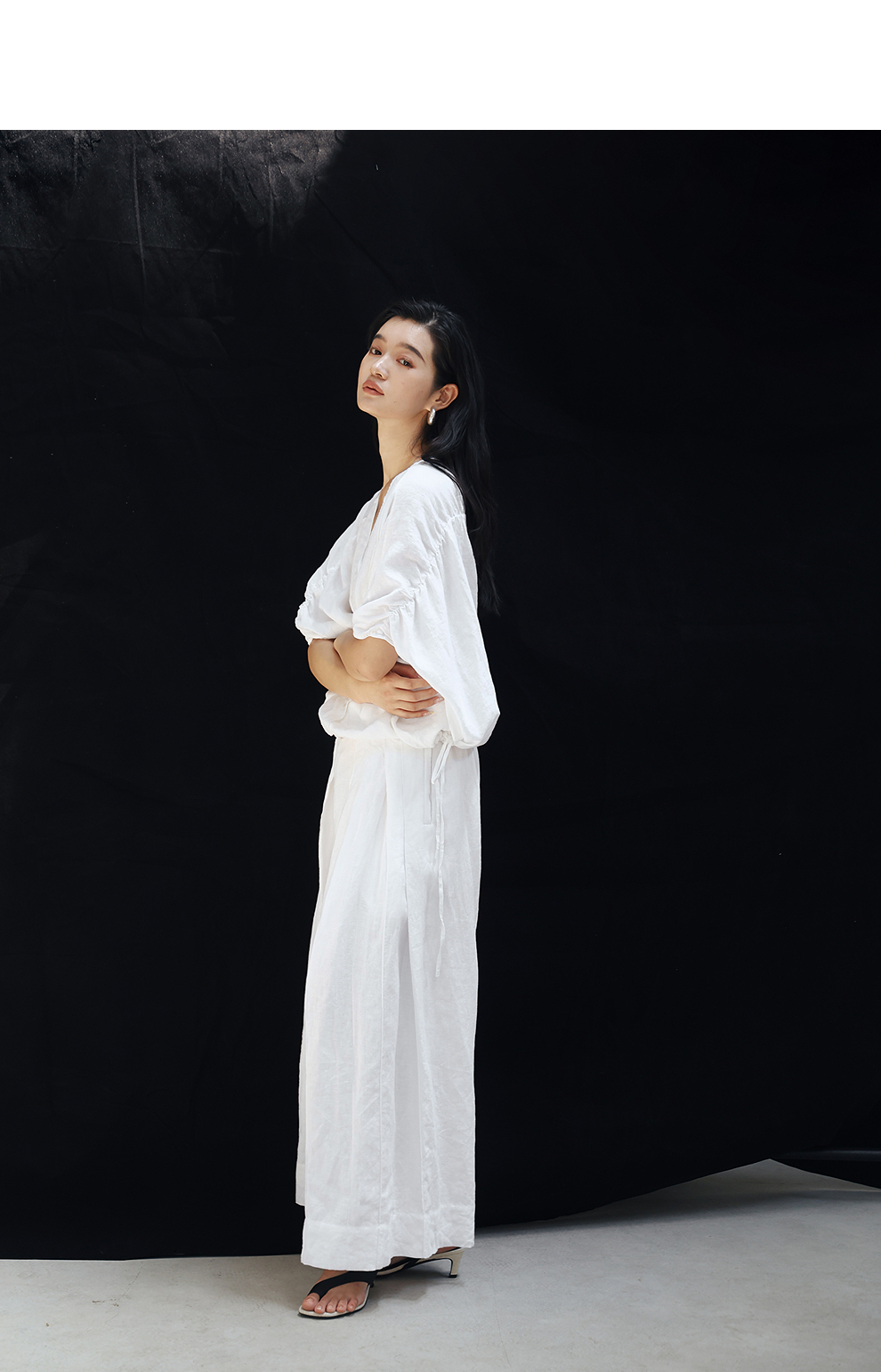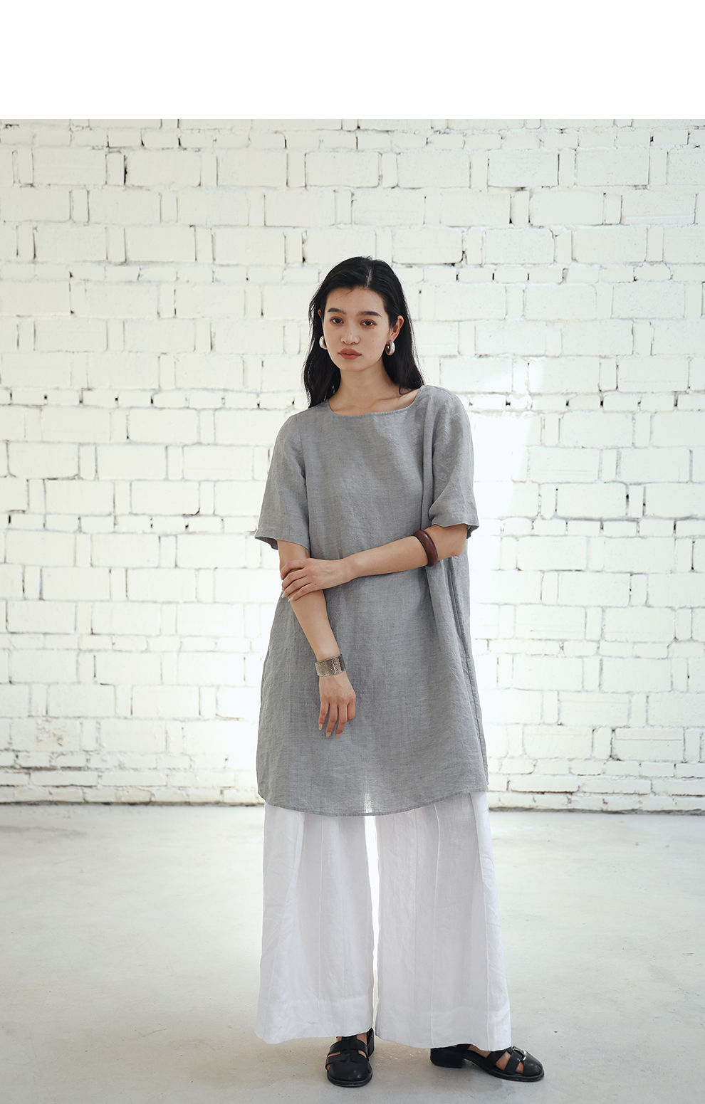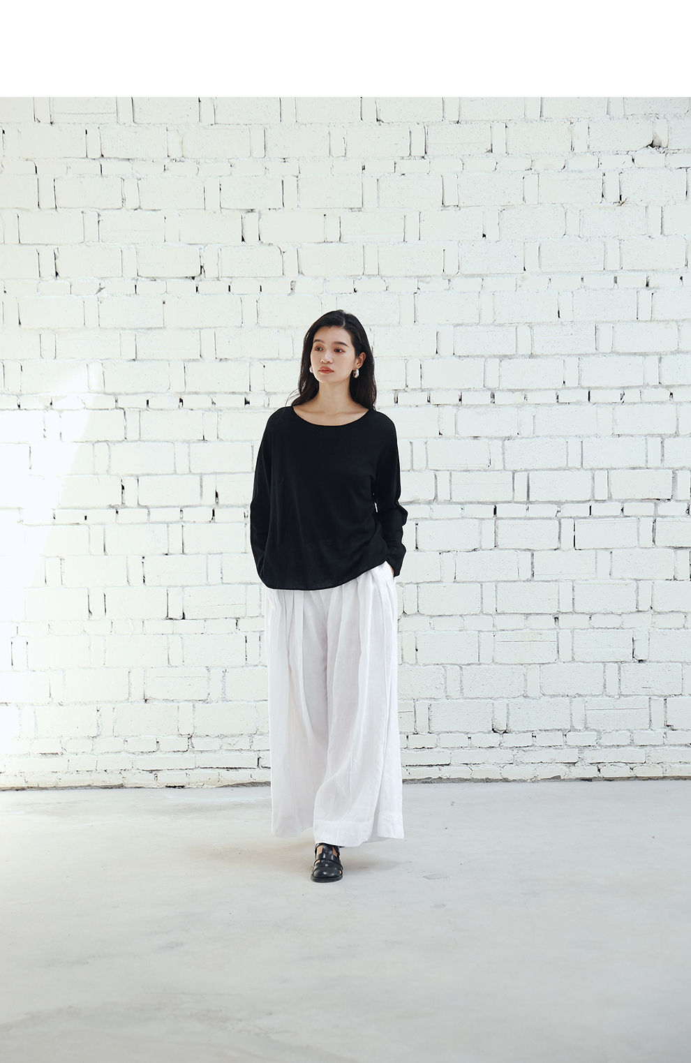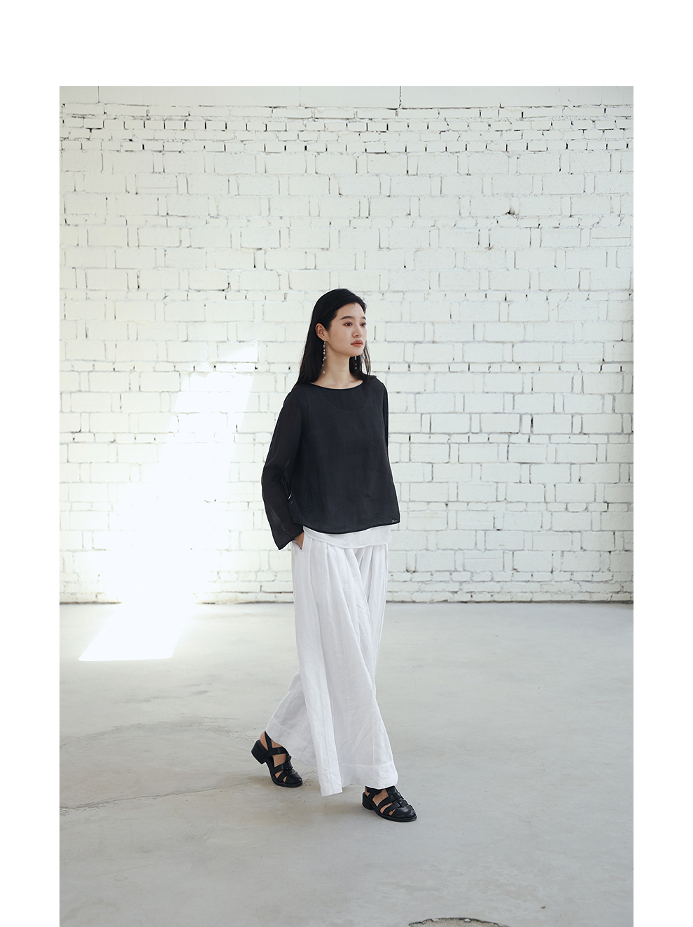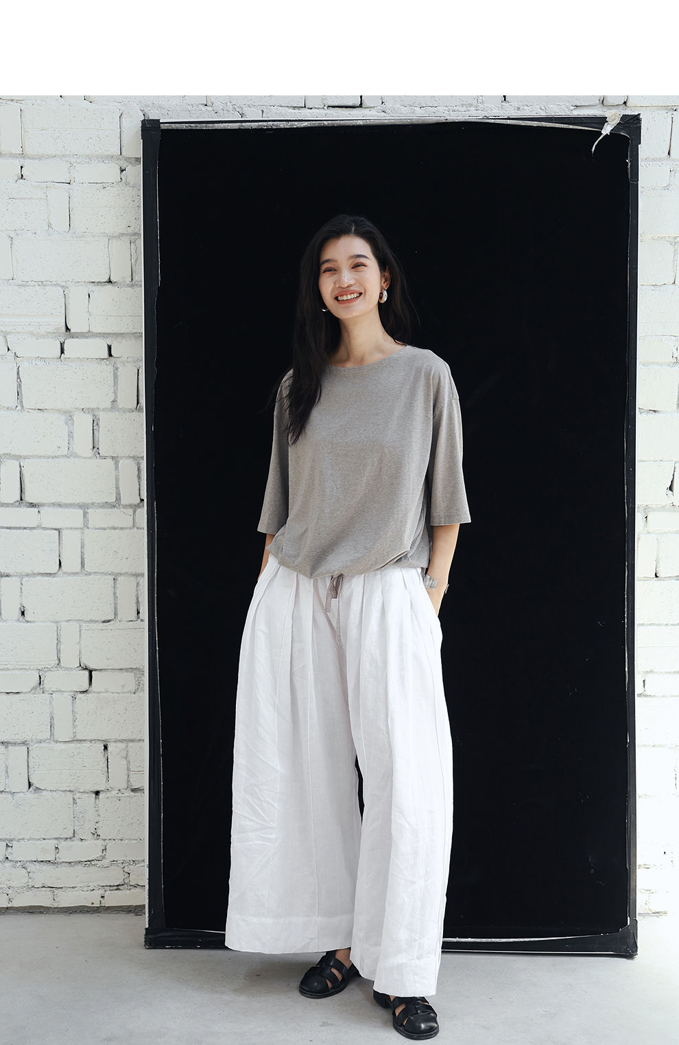 绽放旅行女装459朵/【黑白灰系列·白武士】纯亚麻阔腿裙裤休闲裤