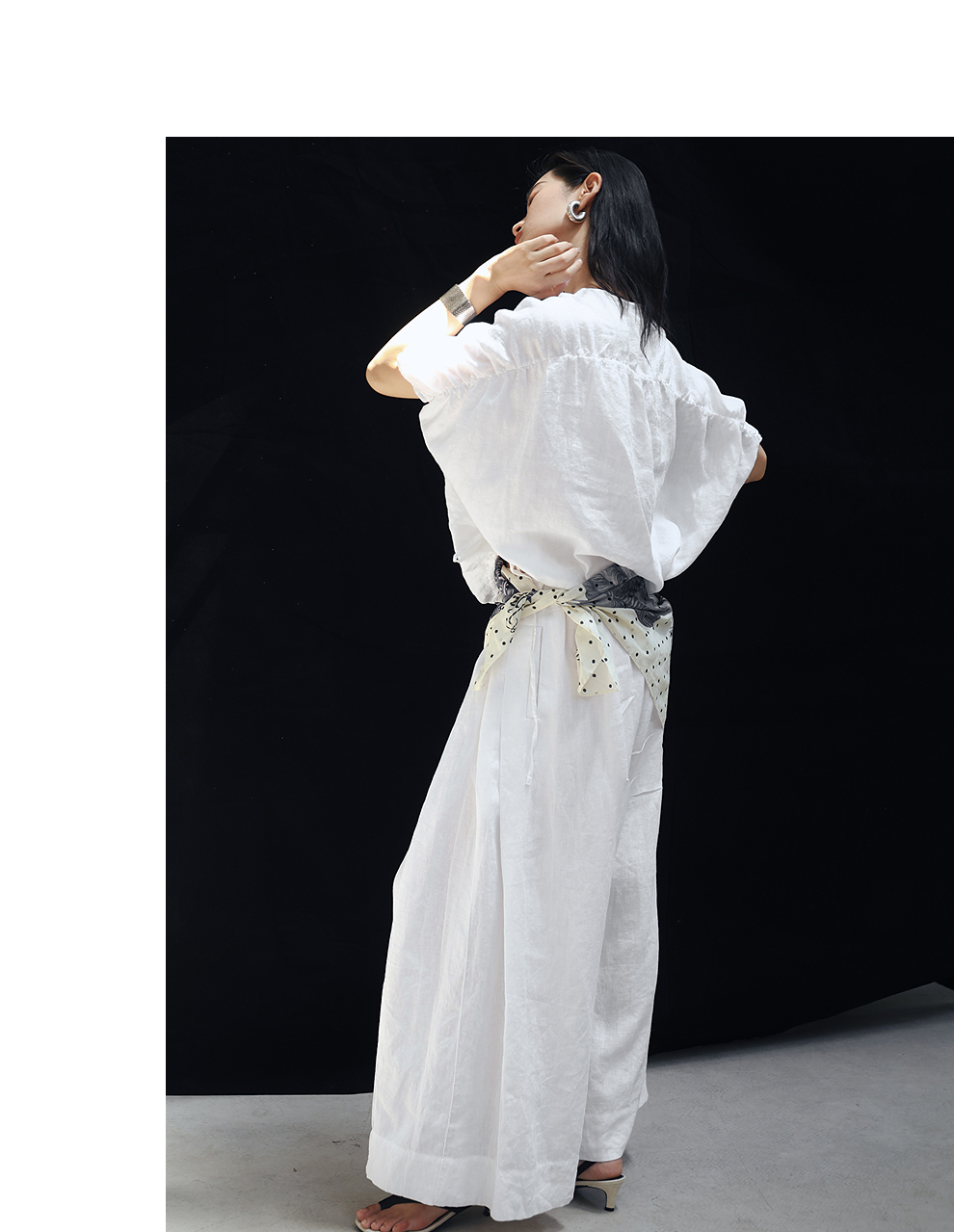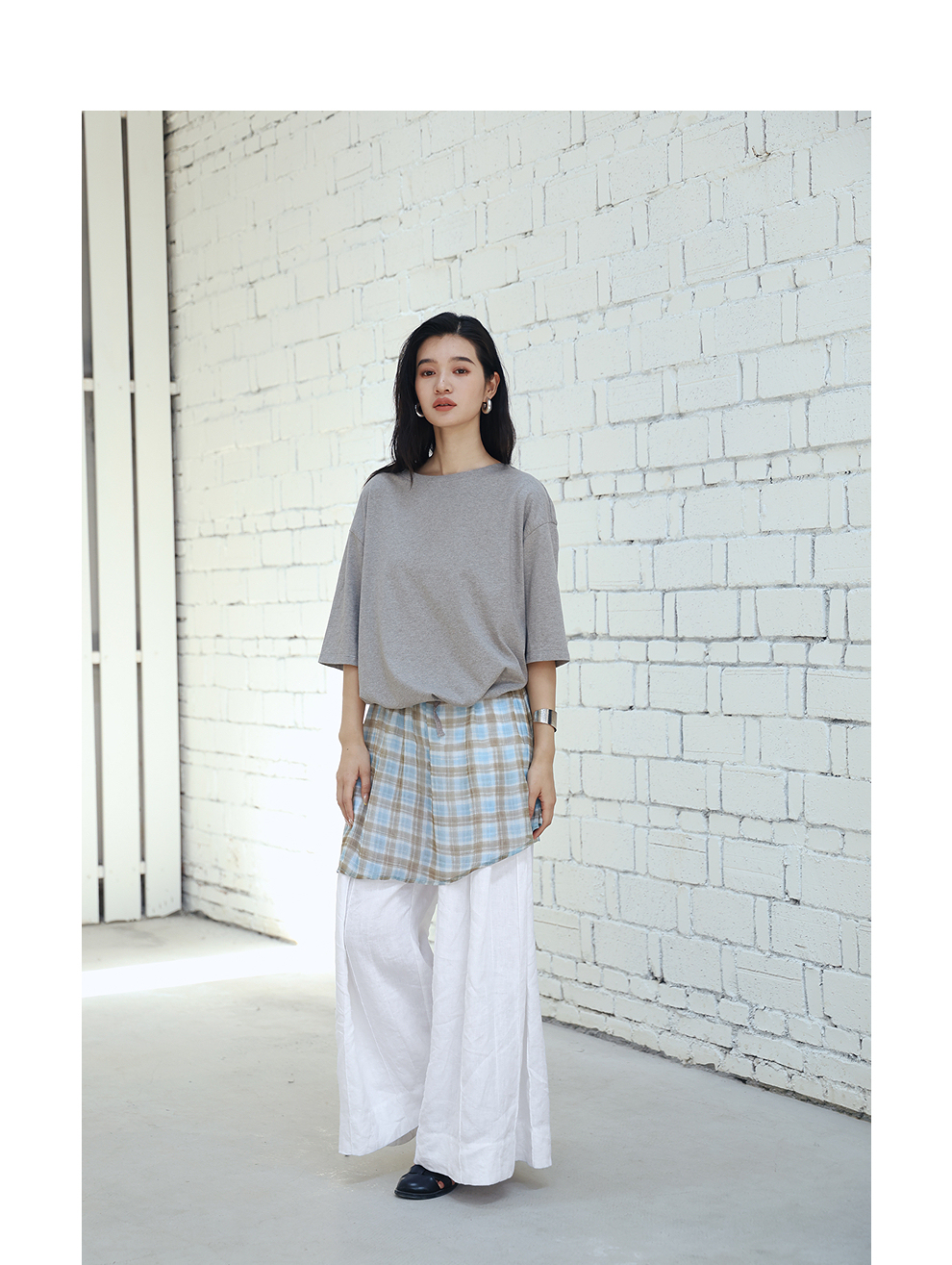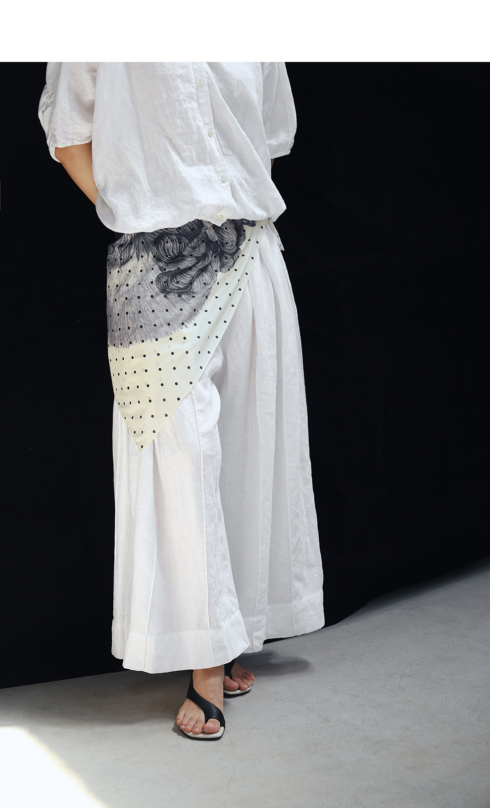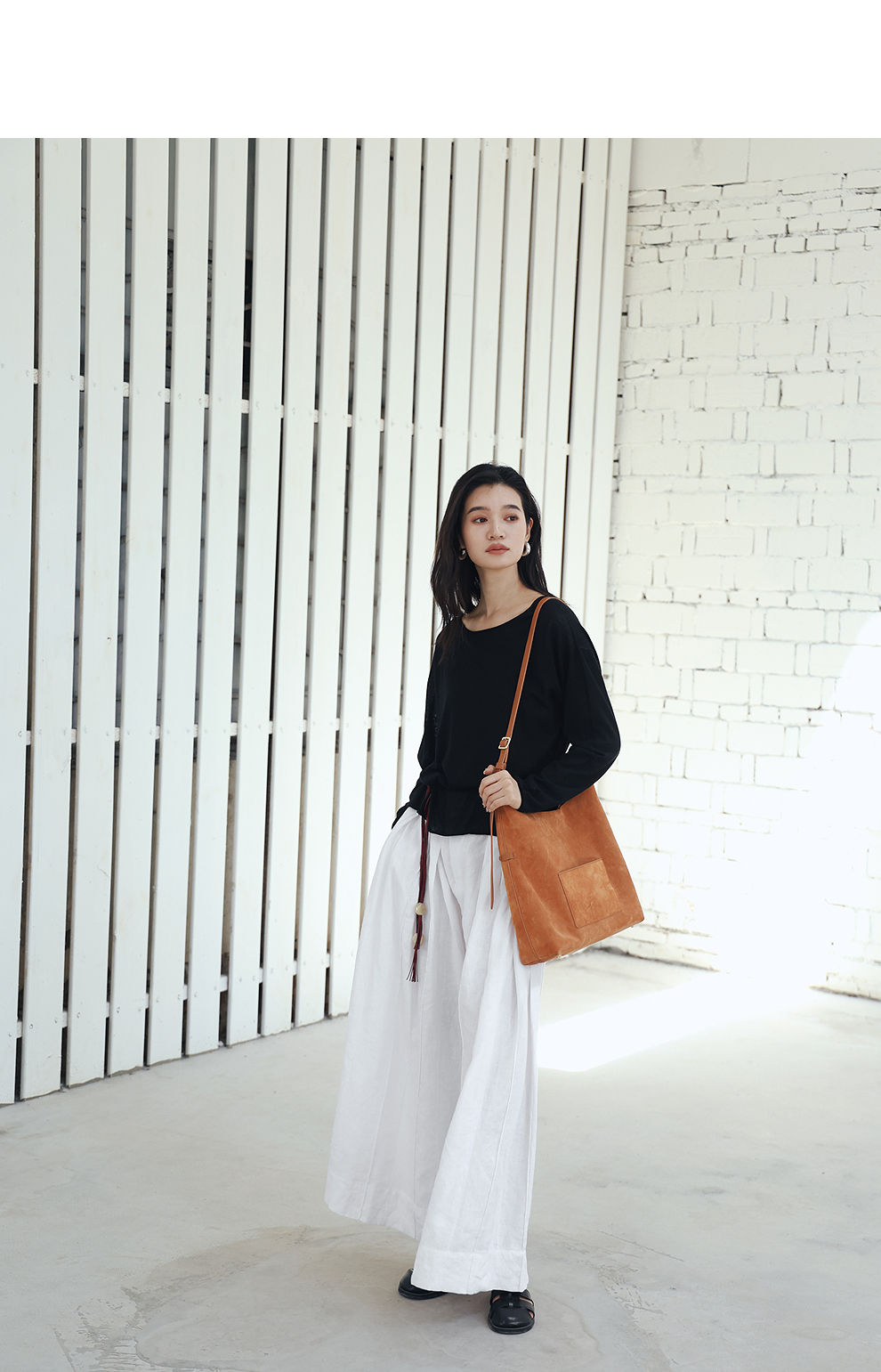 绽放旅行女装459朵/【黑白灰系列·白武士】纯亚麻阔腿裙裤休闲裤