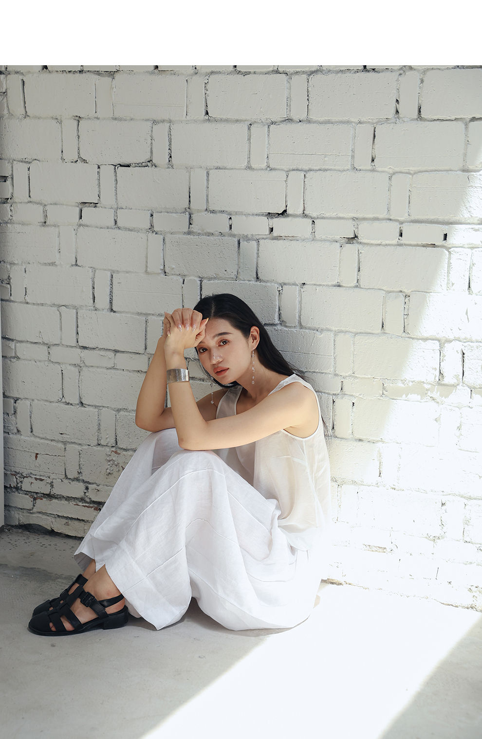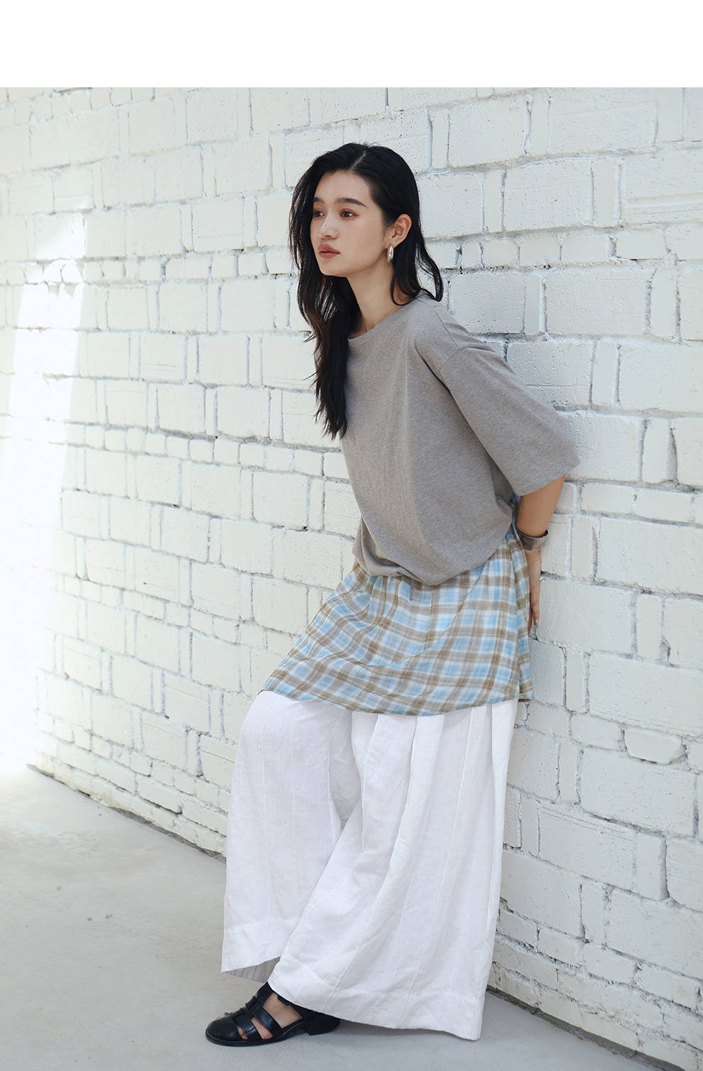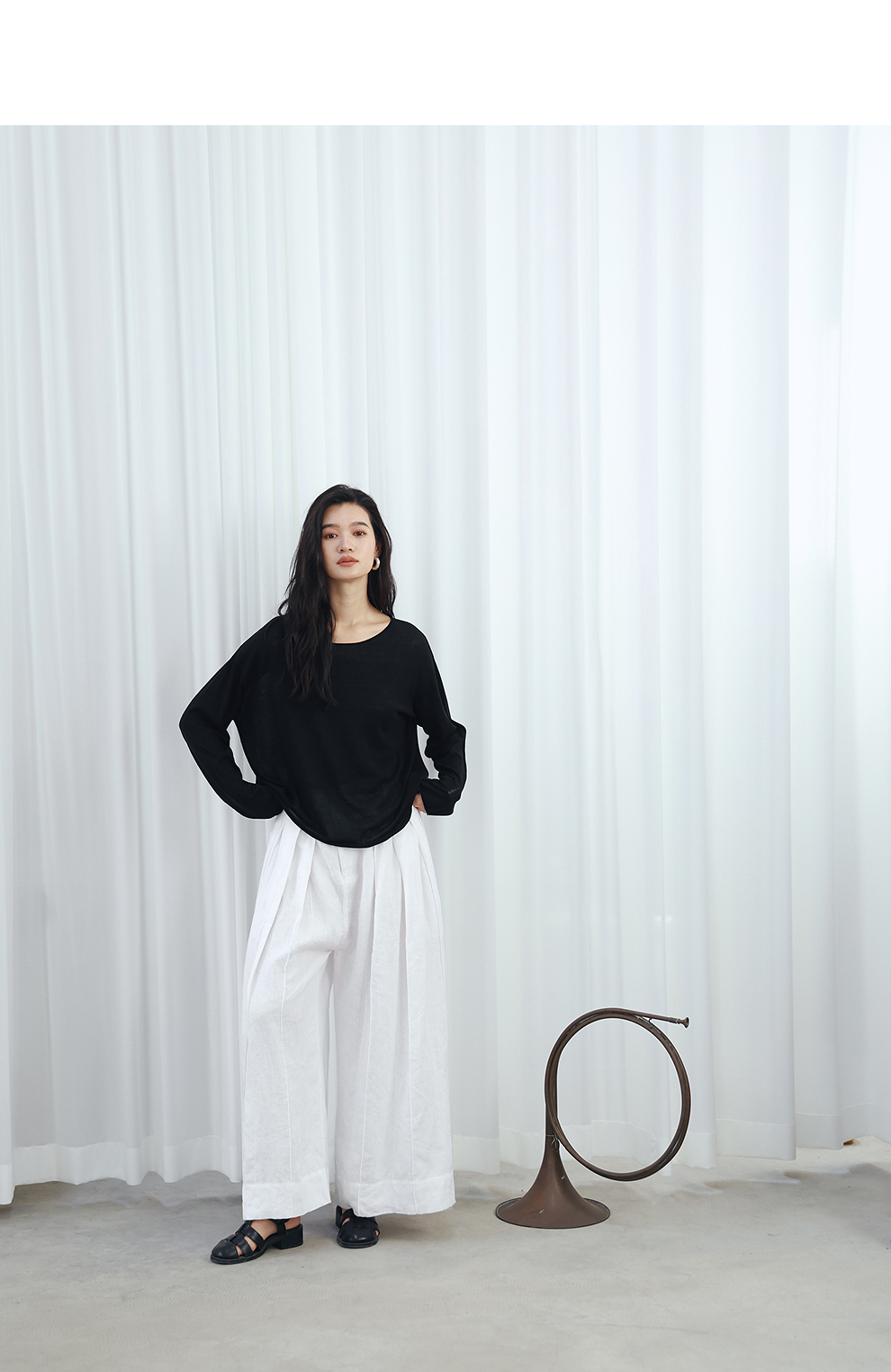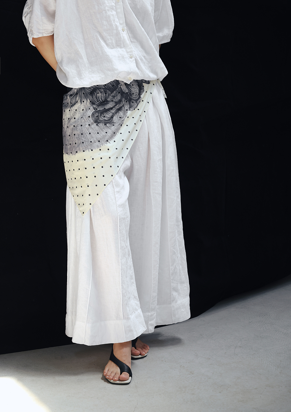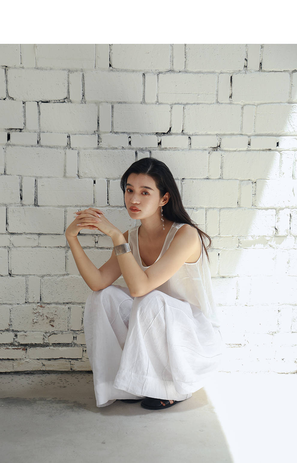 绽放旅行女装459朵/【黑白灰系列·白武士】纯亚麻阔腿裙裤休闲裤