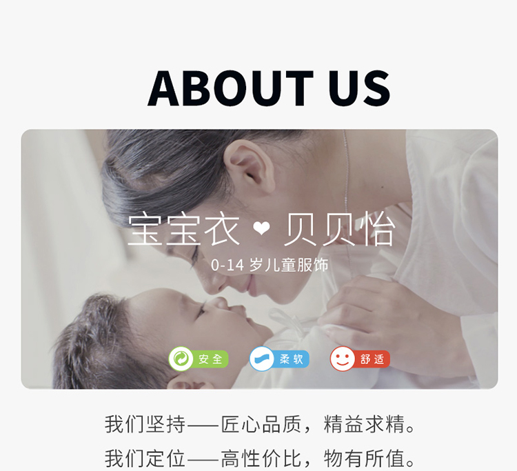 - 贝贝怡专注0-6岁婴幼儿服饰,坚持安全、柔软、舒适的产品理念,为千万中国家庭提供超高品质、安全可靠的婴幼儿服饰产品,妈妈放心,宝宝开心!