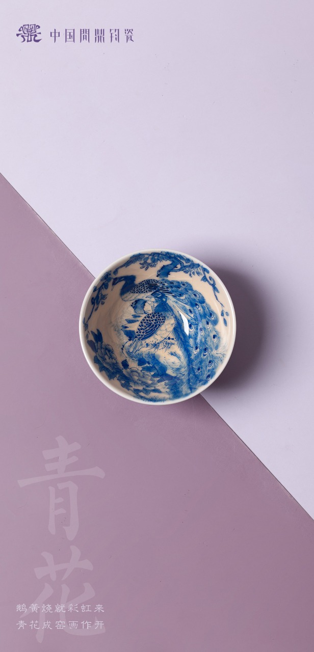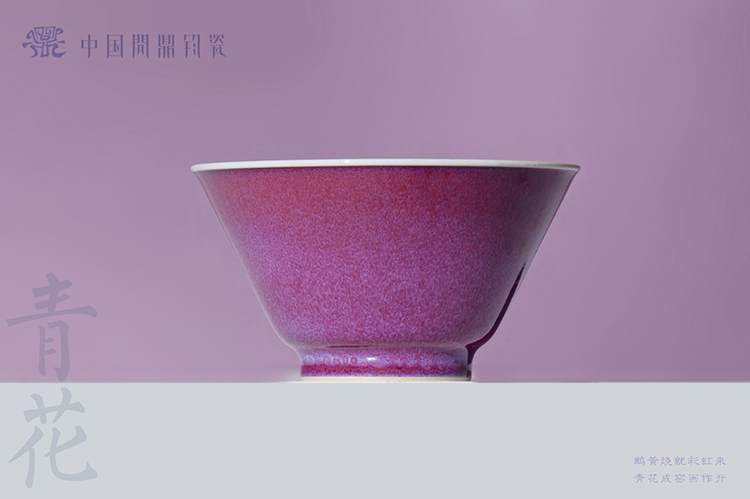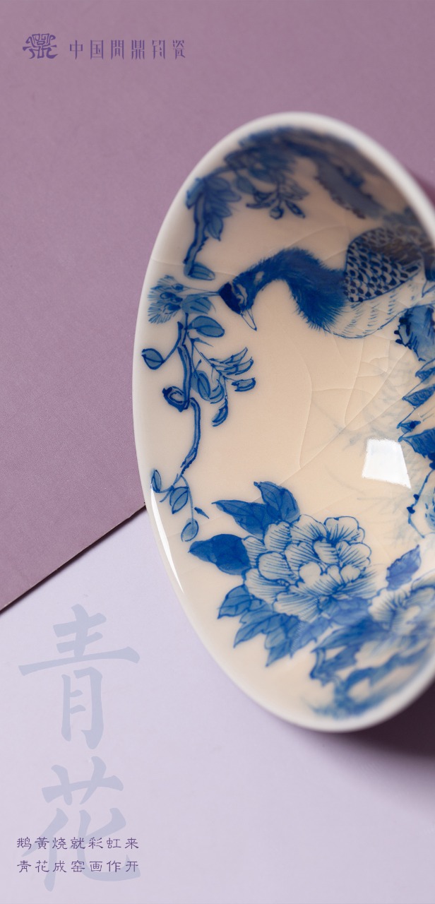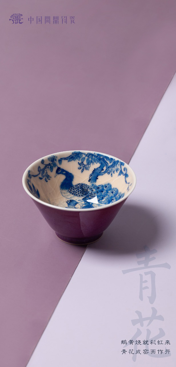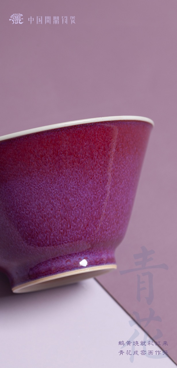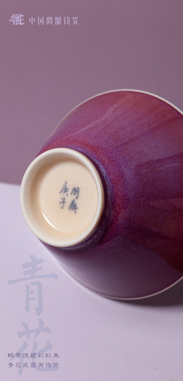 问鼎钧瓷鹅黄青花精工款淳和杯(富春图)