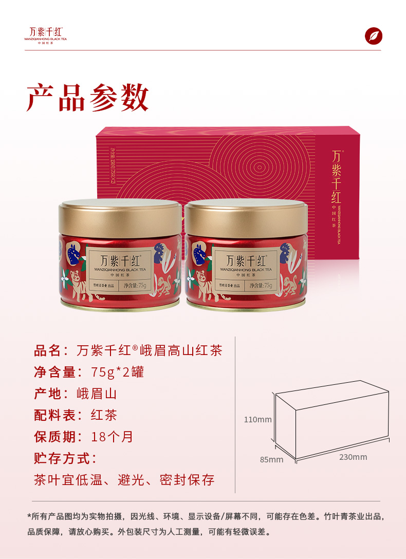 万紫千红特级茶叶峨眉高山红茶礼盒款罐装75g*2蜜香茶送礼送长辈
