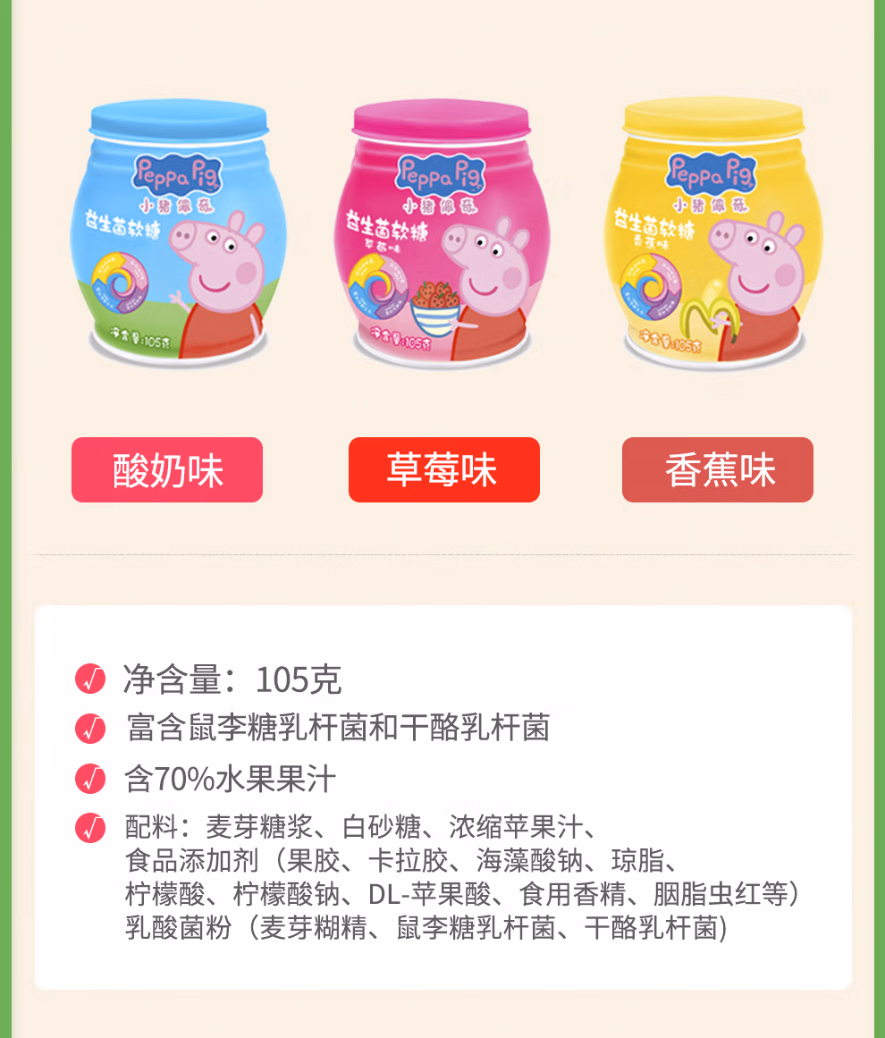 小猪佩奇益生菌香蕉软糖105g